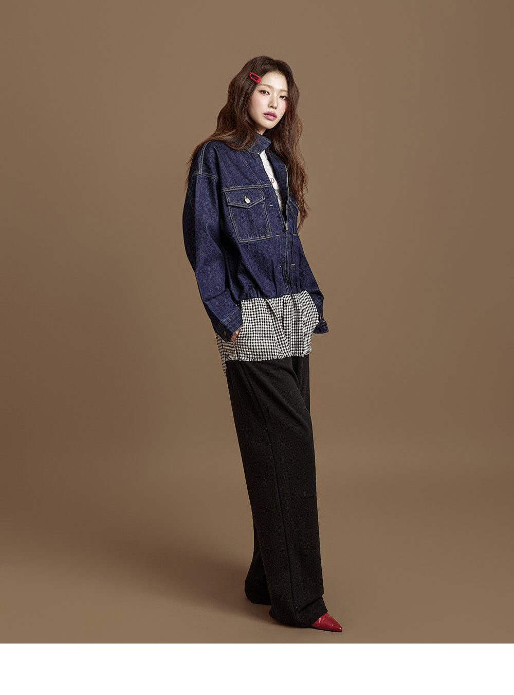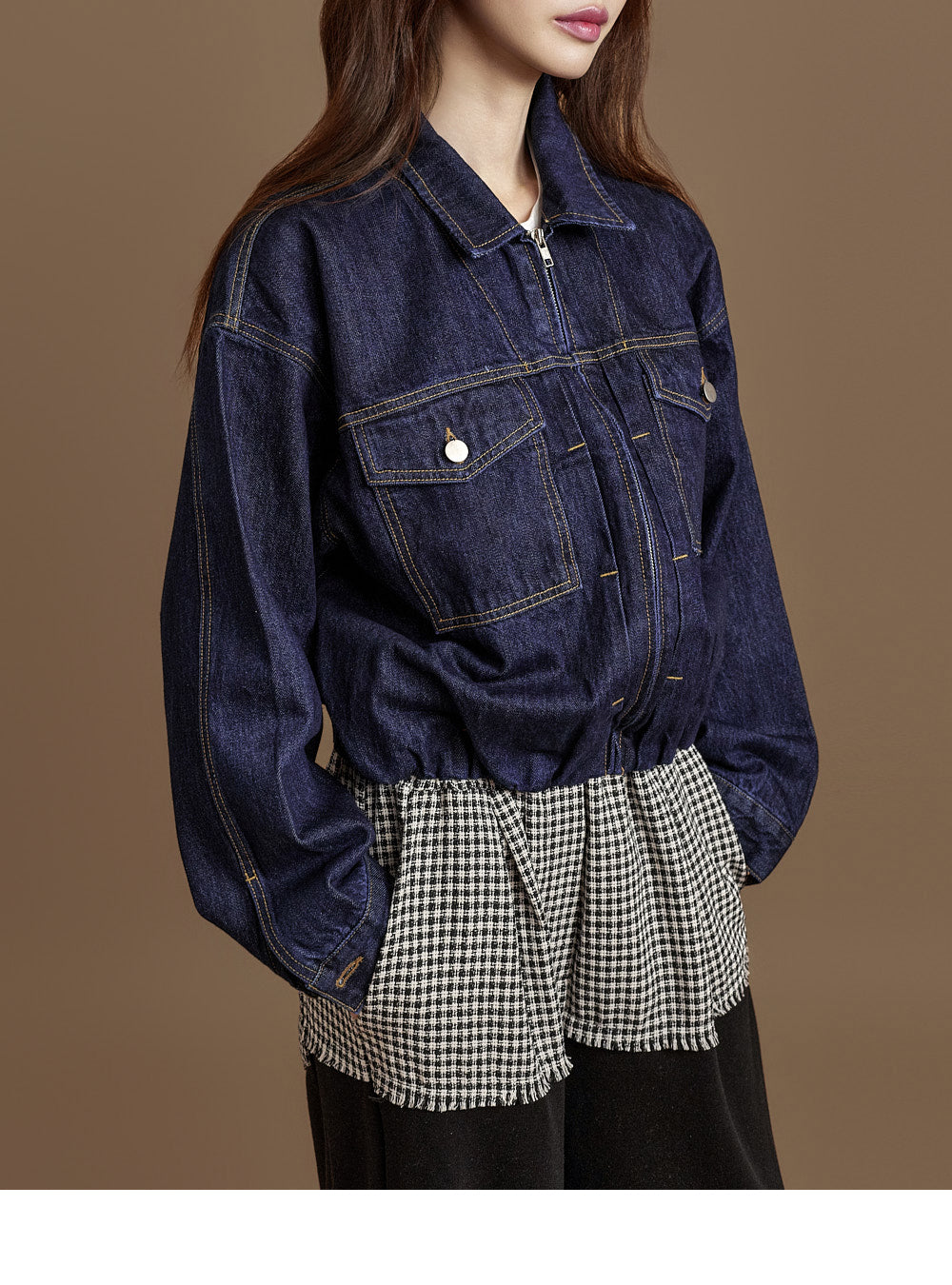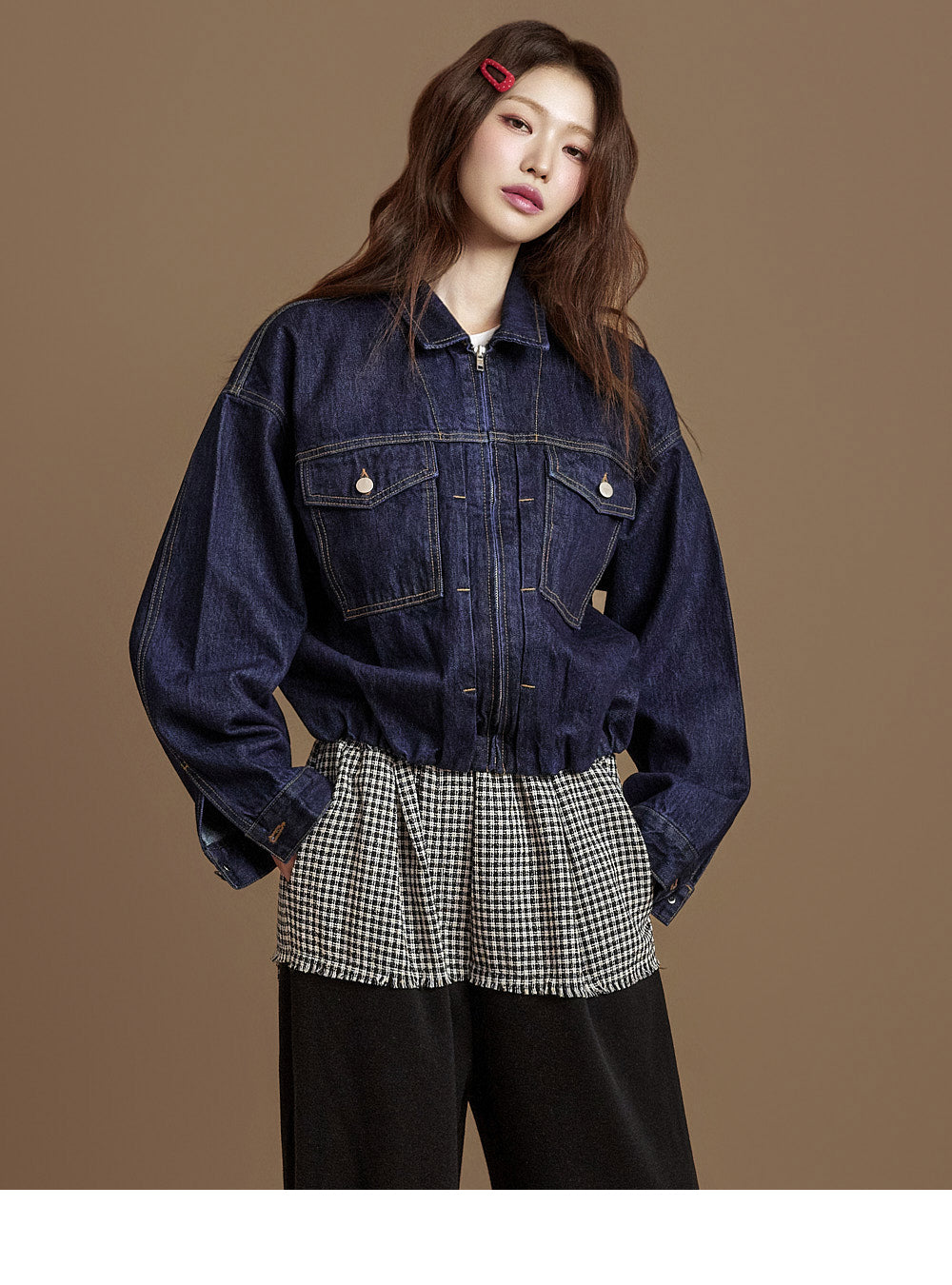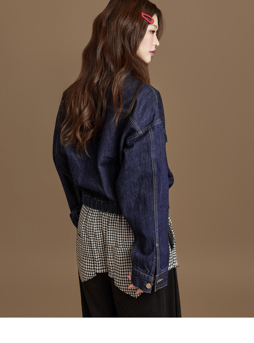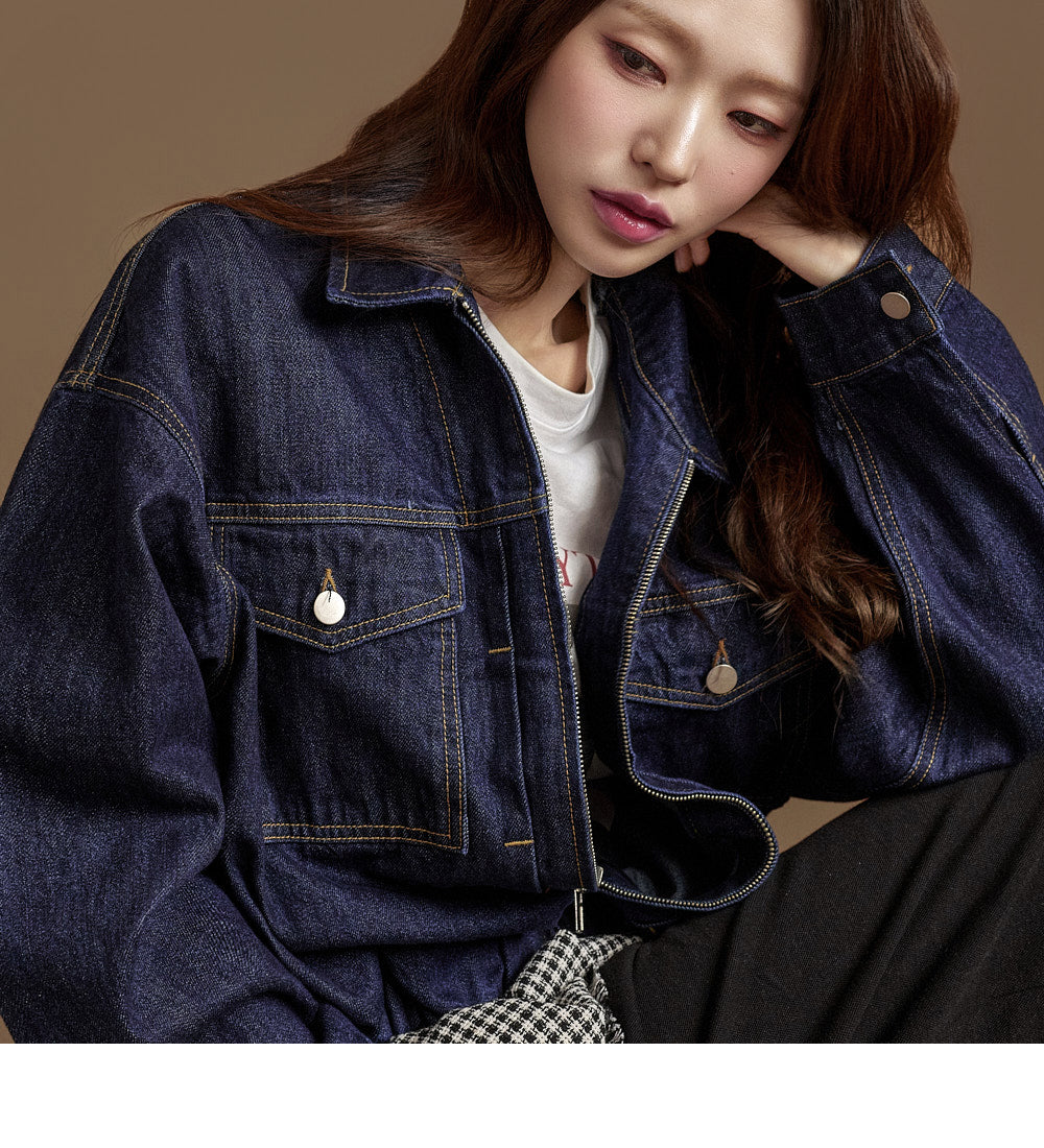 This cropped denim jacket exudes a stylish yet casual vibe.