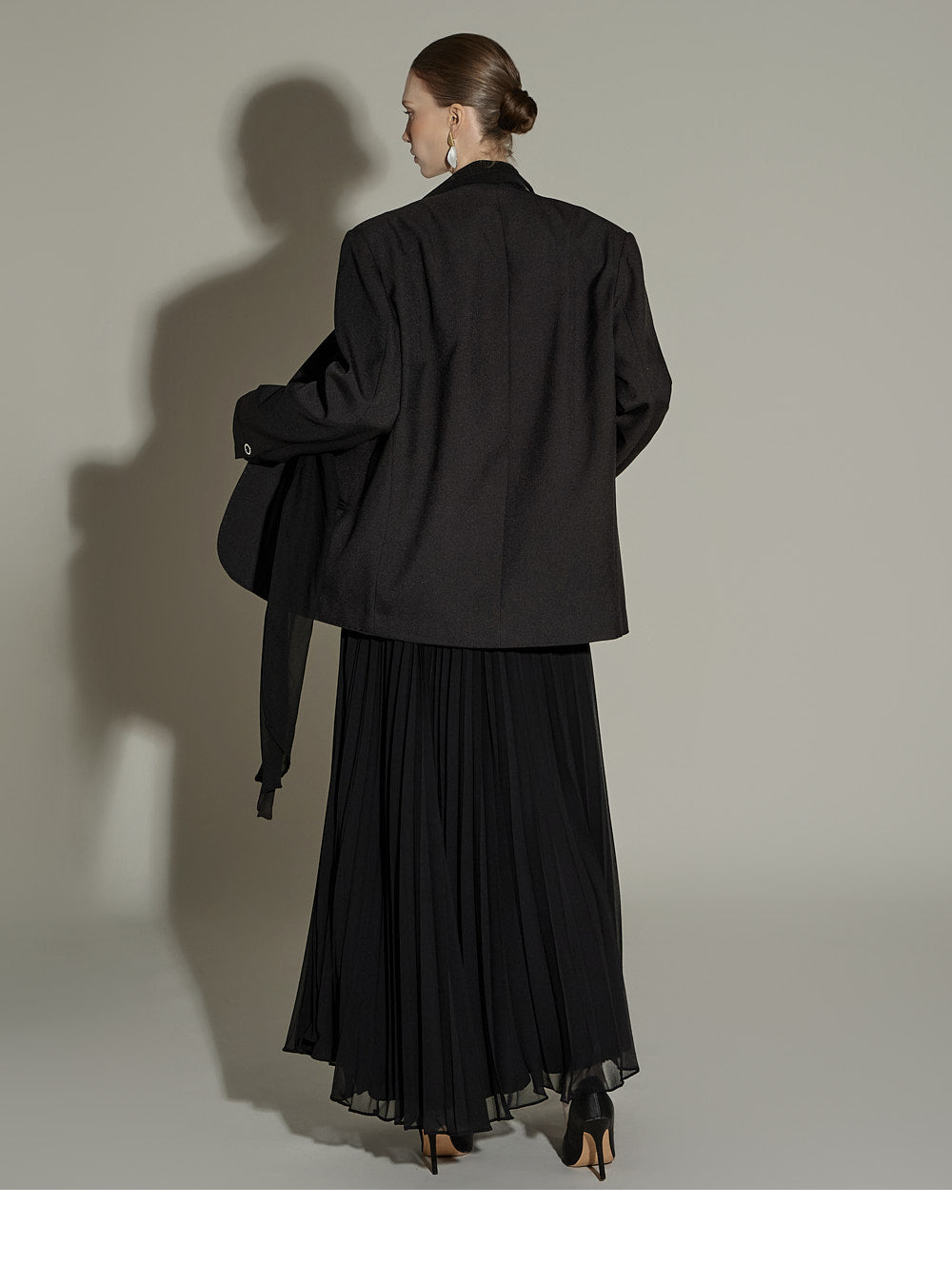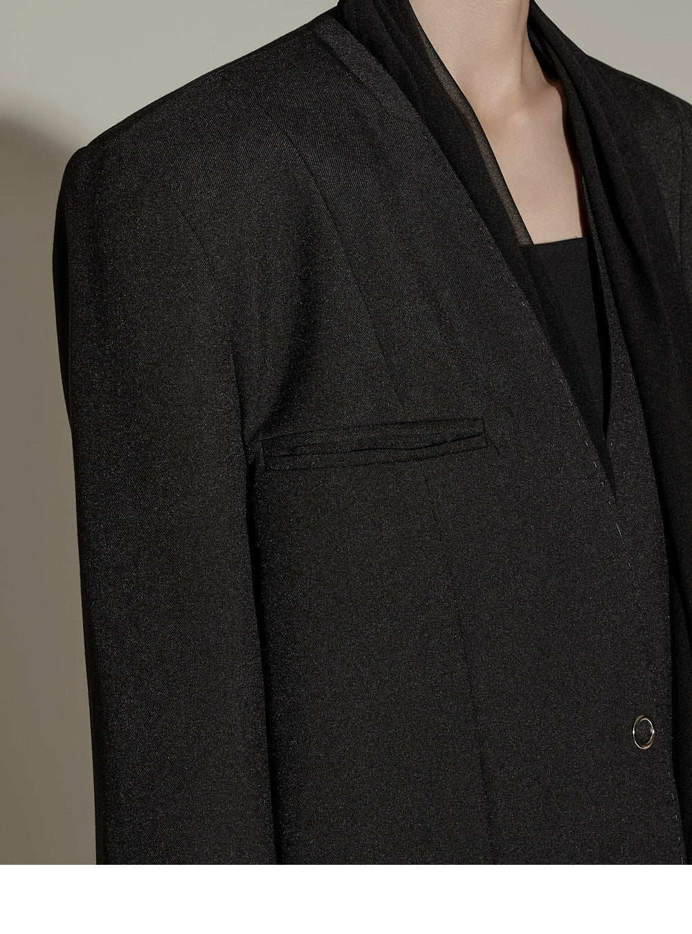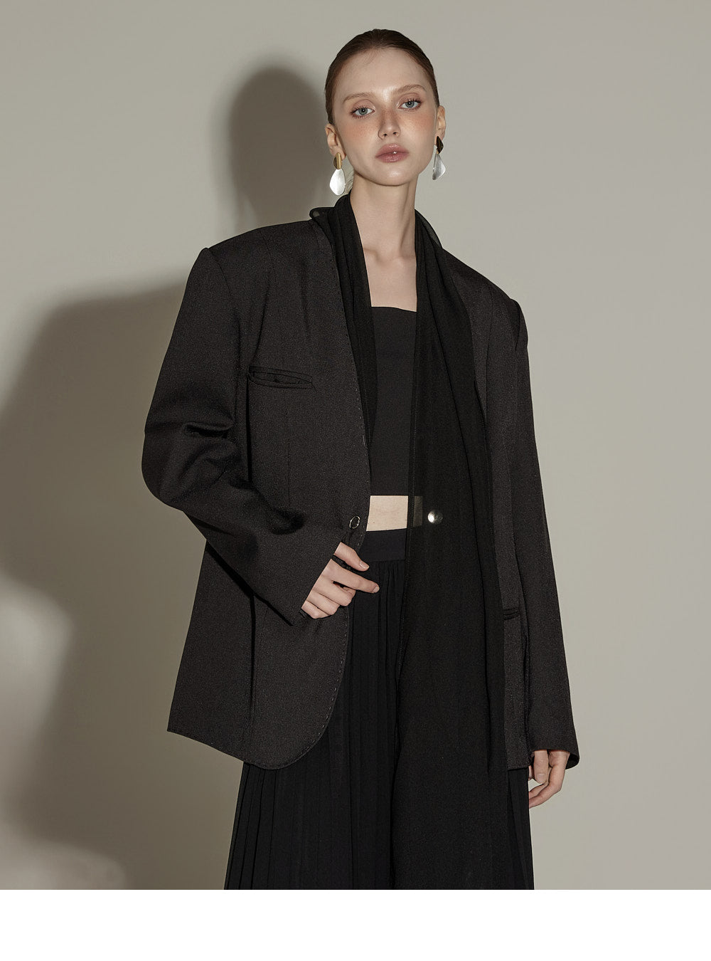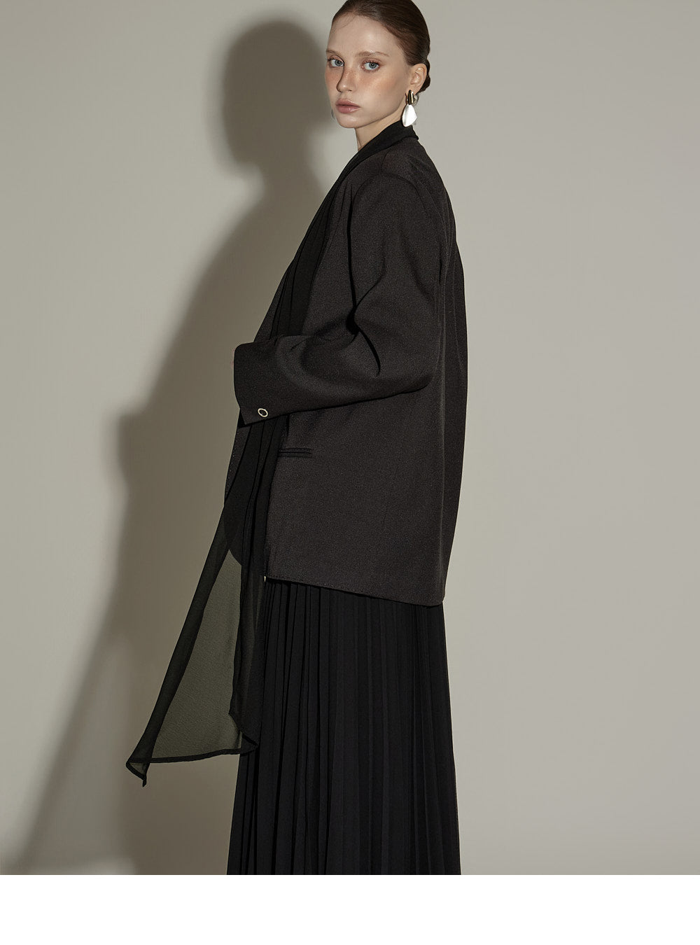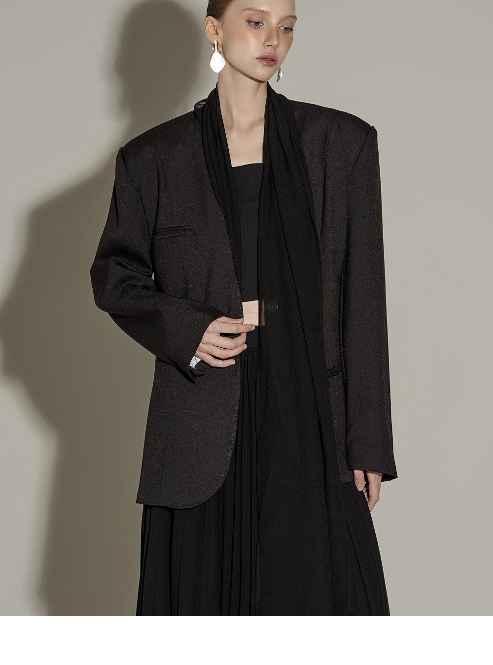 The sheer, detachable scarf detail allows for a variety of styling possibilities,