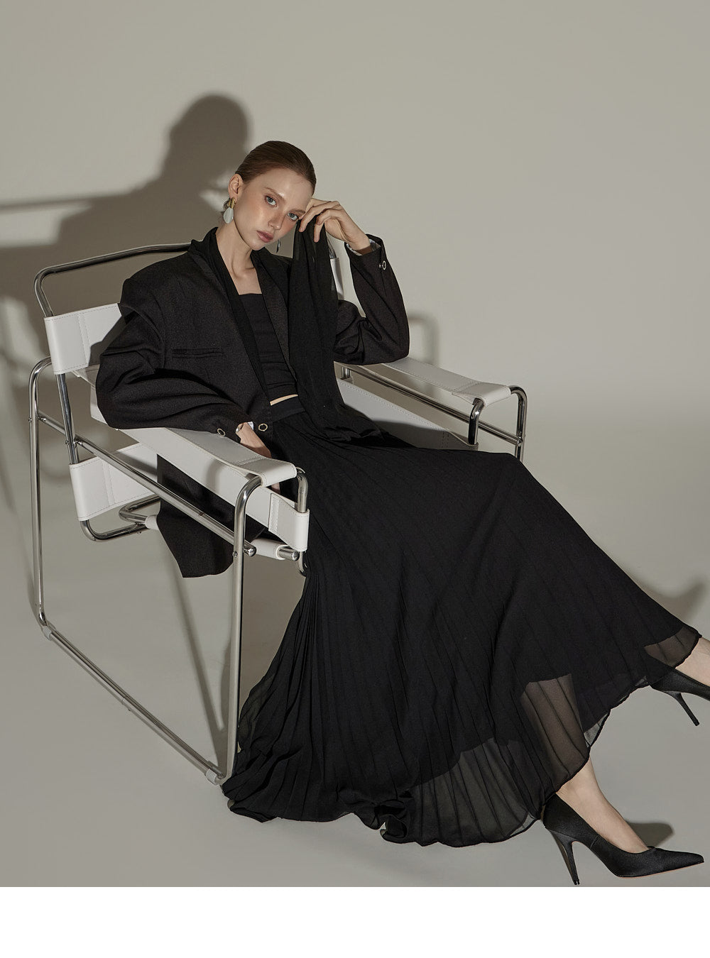 Model is 174cm tall and is wearing size ONE in BLACK.