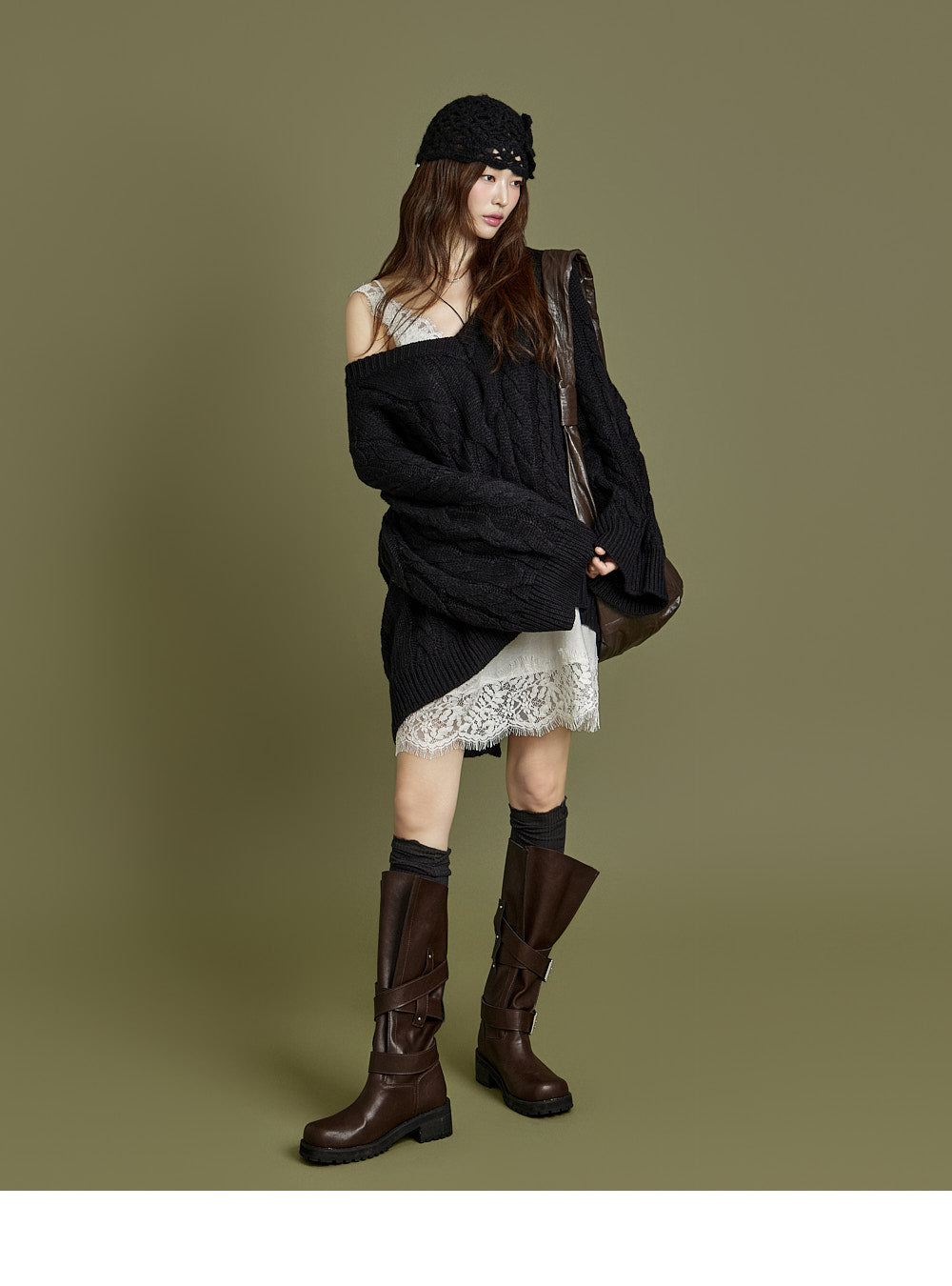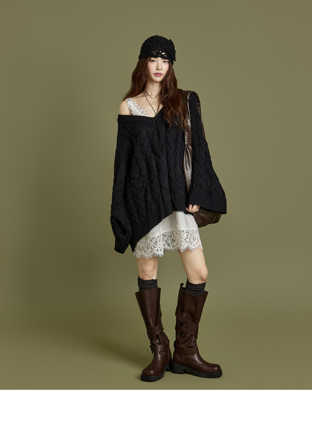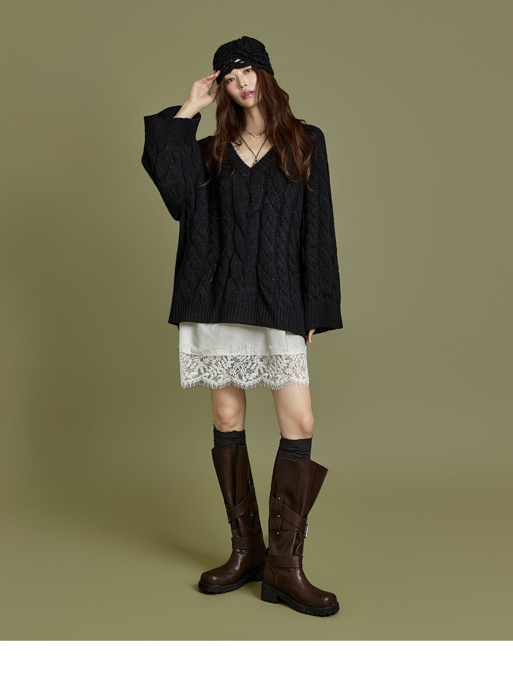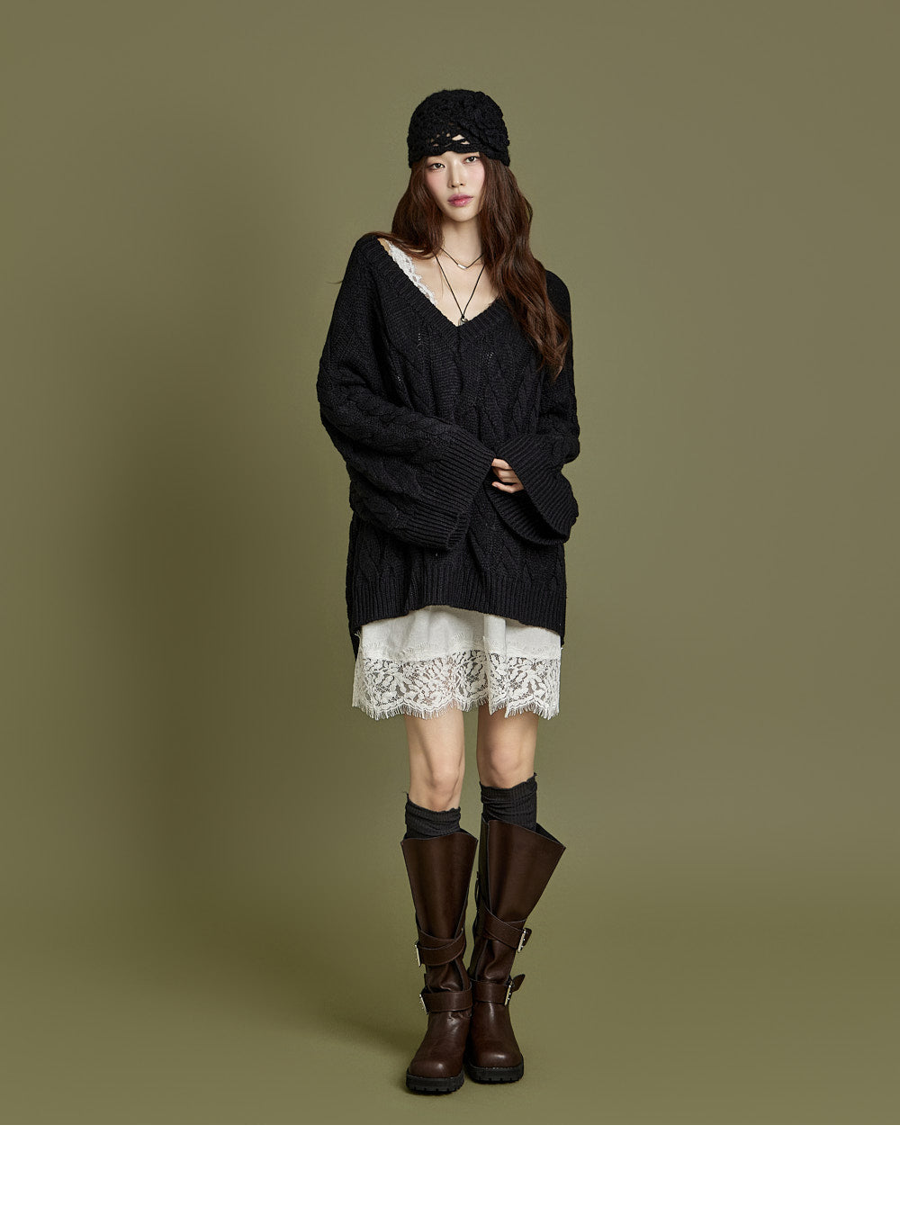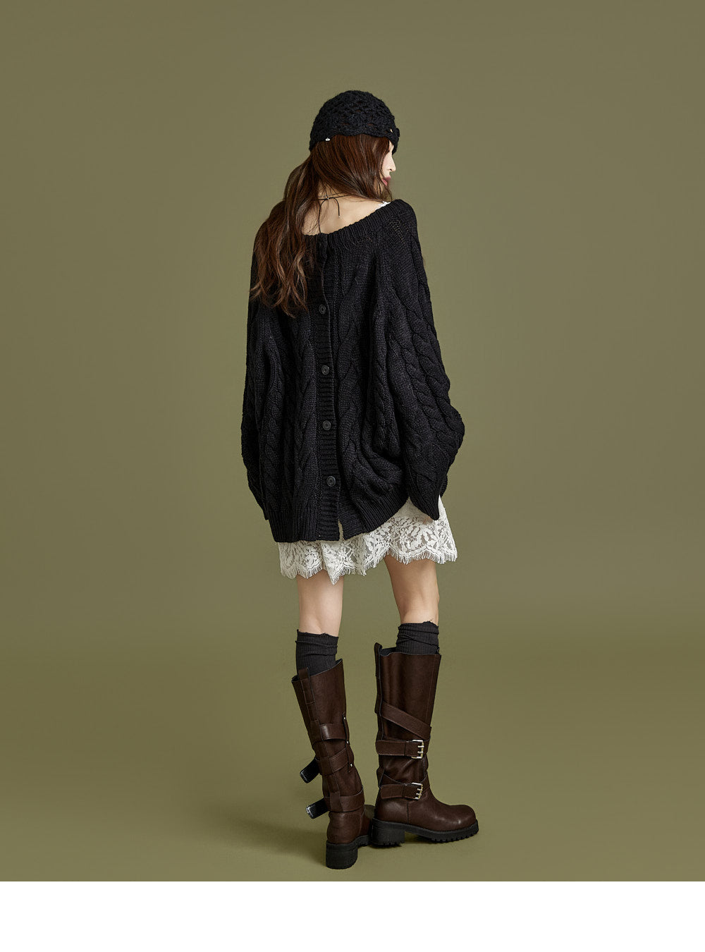 allowing you to create two distinct styles: a V-neck knit and a buttoned cardigan.