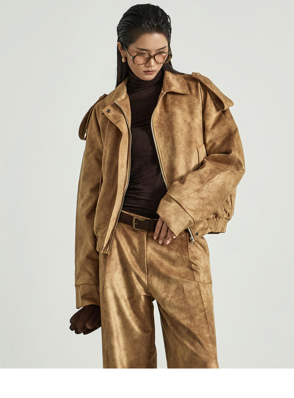 This suede jumper exudes a chic vibe.