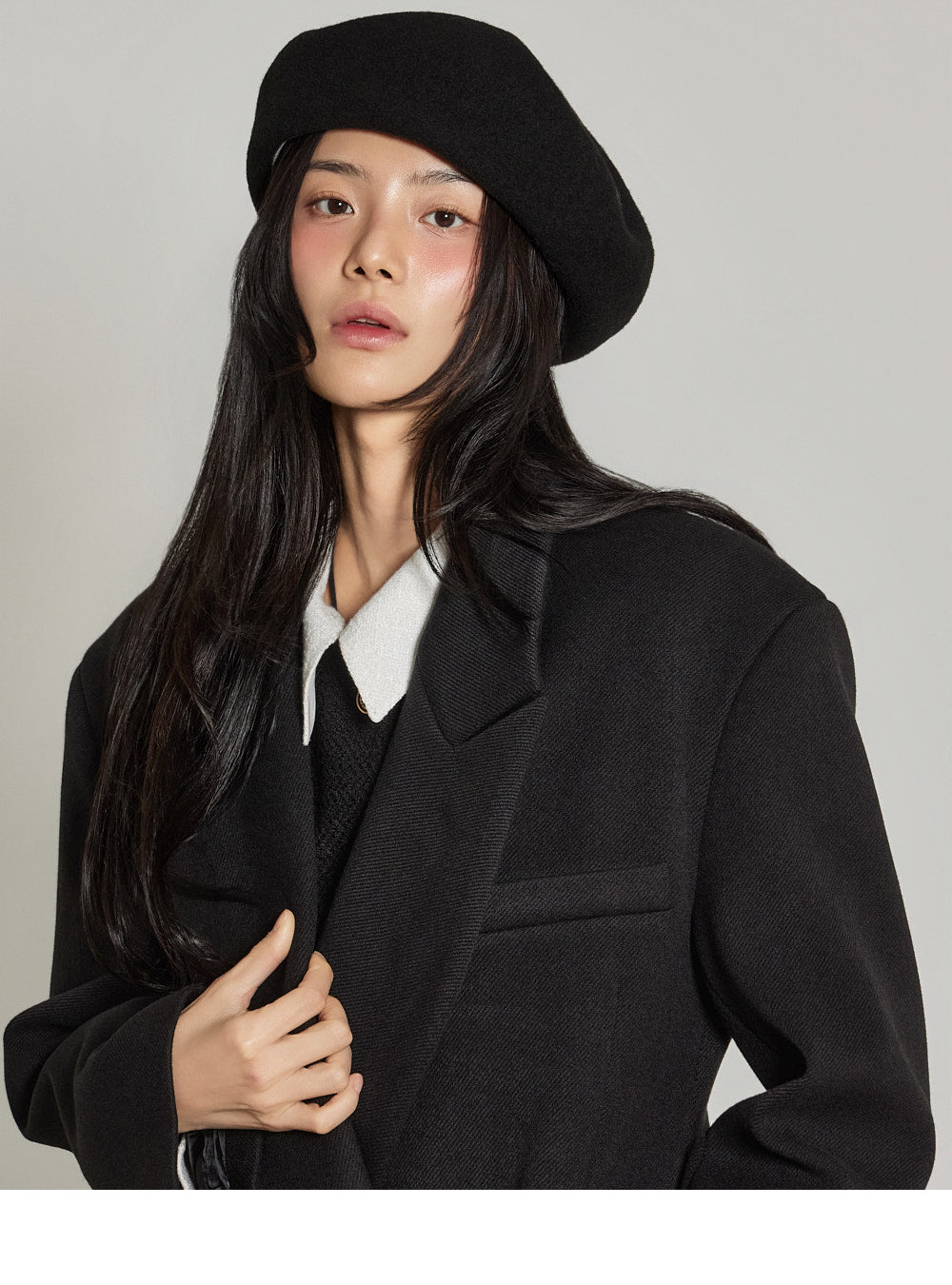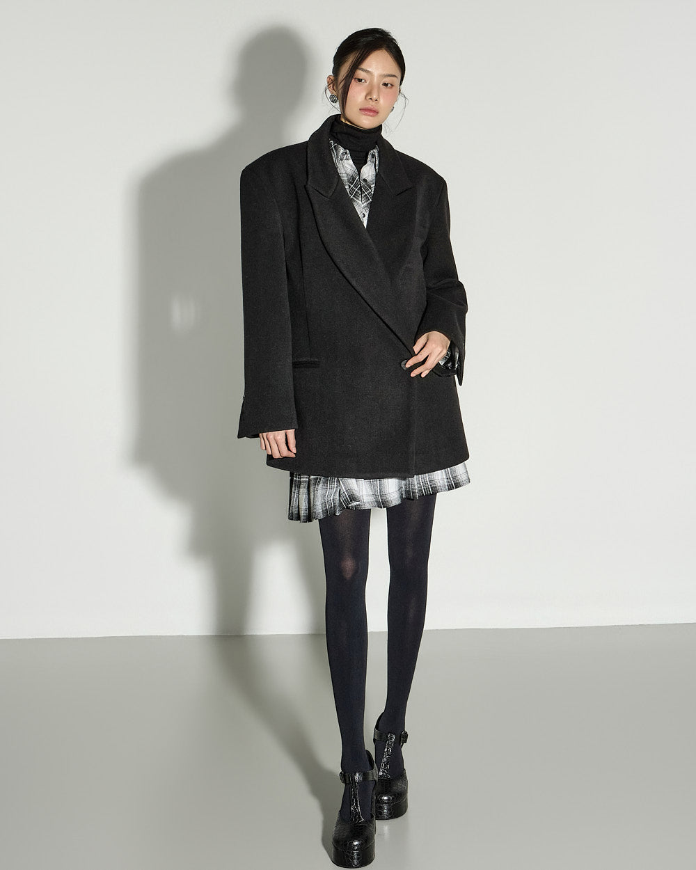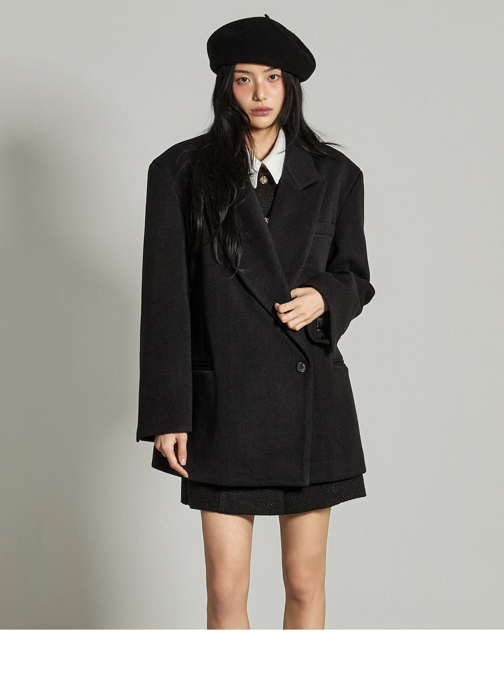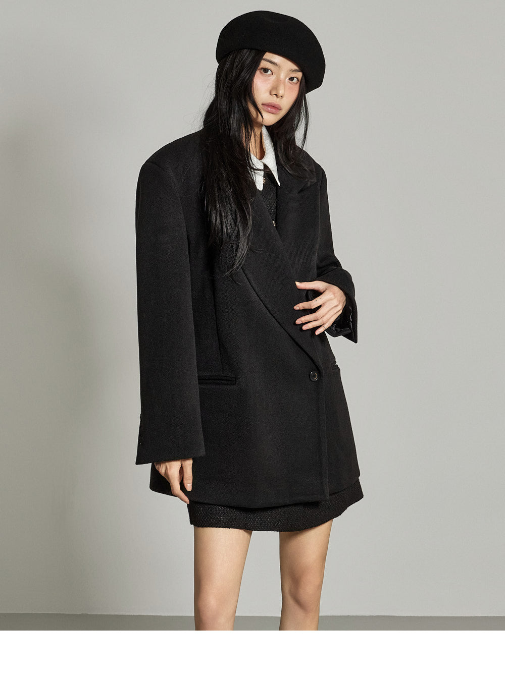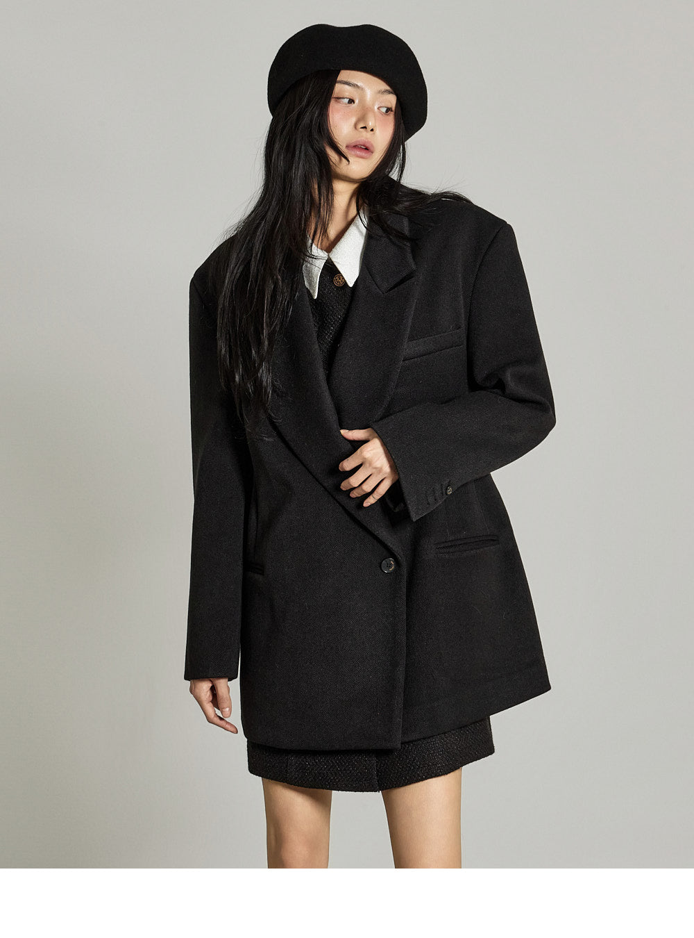 and the wide tailored collar adds a classic yet modern feel.