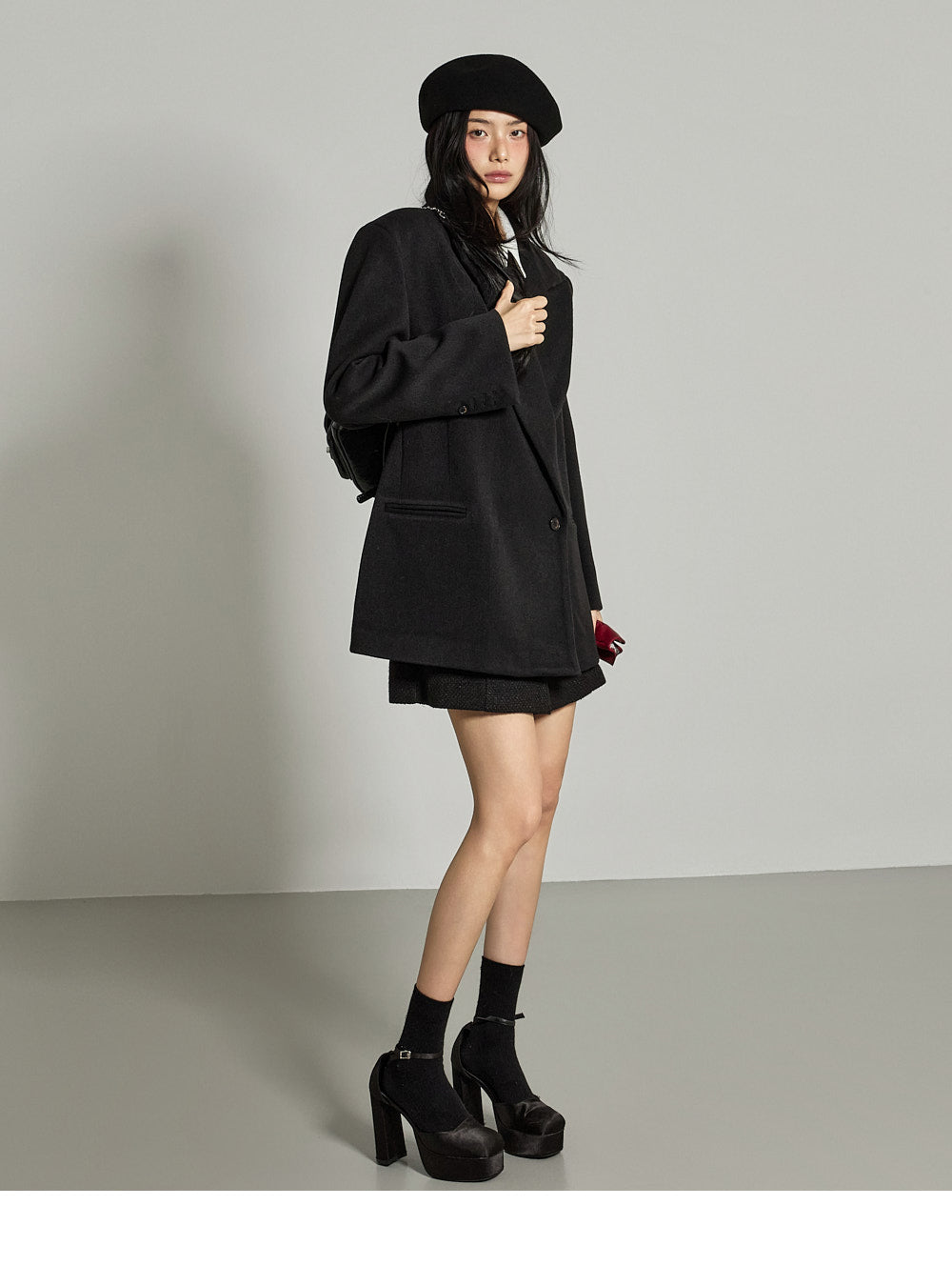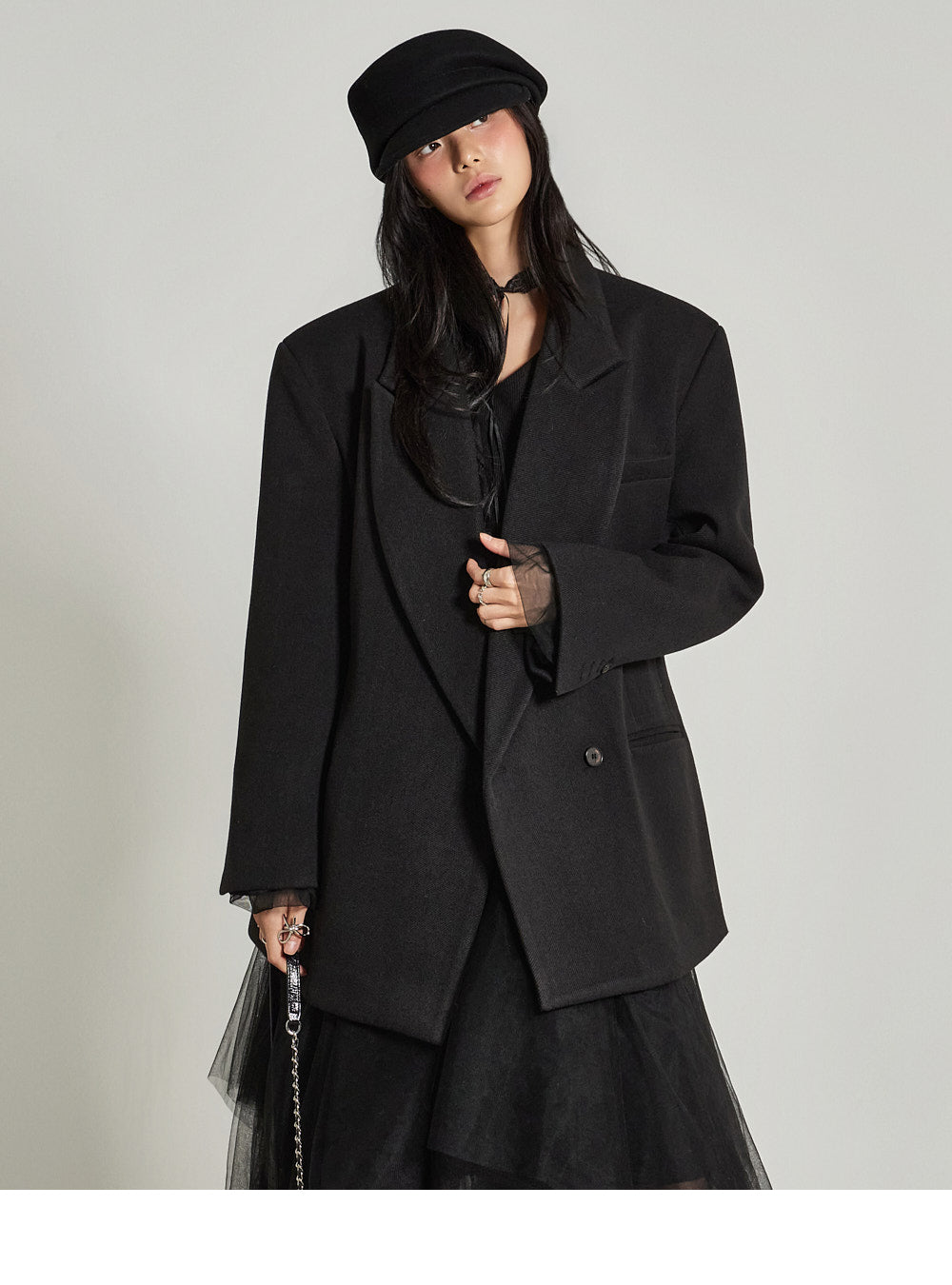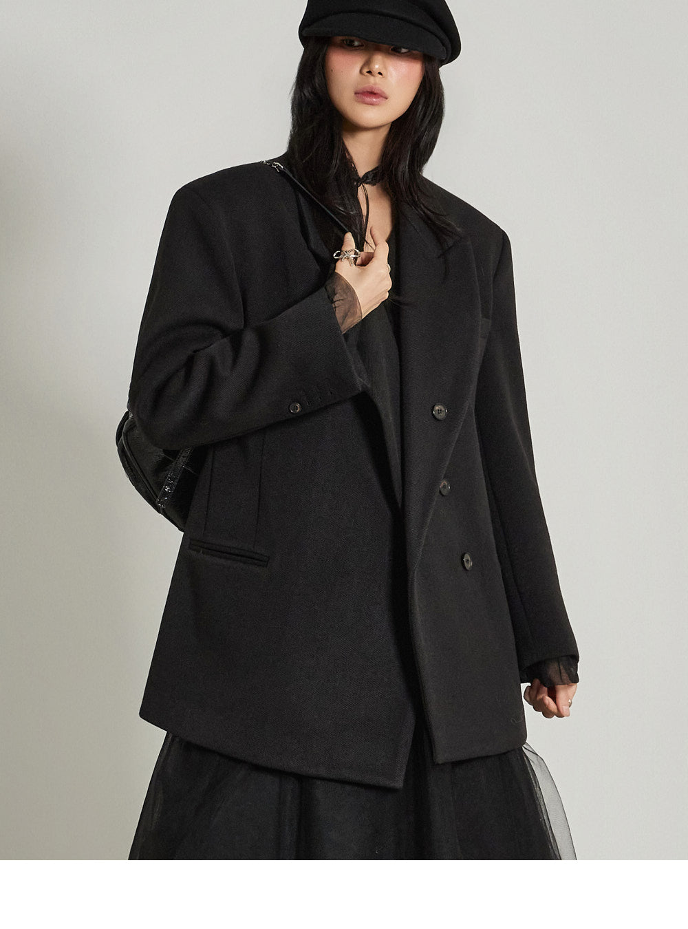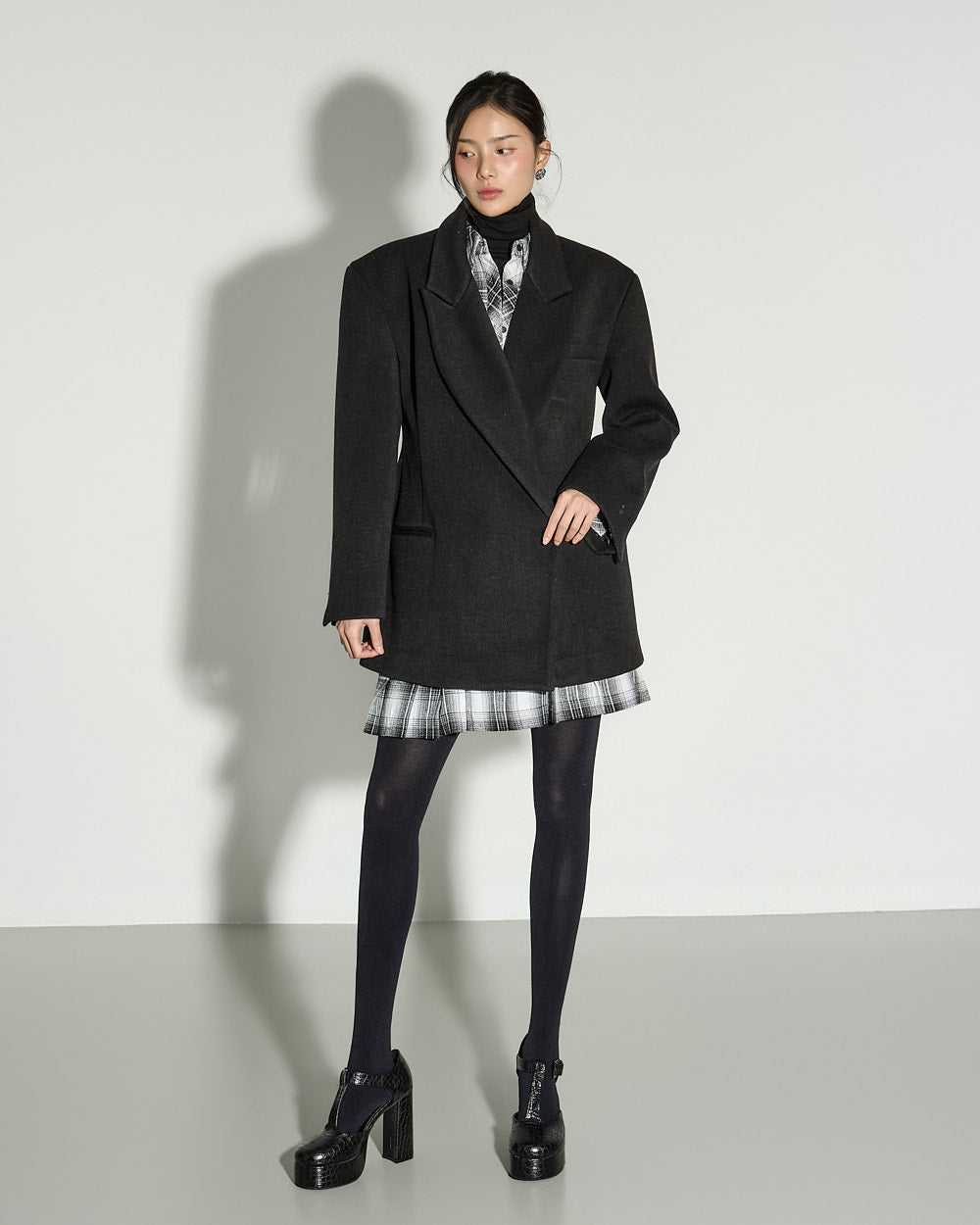 and the wide tailored collar adds a classic yet modern feel.