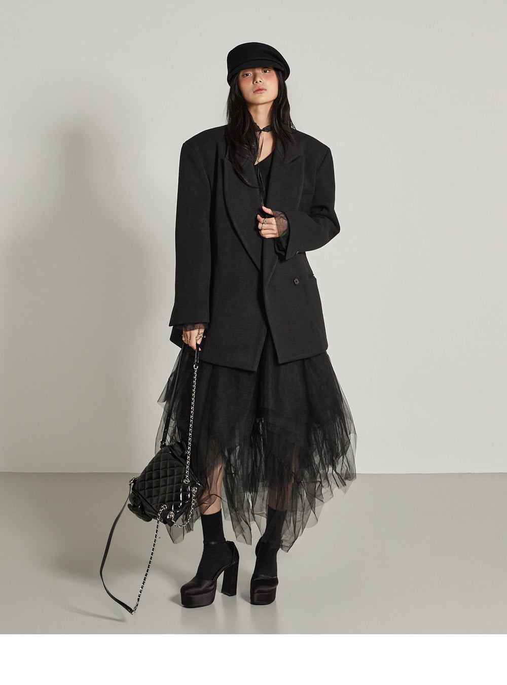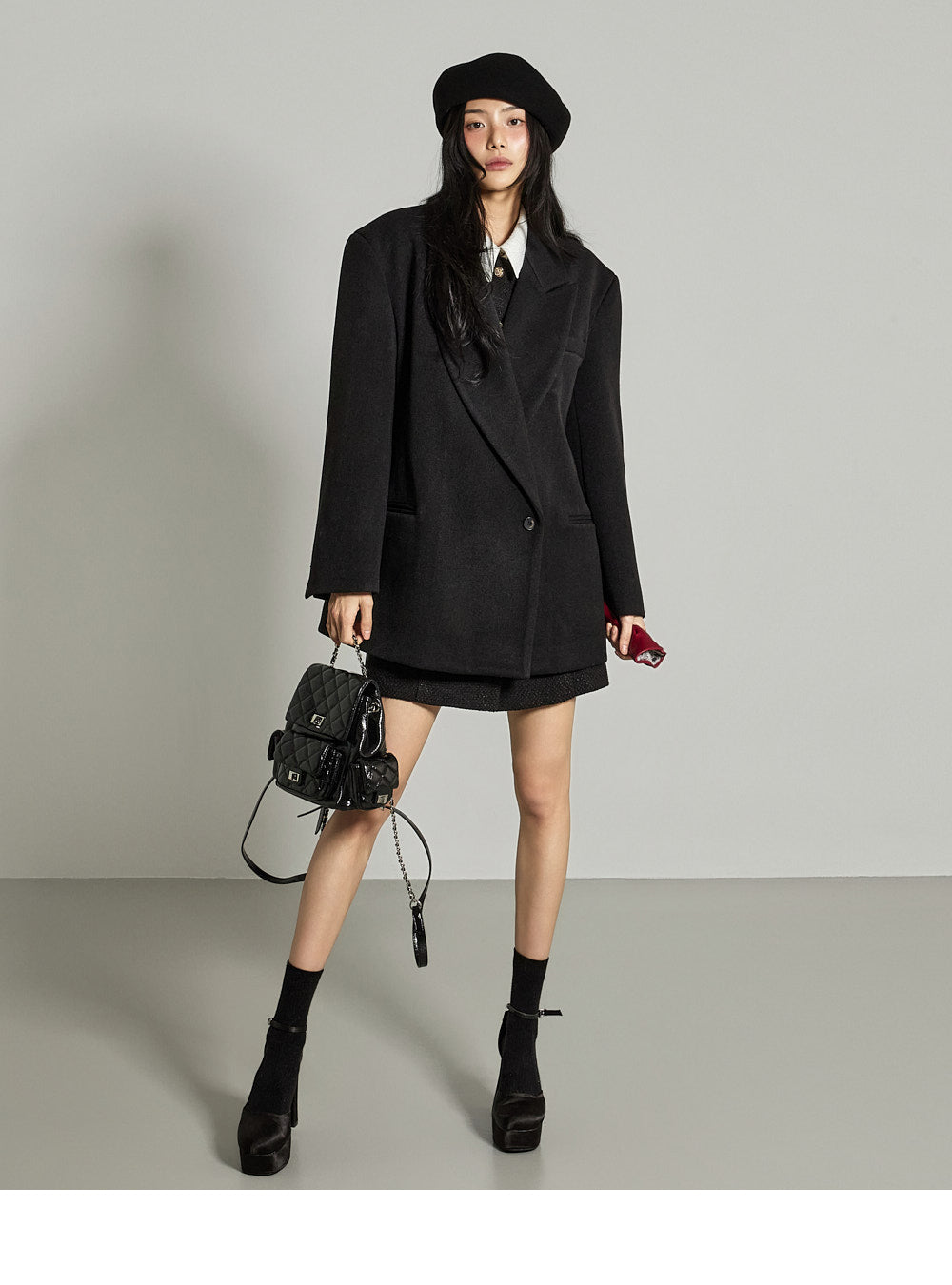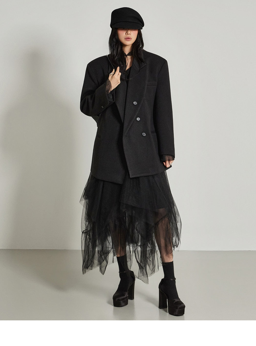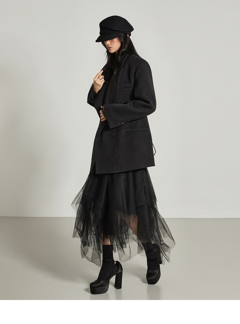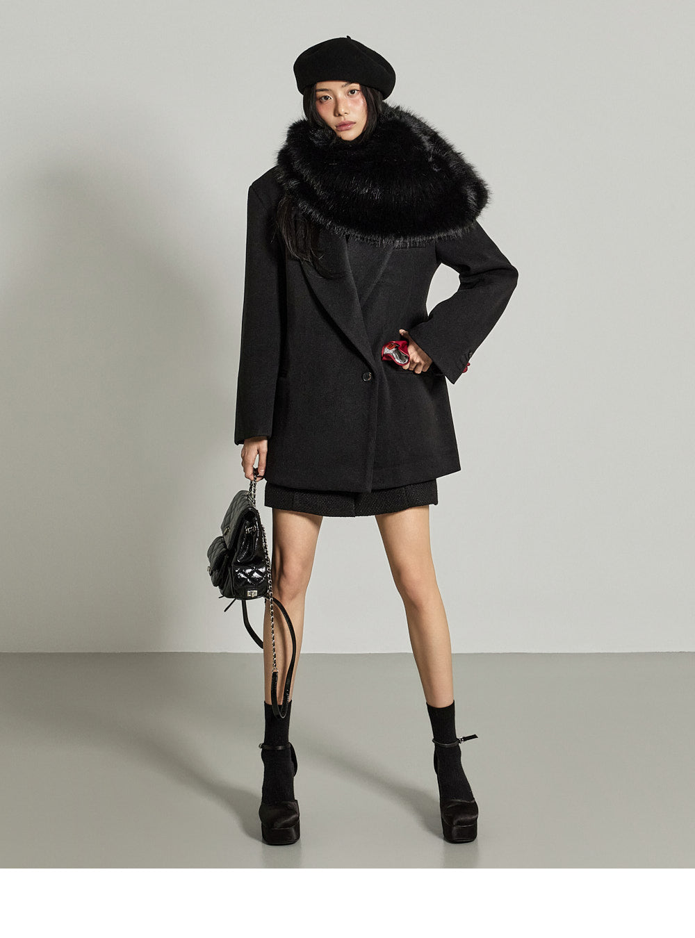 and the wide tailored collar adds a classic yet modern feel.