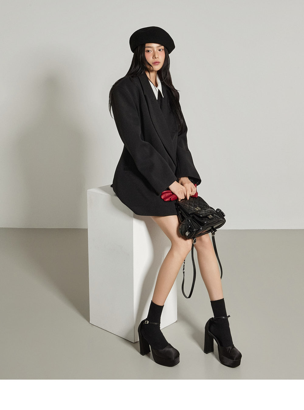 The 171cm model is wearing size ONE in BLACK.