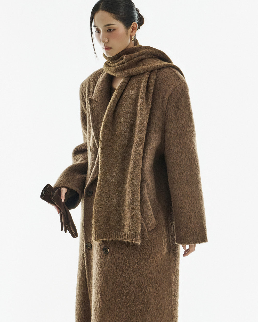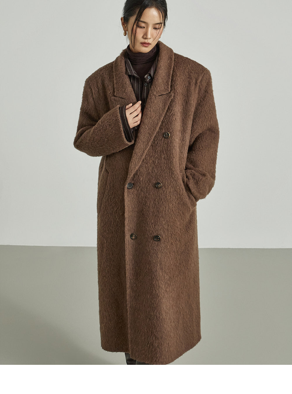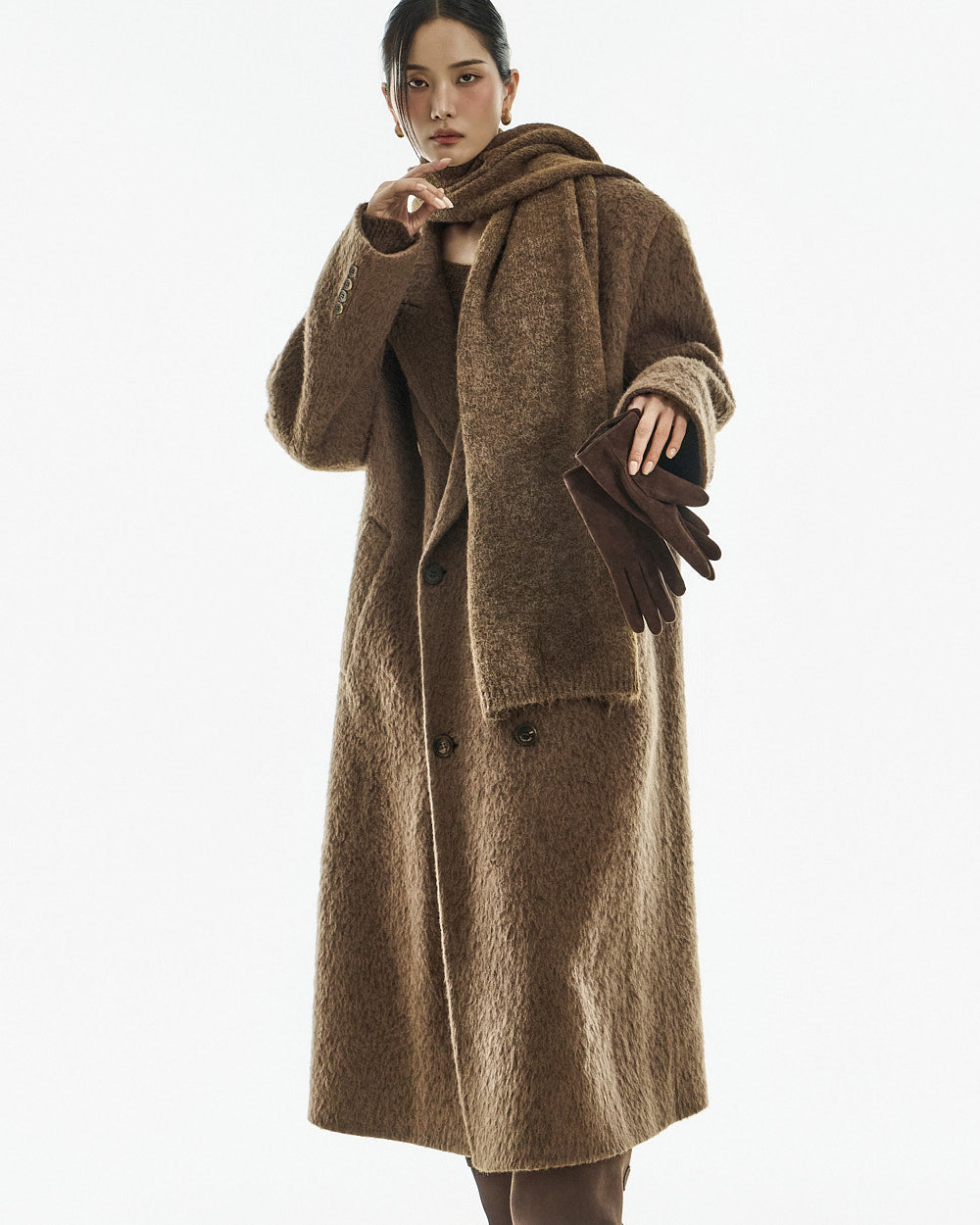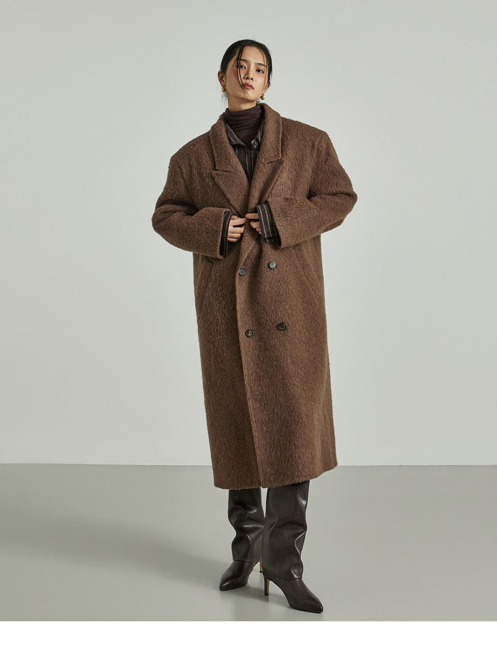 This long coat exudes a warm mood.