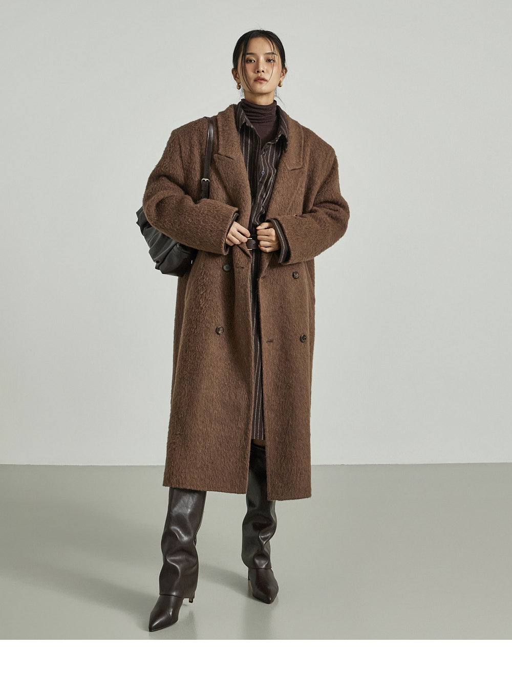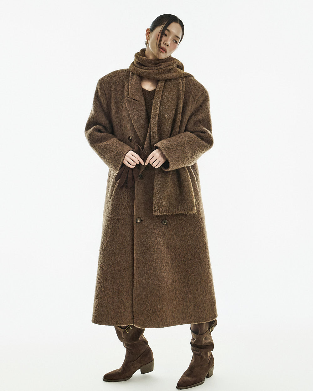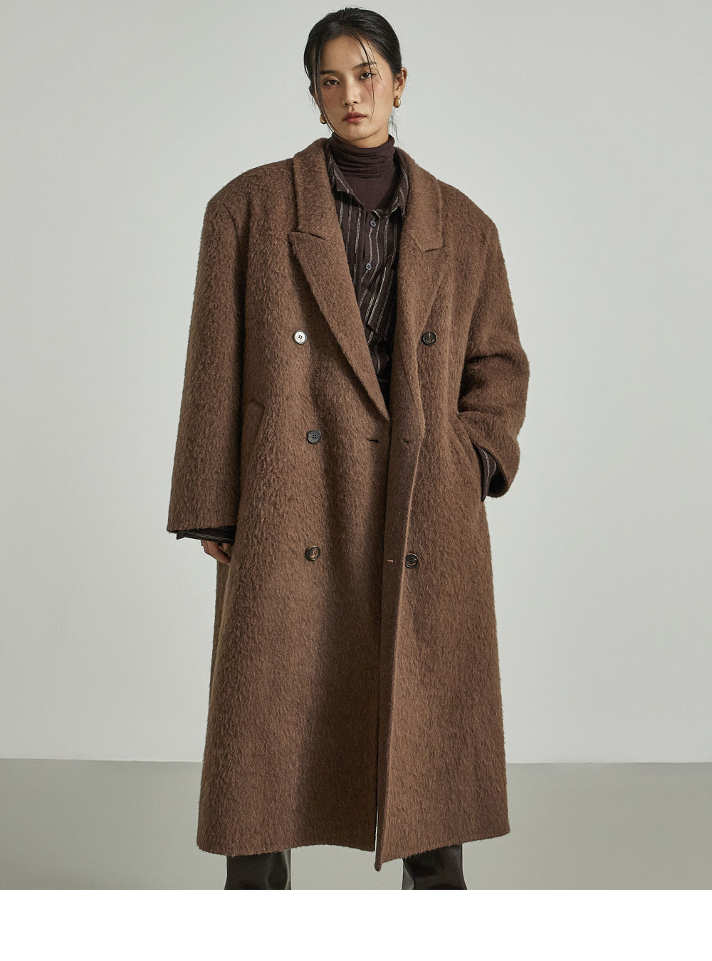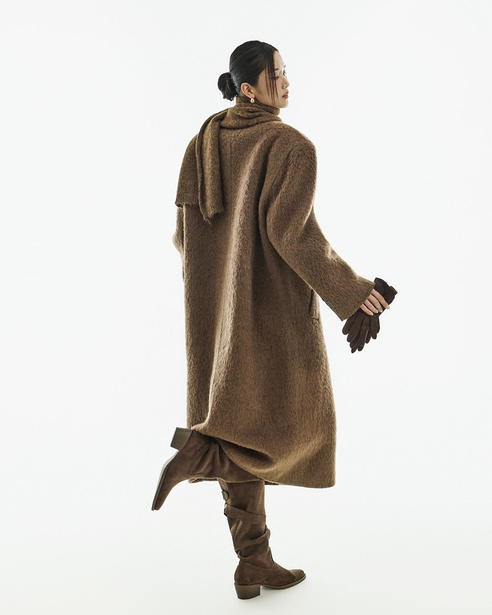 This long coat exudes a warm mood.