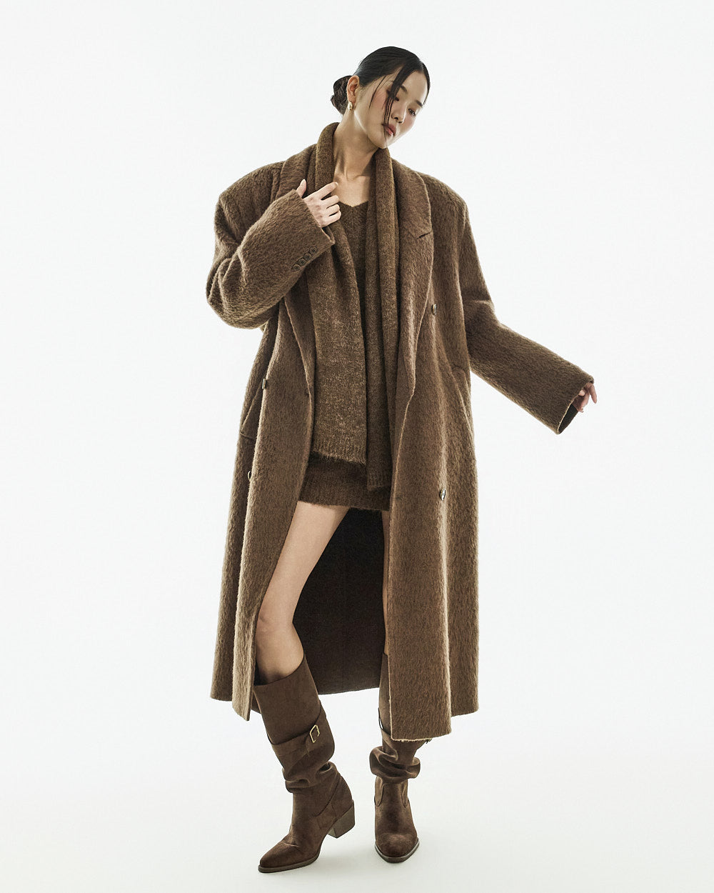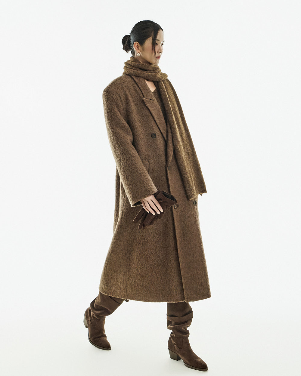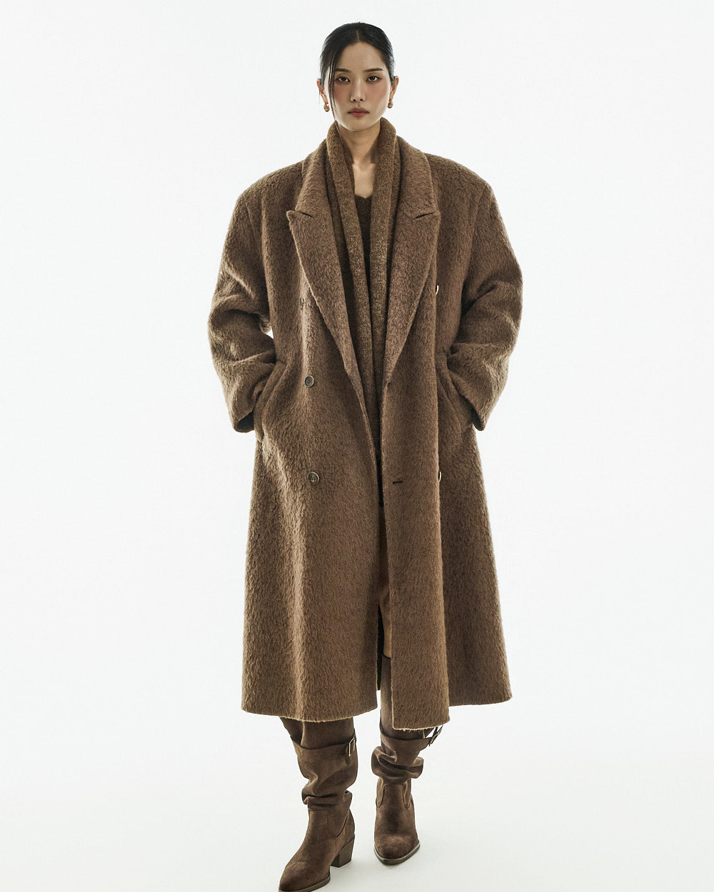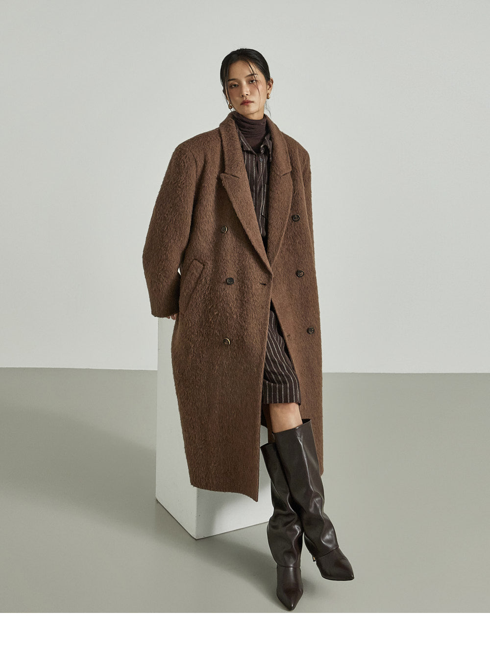This long coat exudes a warm mood.