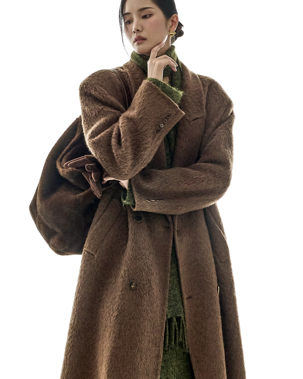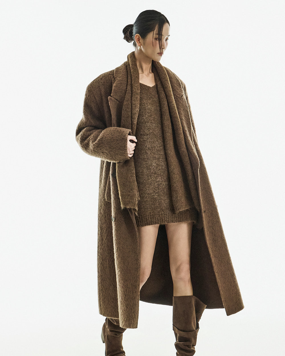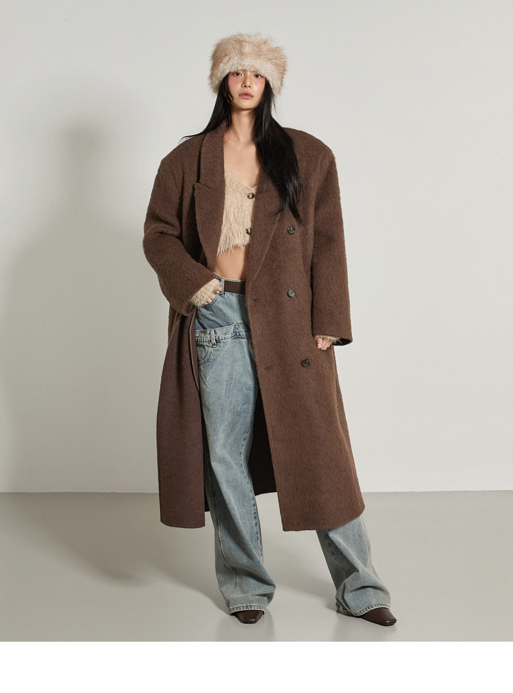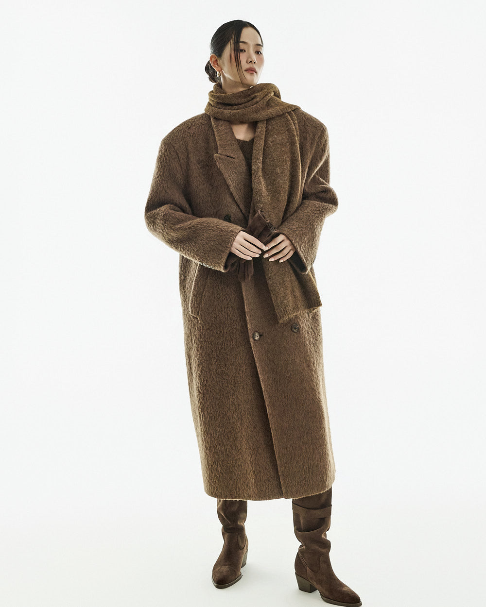 This long coat exudes a warm mood.
