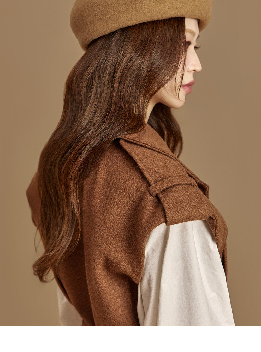 Shoulder epaulettes and front pin tucks add a classic touch,