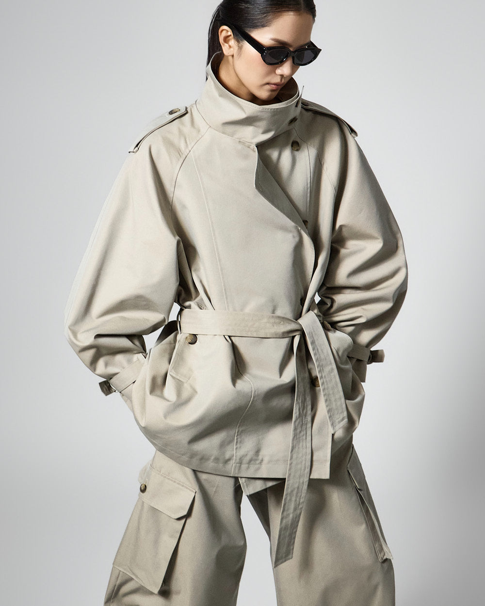 This half trench jacket exudes a casual chic vibe.