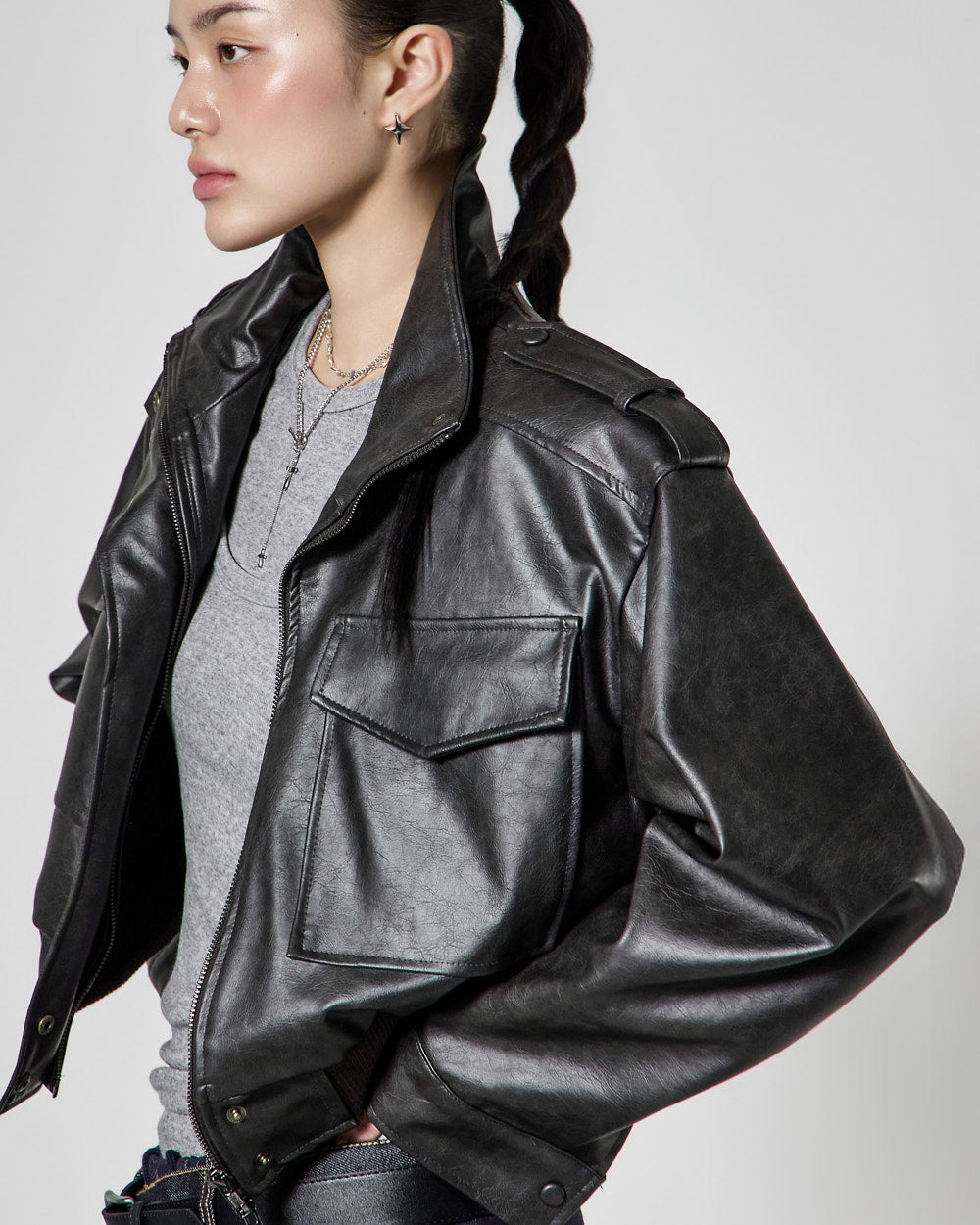 Designed with a high neck and a front two-way zipper with snap-button closure, it enhances warmth and practicality and allows for versatile styling depending on how it’s worn.