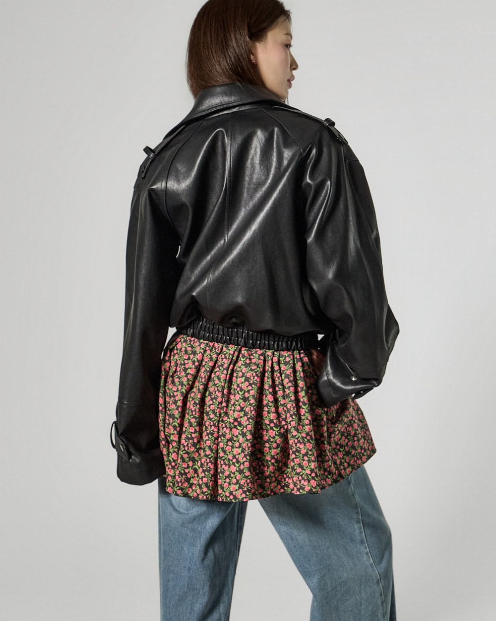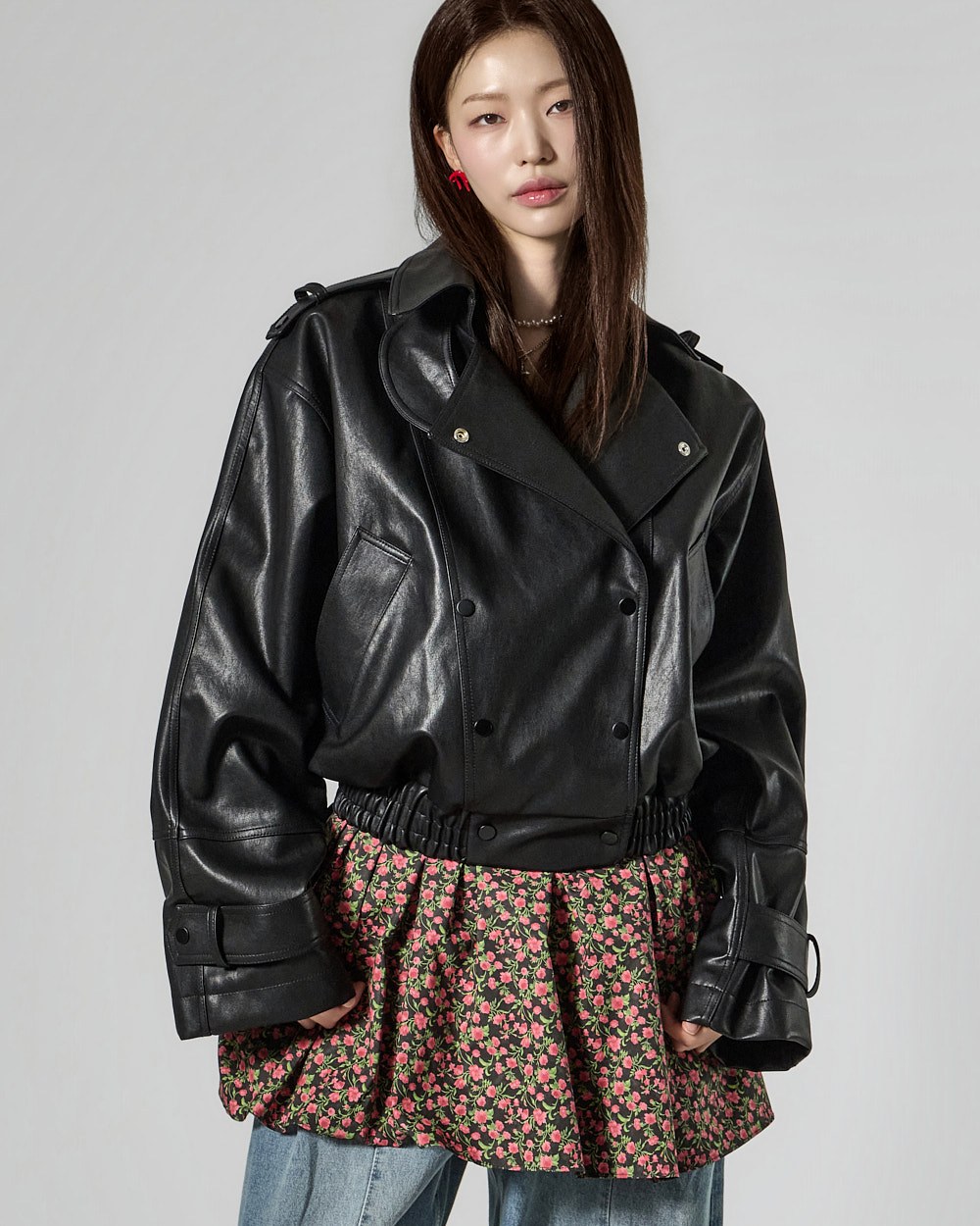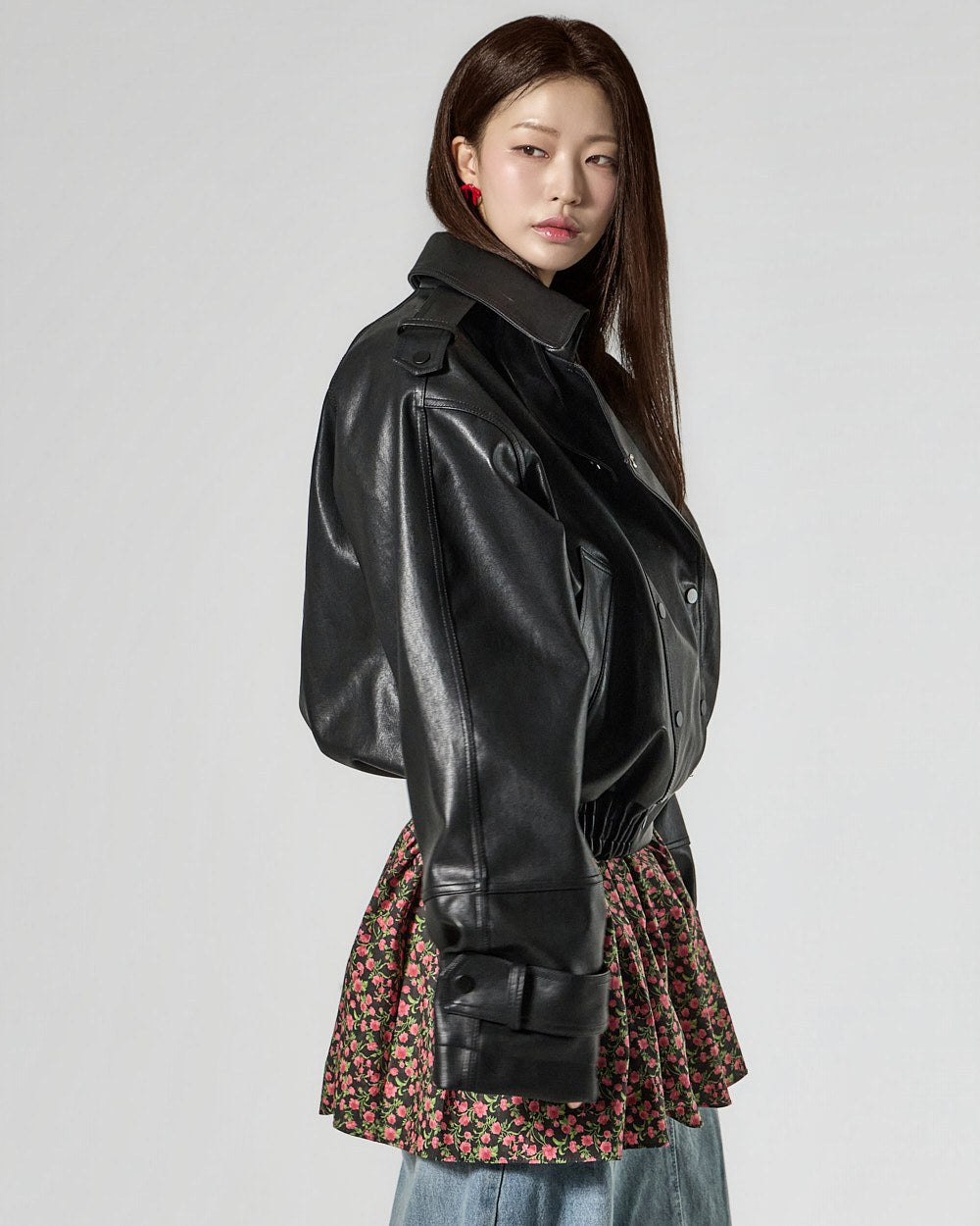 This leather jacket exudes a modern vibe.