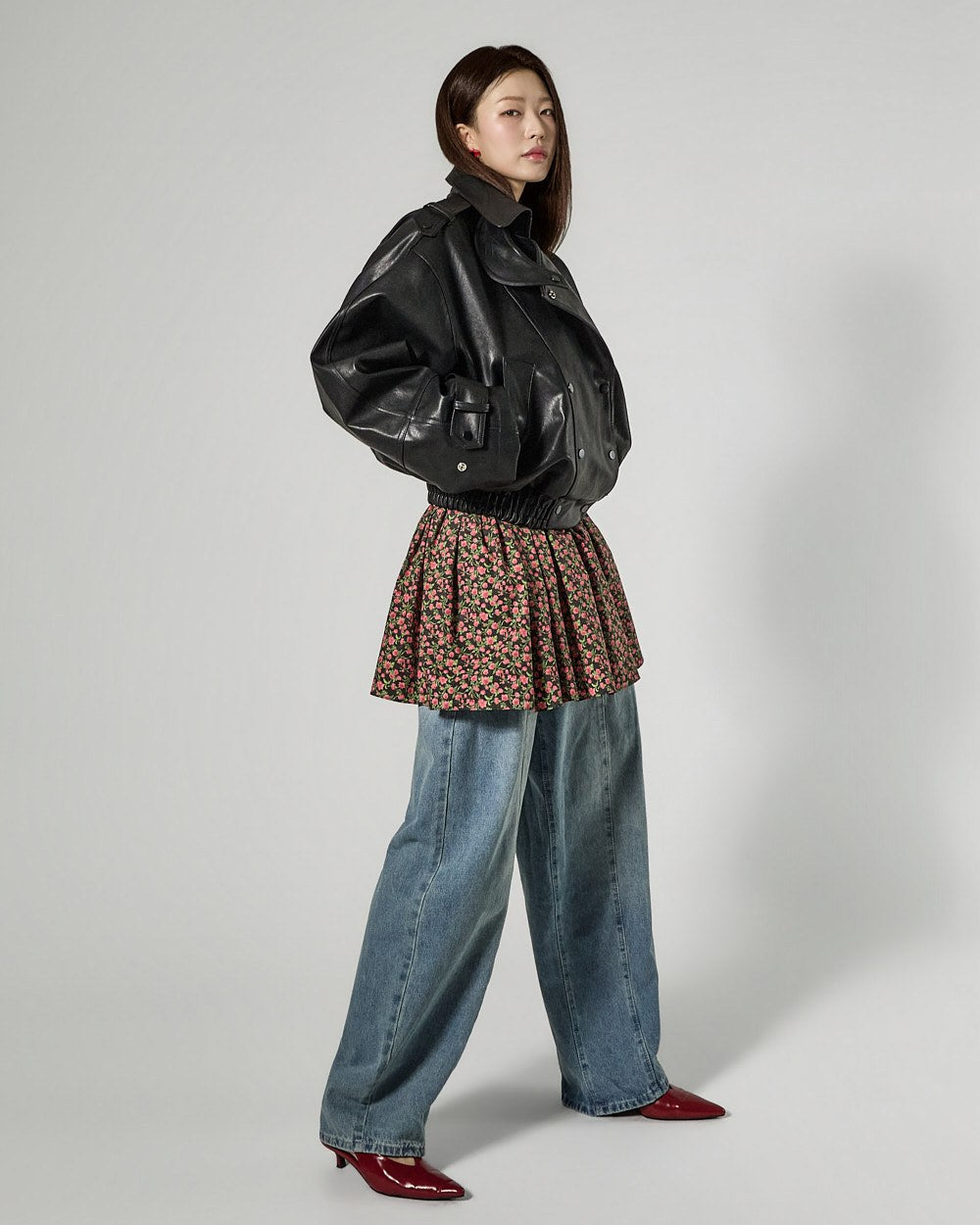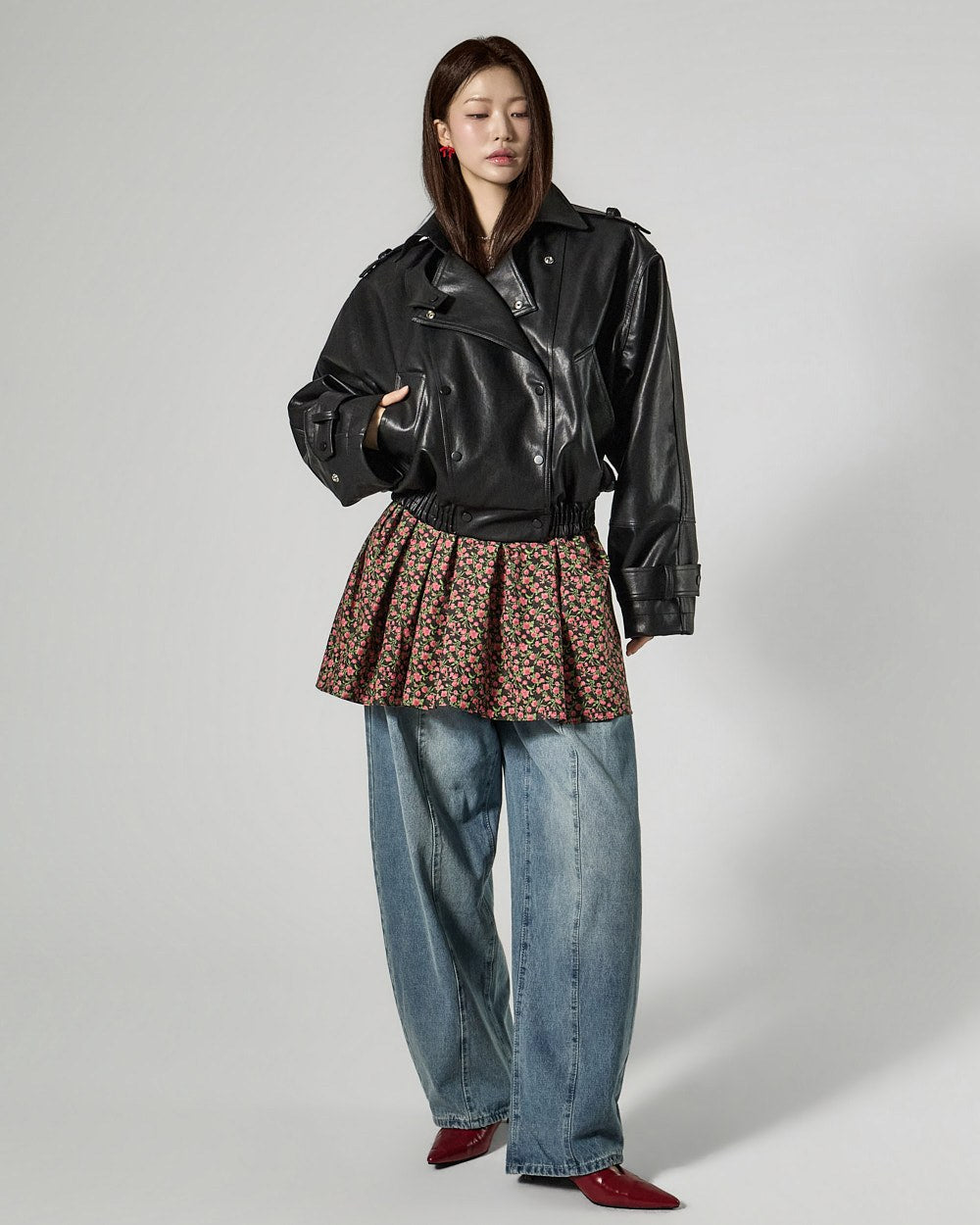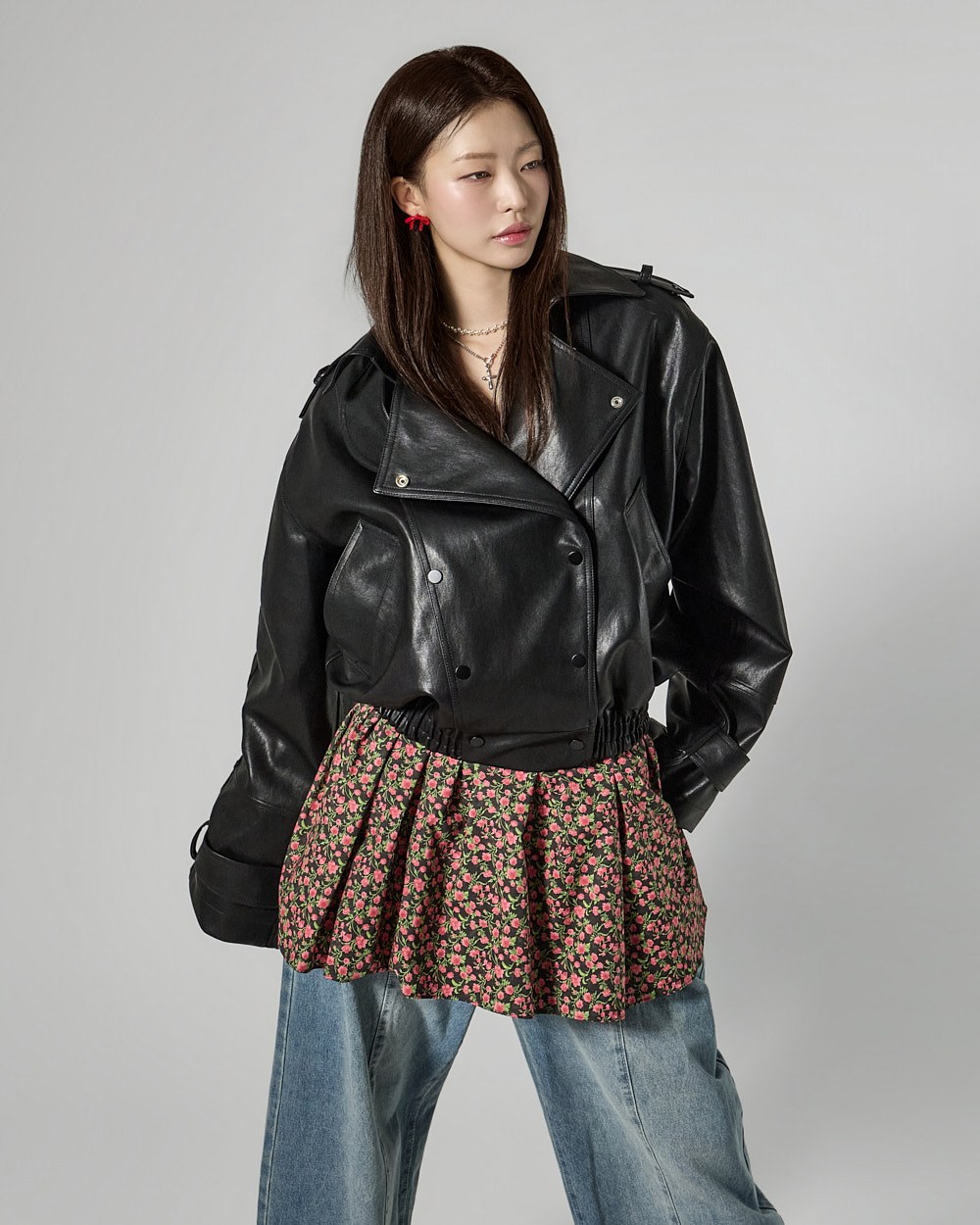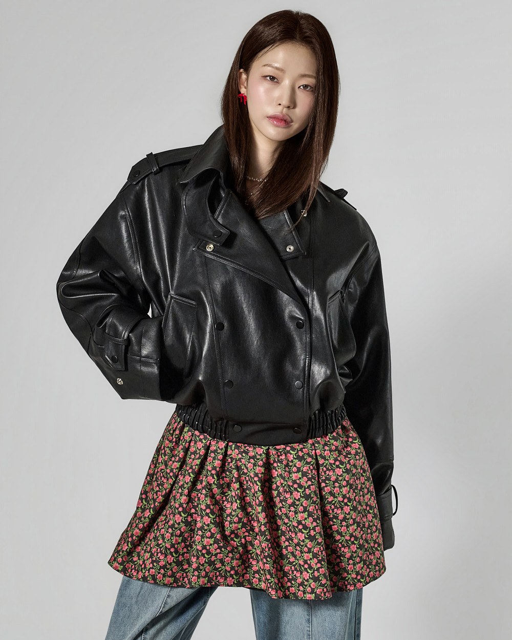 This leather jacket exudes a modern vibe.
