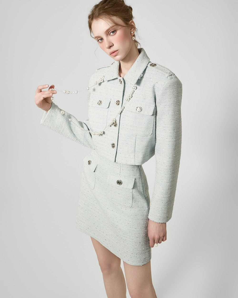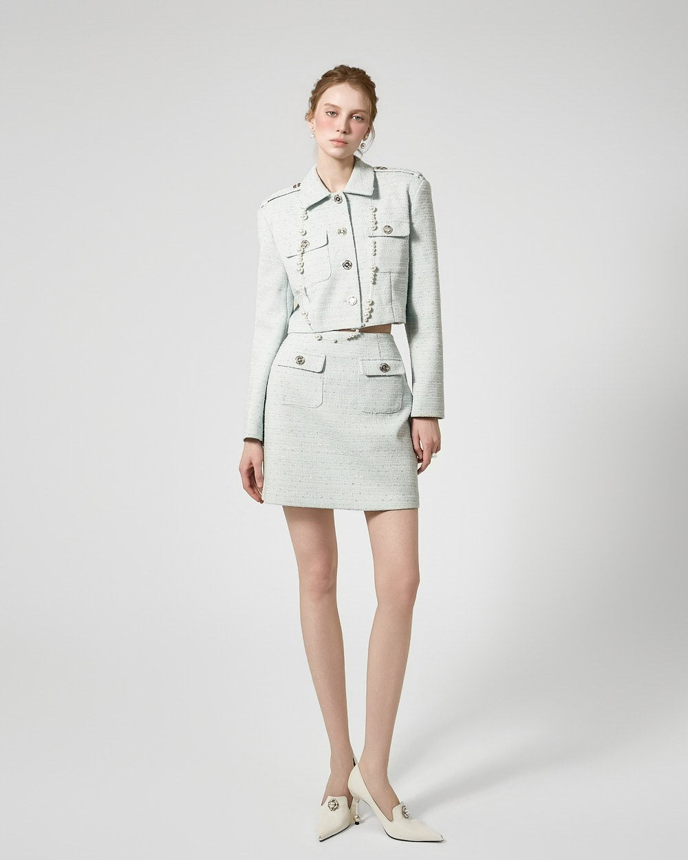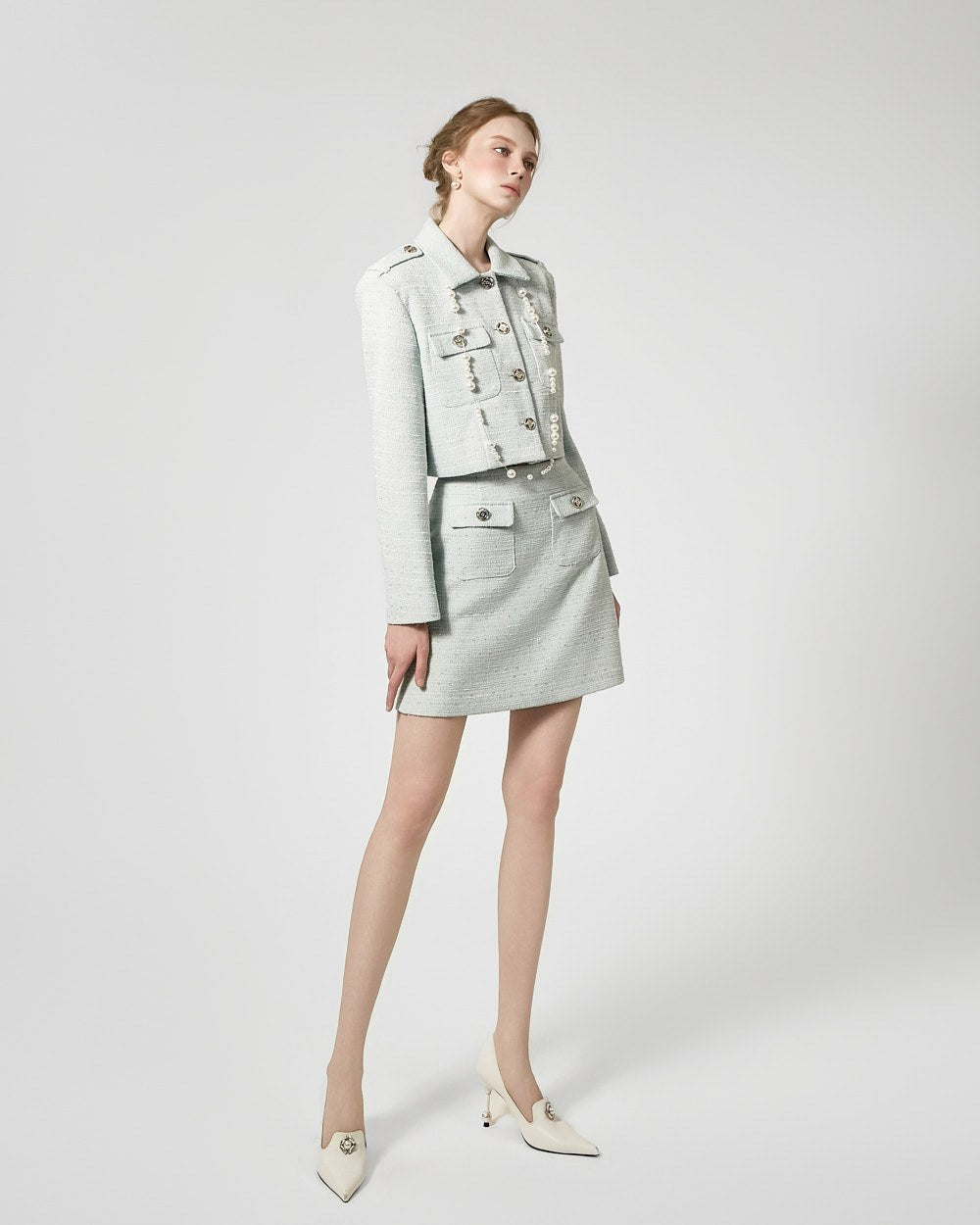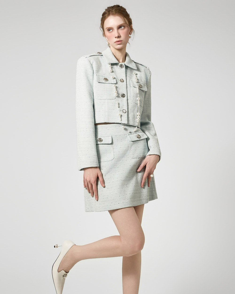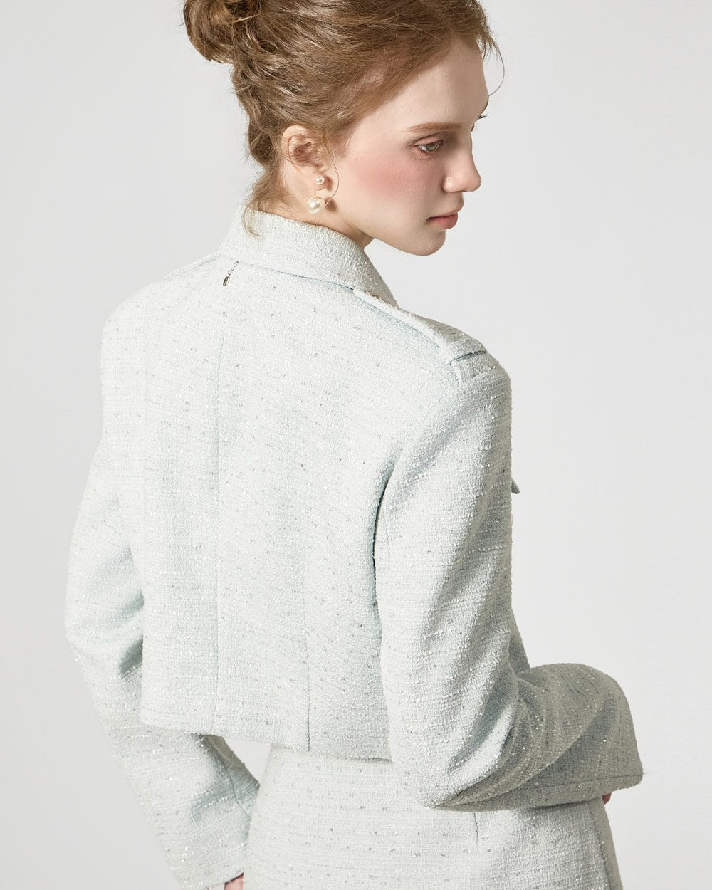 フェミニンな雰囲気のツイードクロップドジャケットです。