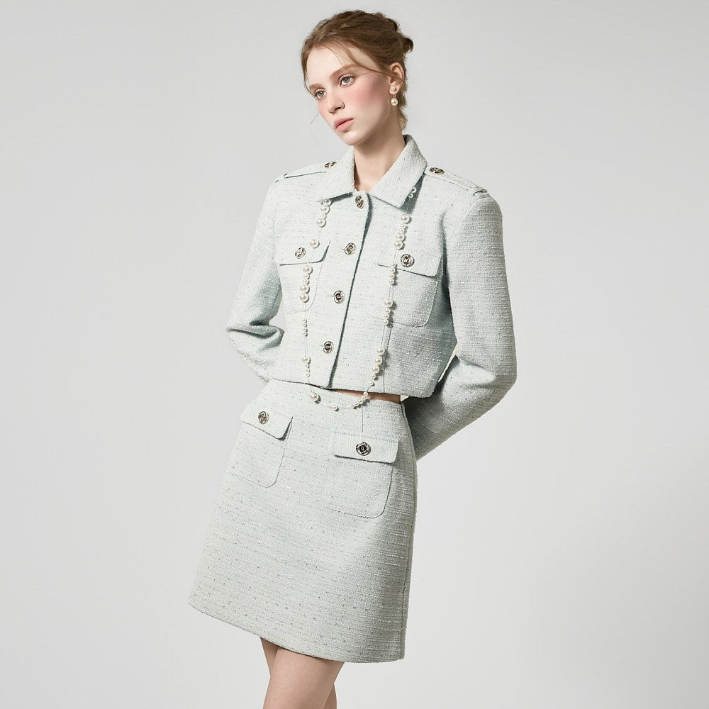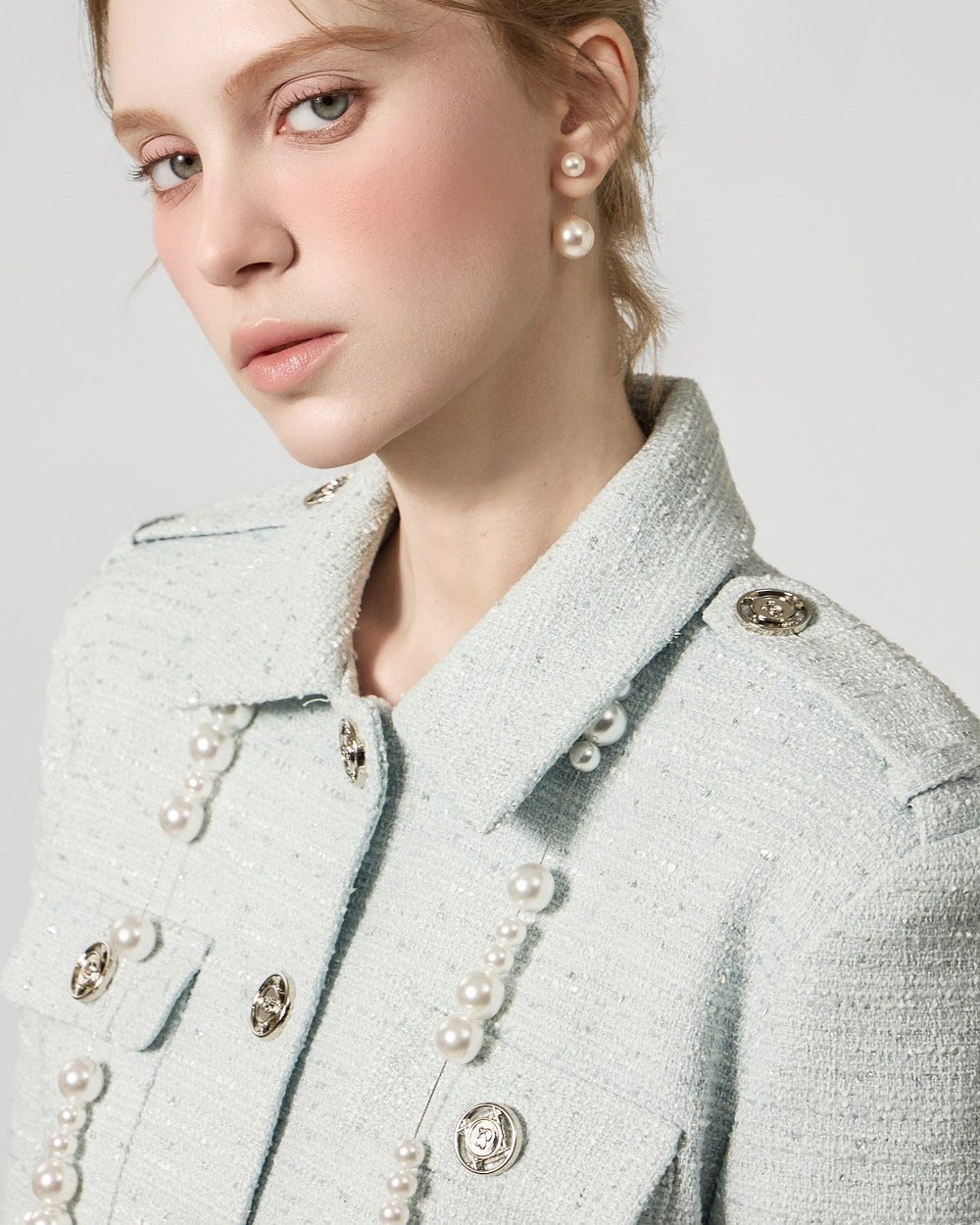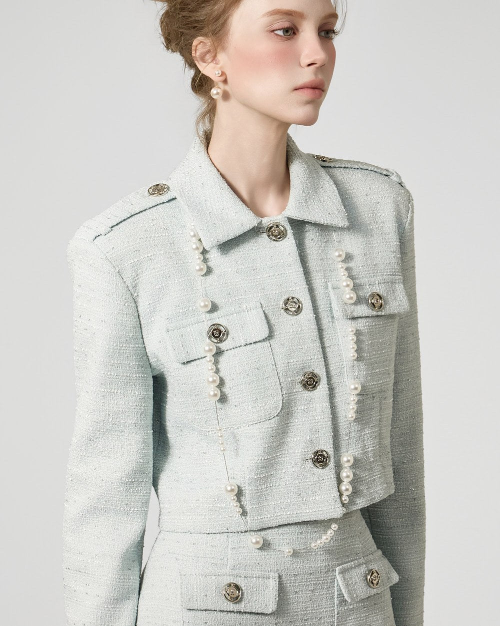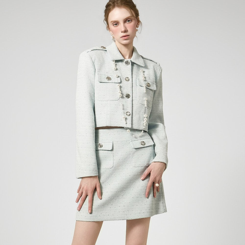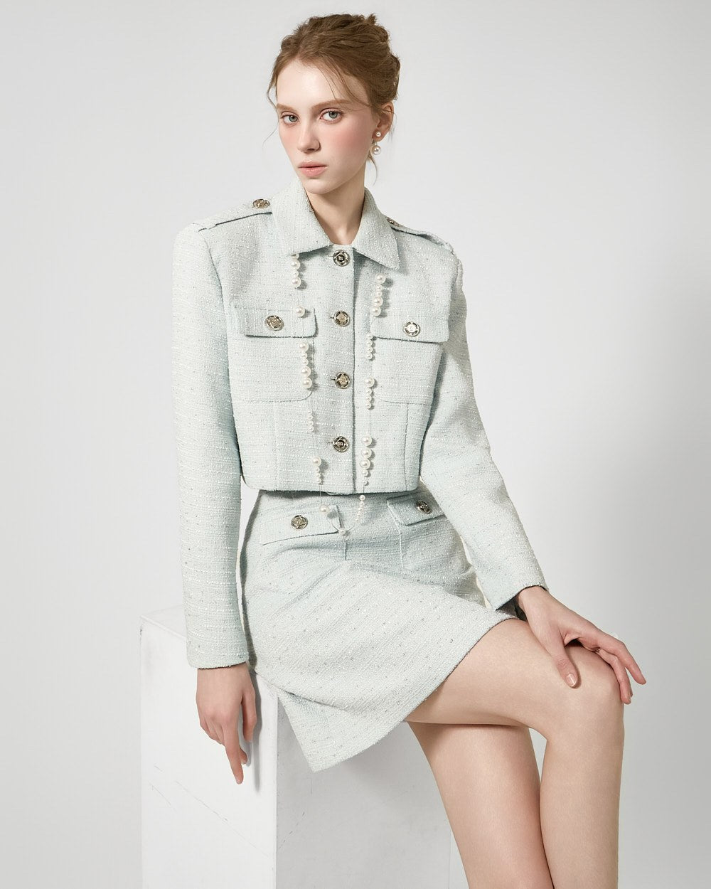 フェミニンな雰囲気のツイードクロップドジャケットです。