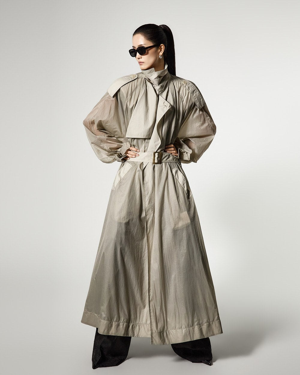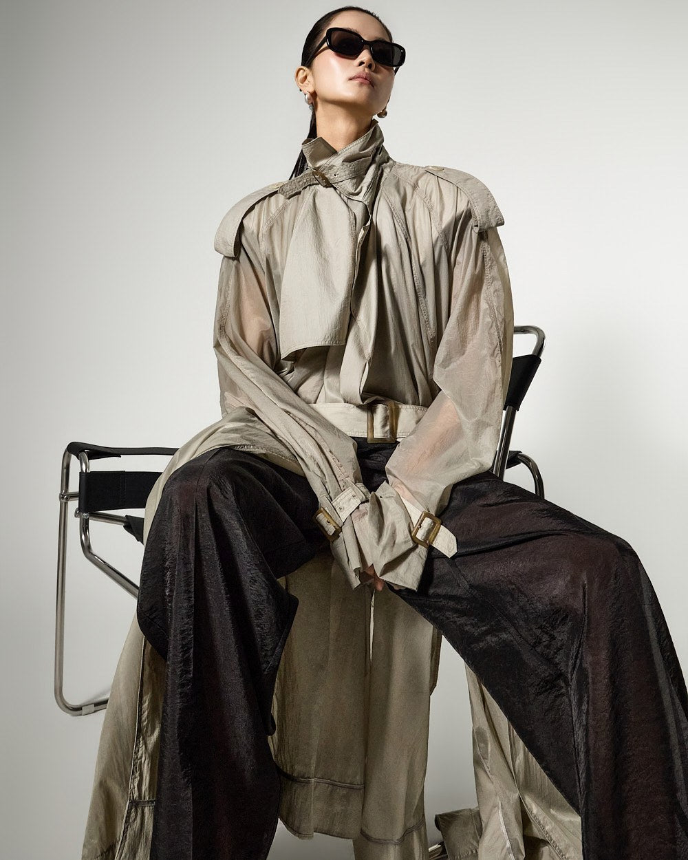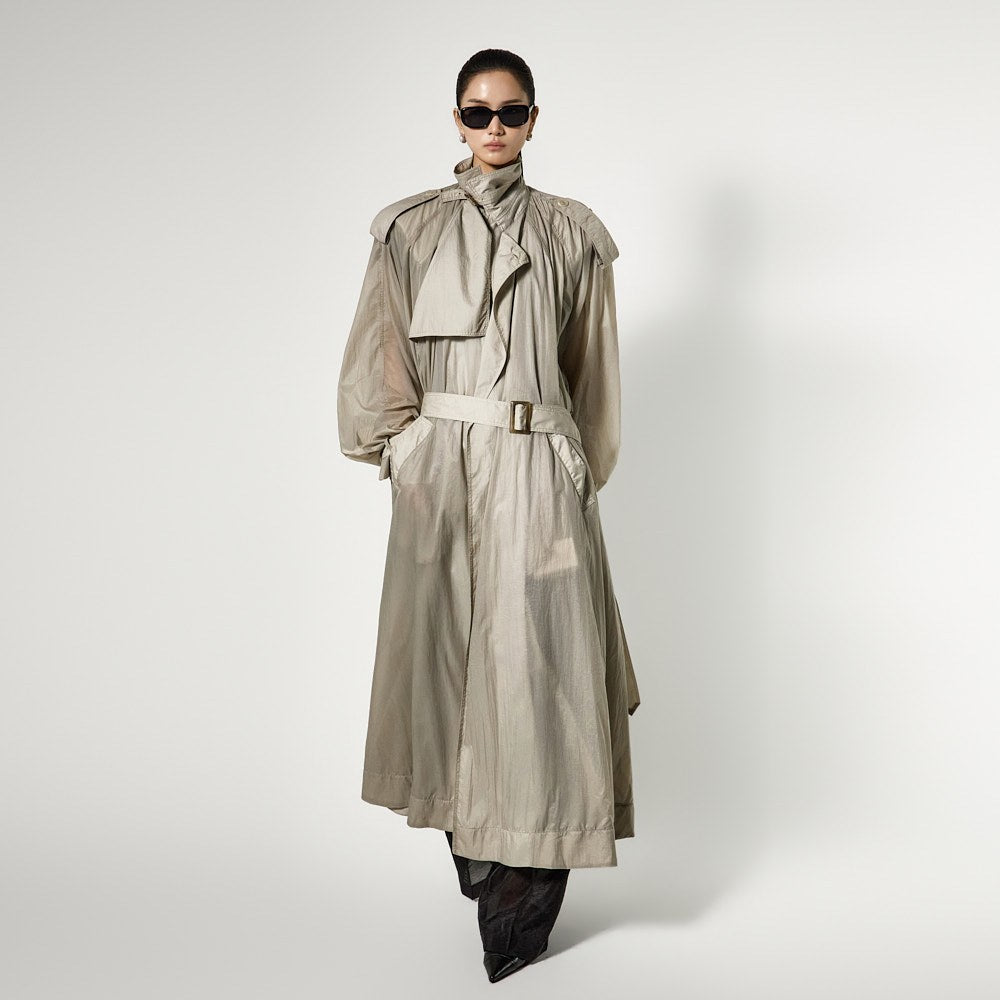 クロージャーのないベルト付きで、様々なシルエットのスタイリングが可能で、