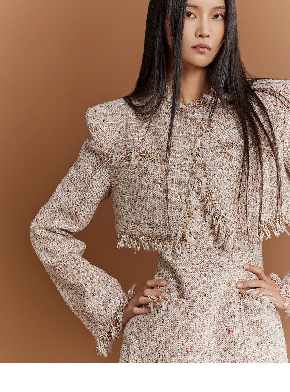フェミニンなムードを醸し出すツイードジャケットが登場。