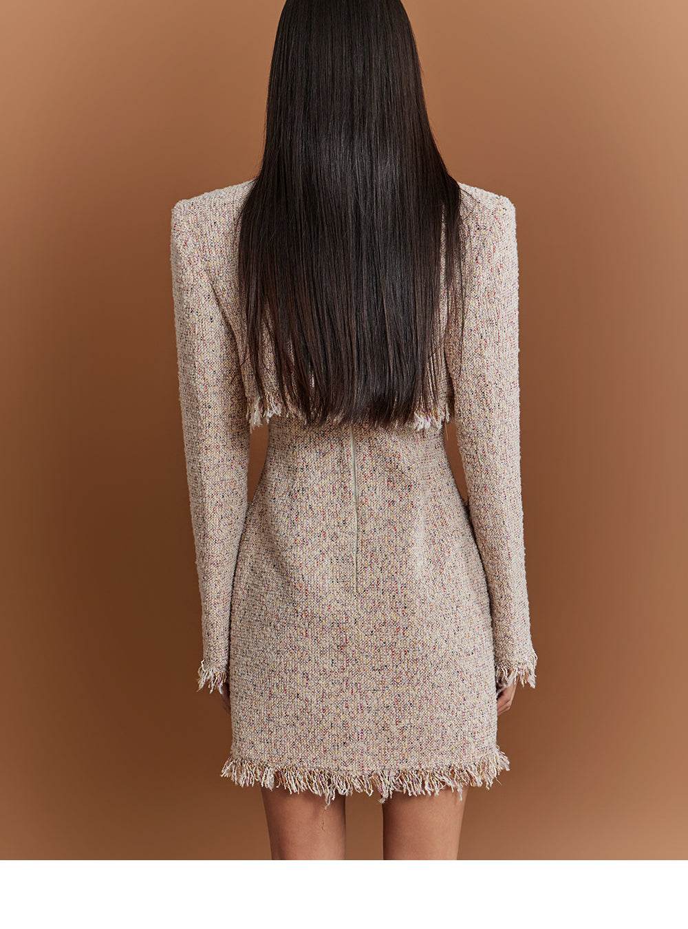 J9276 ツイードフリンジクロップパッドシングルジャケット