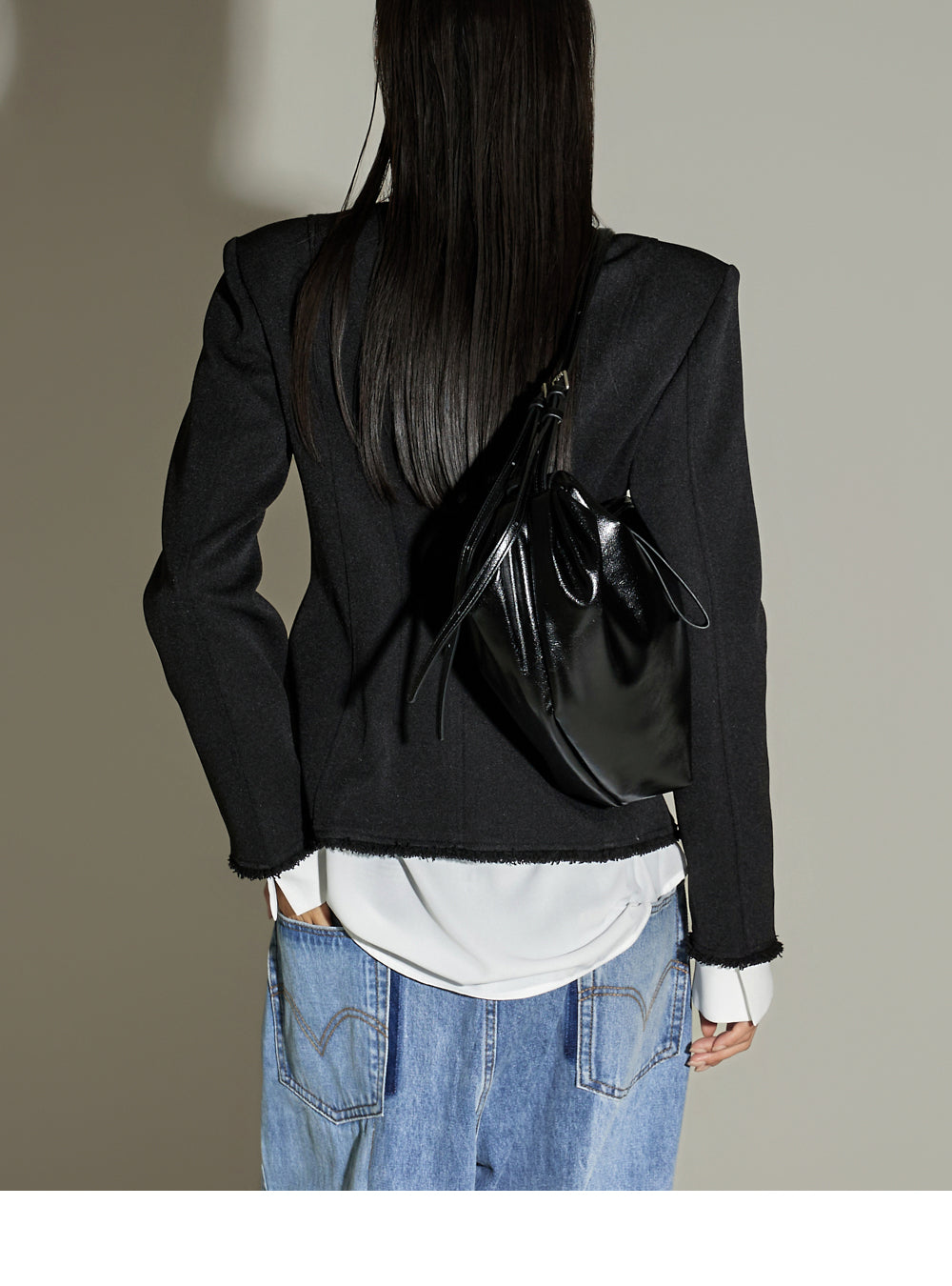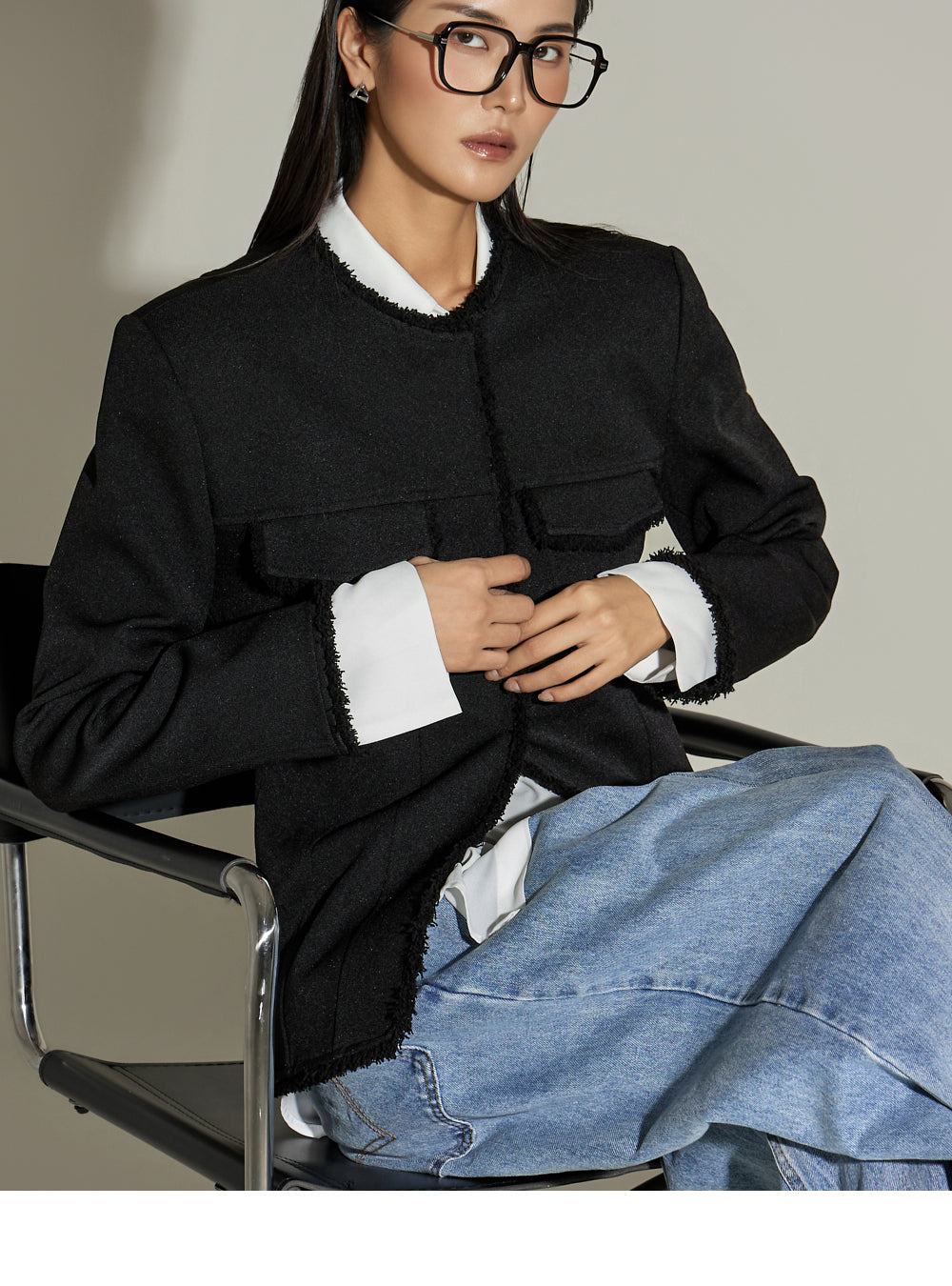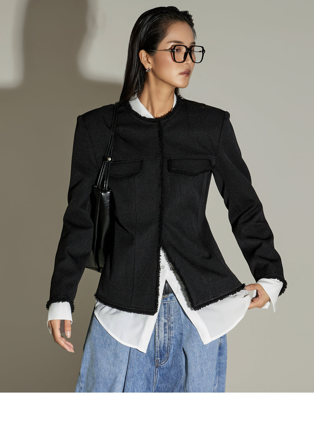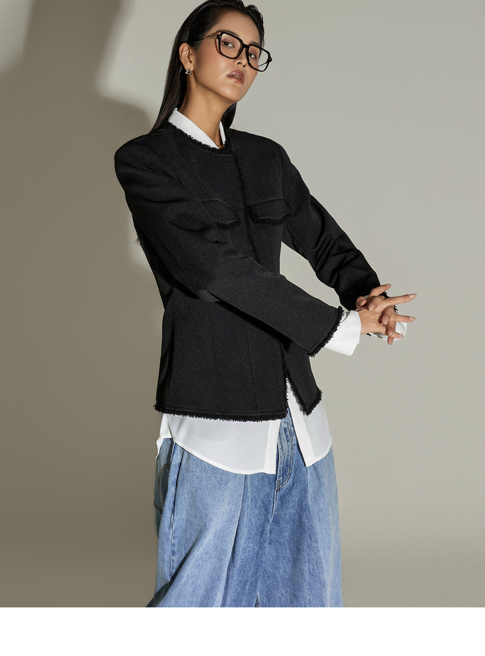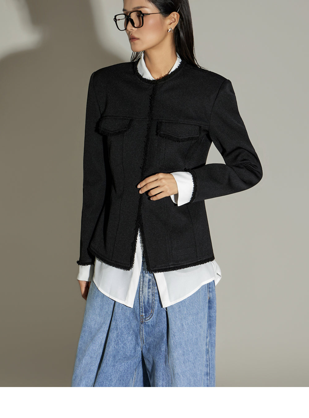This fringe pintuck jacket exudes a casual vibe.