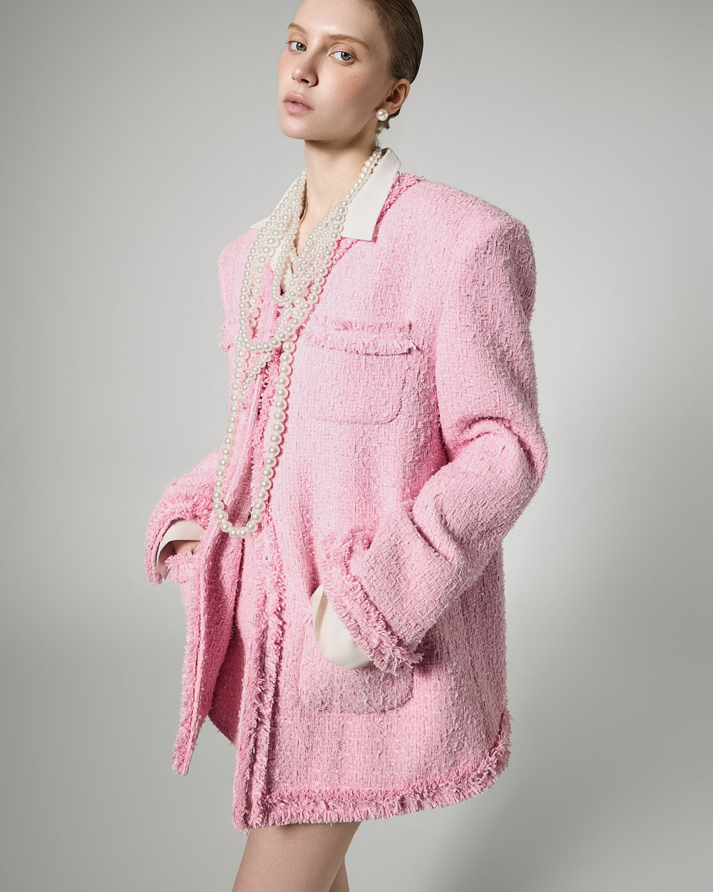 The oversized fit, which falls neatly from the shoulders to the waist,