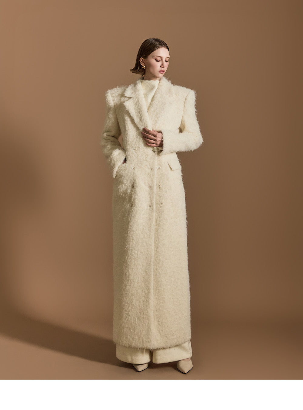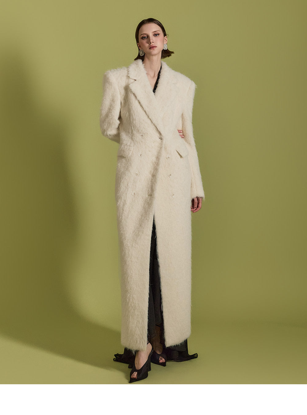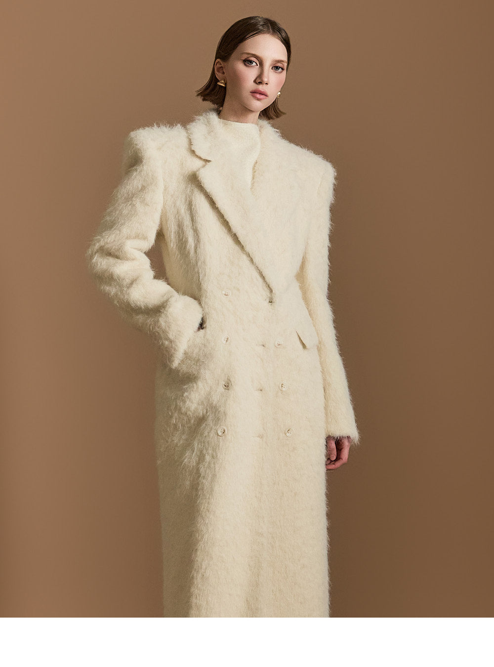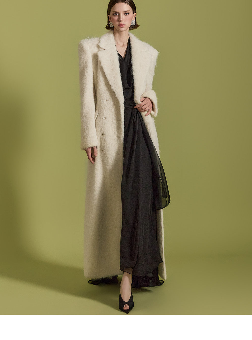 すっきりとしたラインのロングコートは、秋冬のスタイリッシュな装いにぴったりです。