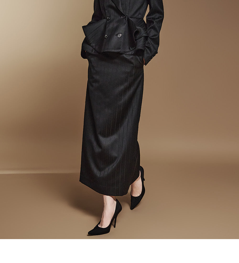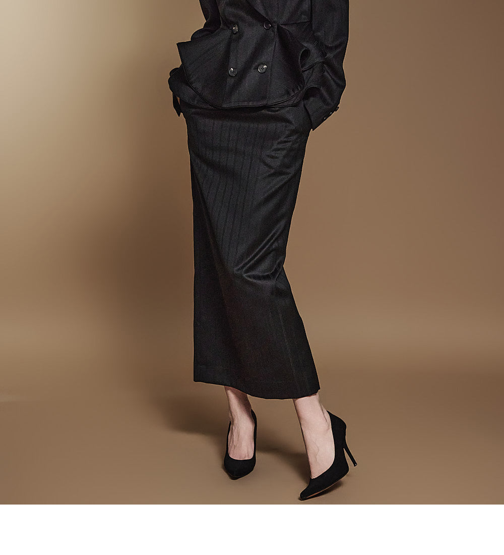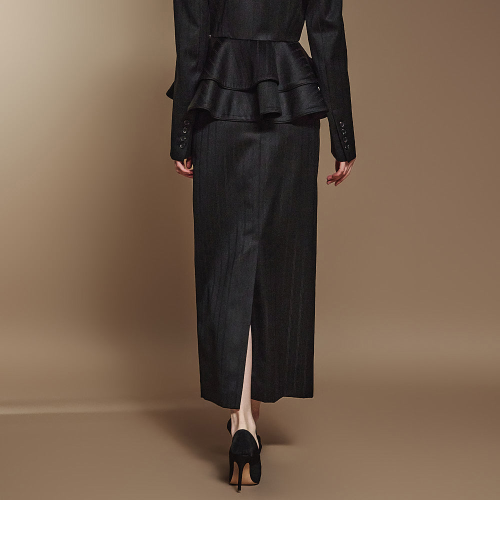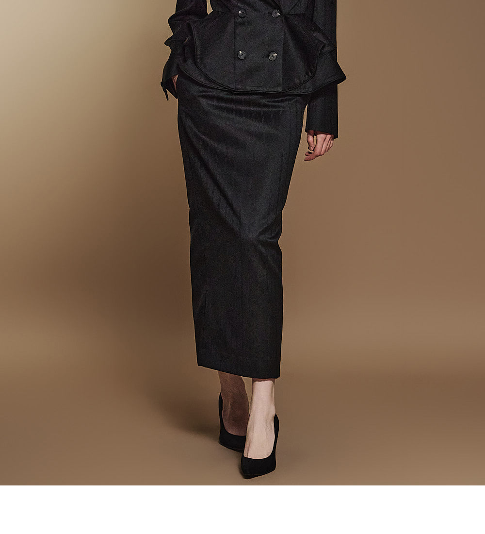 バックスリットのディテールが、動きやすさを高めながらスタイリッシュな印象を与えます。