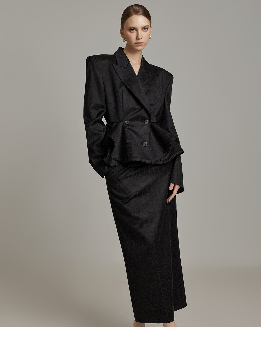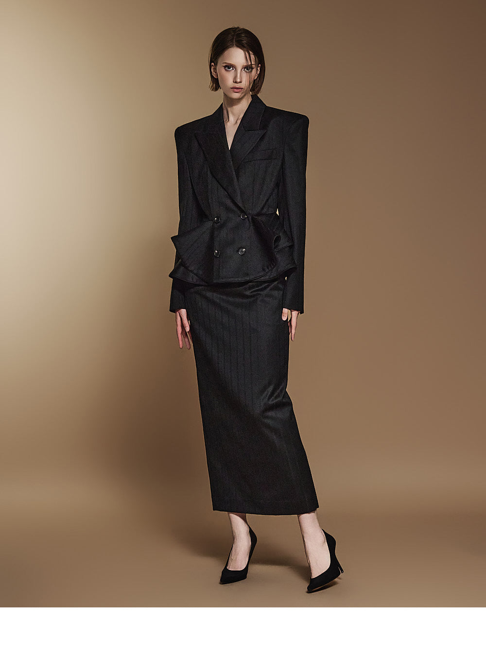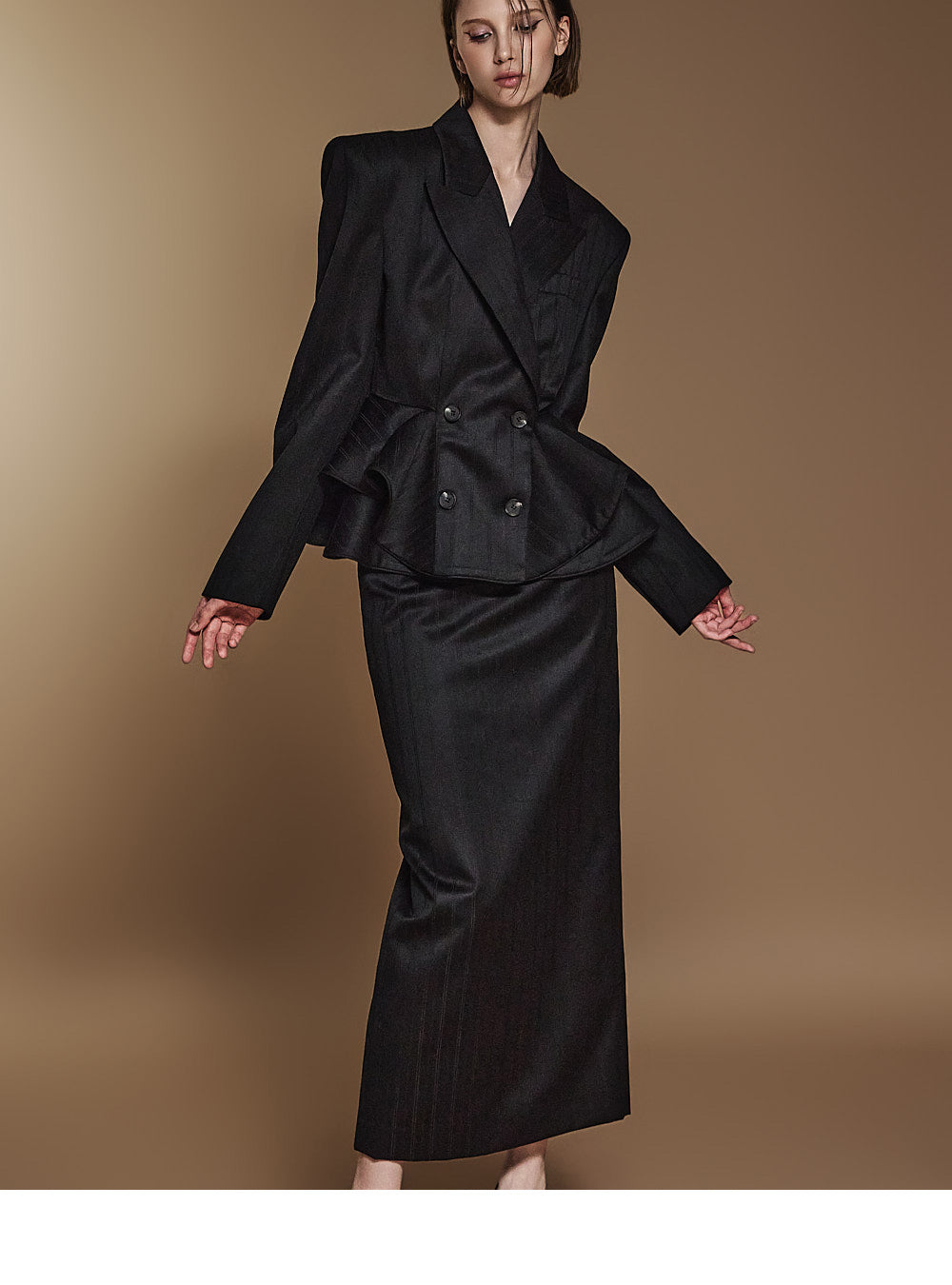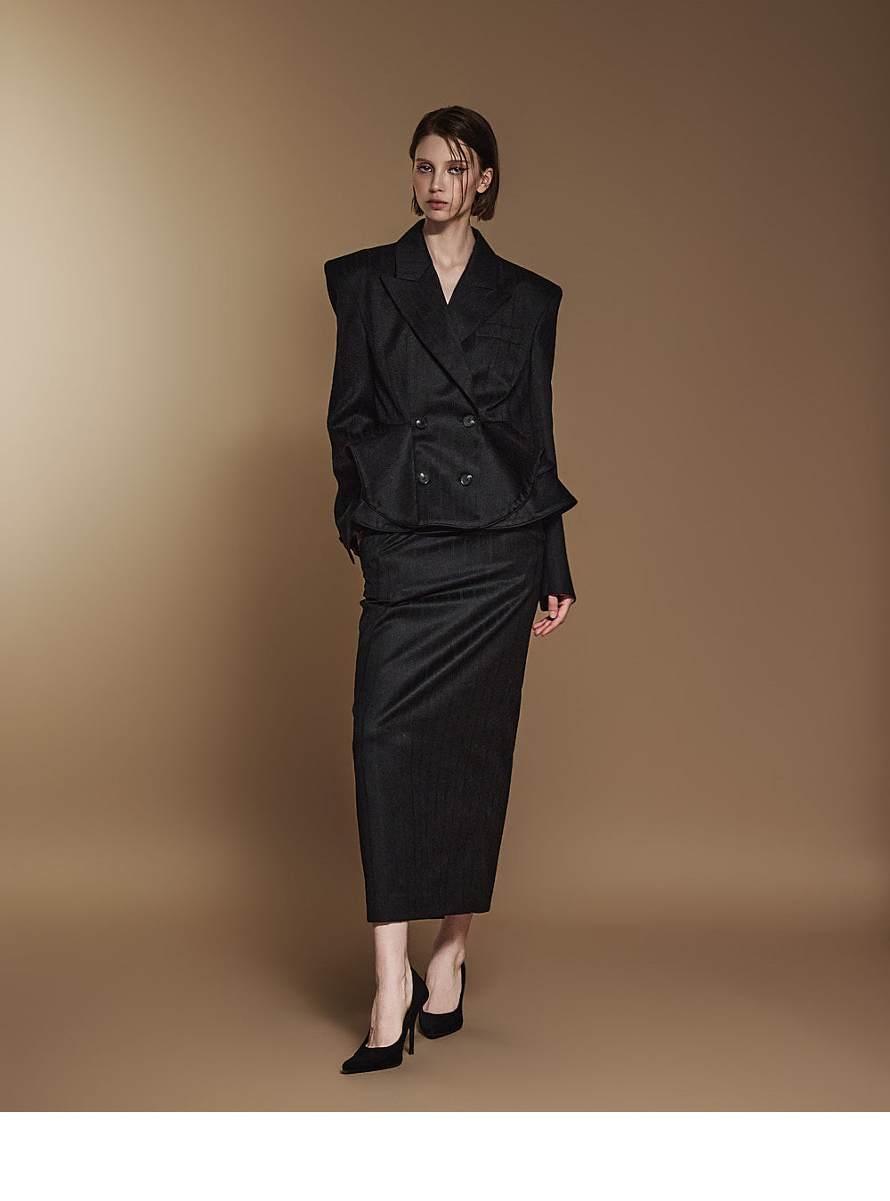 バックスリットのディテールが、動きやすさを高めながらスタイリッシュな印象を与えます。