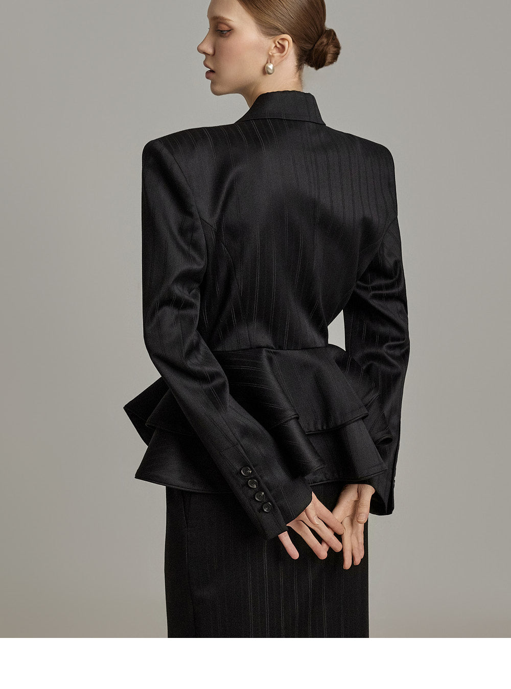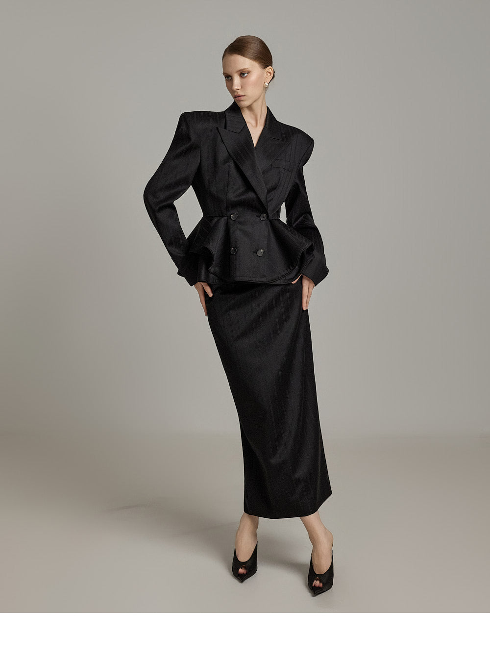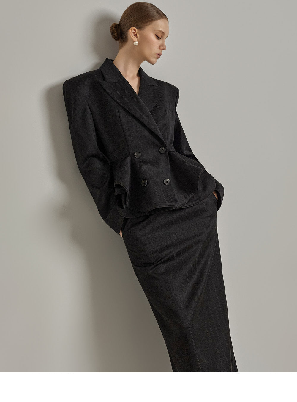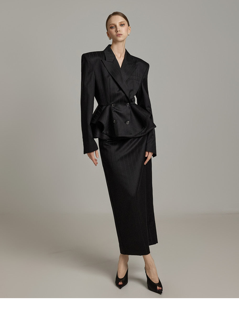 バックスリットのディテールが、動きやすさを高めながらスタイリッシュな印象を与えます。