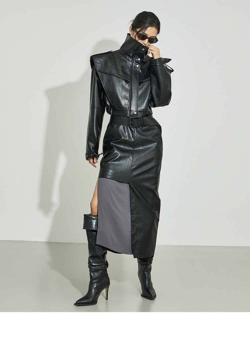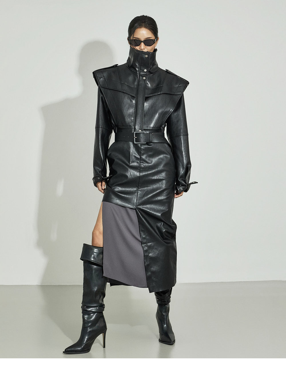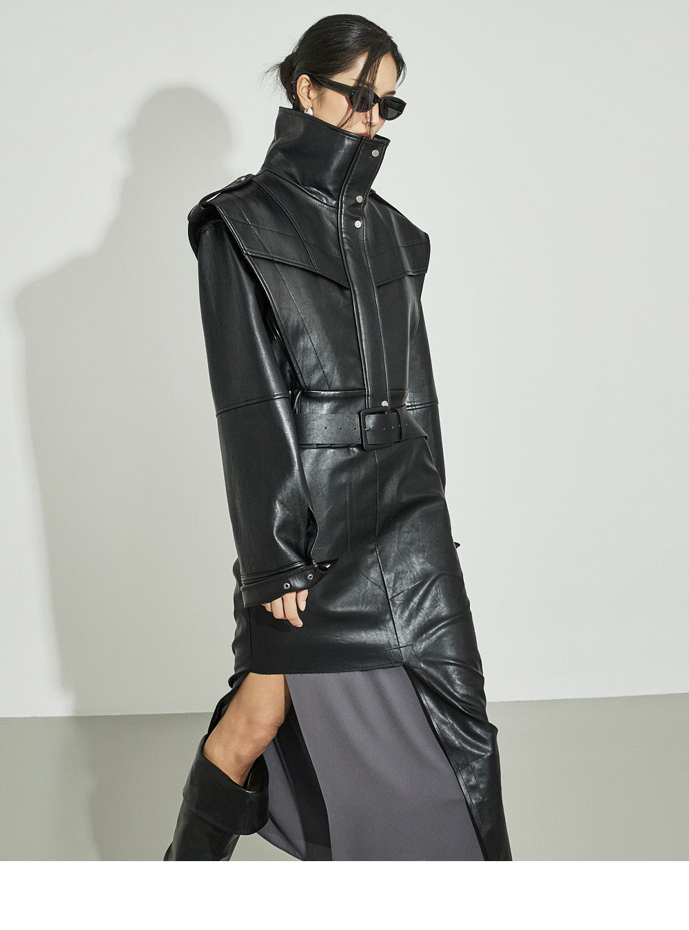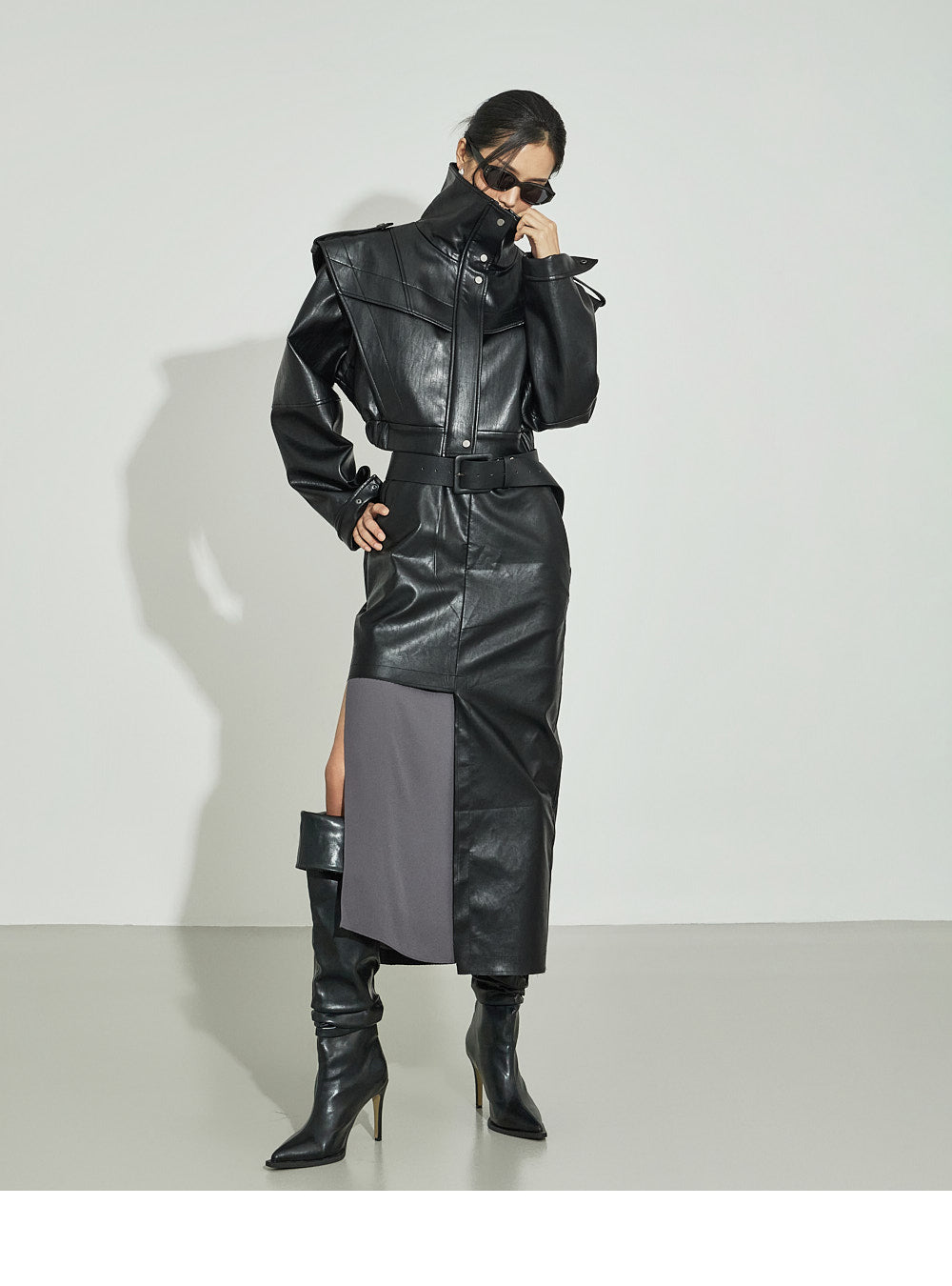 ハイネックがスタイリッシュなシルエットを引き立てます。