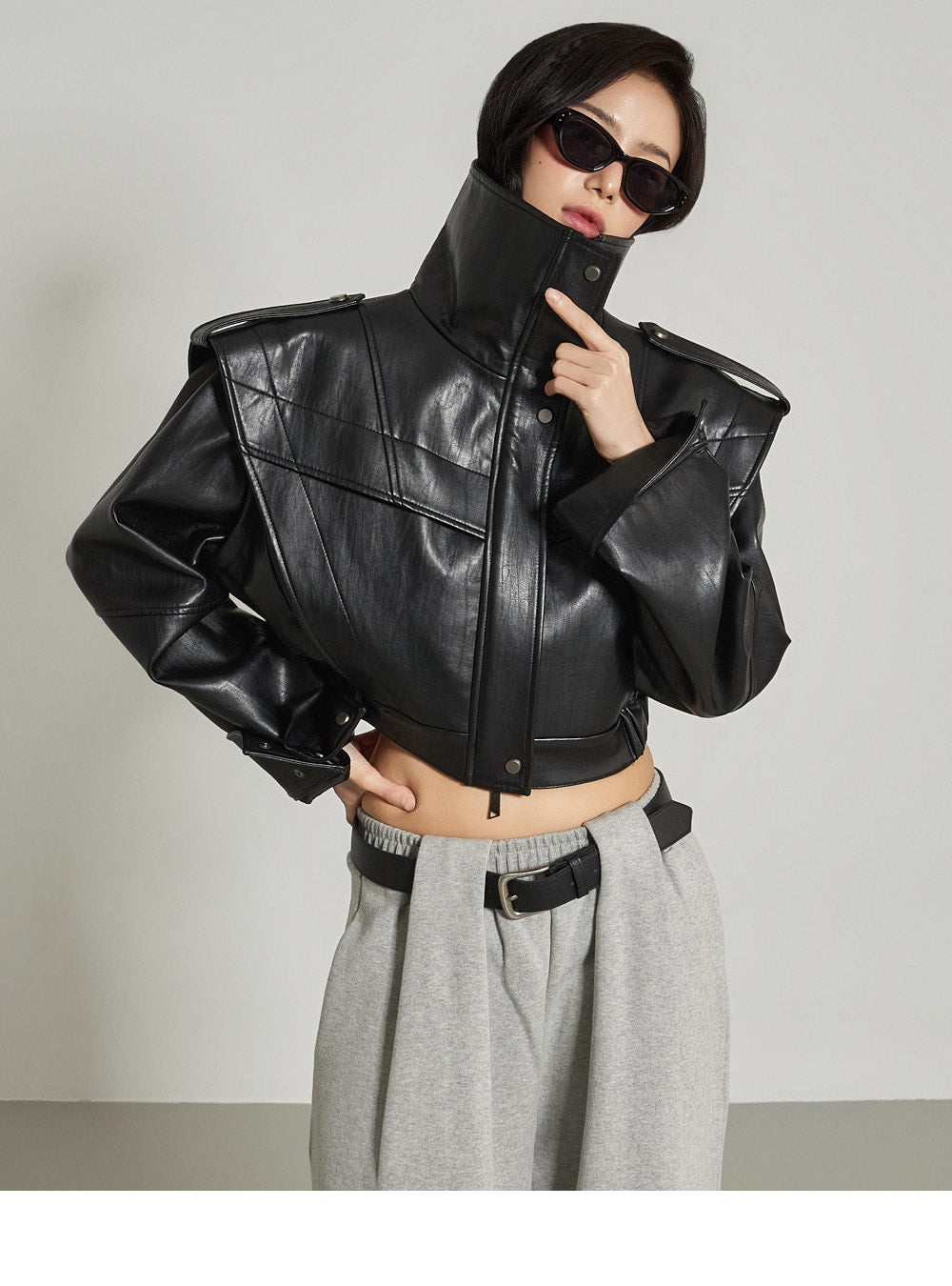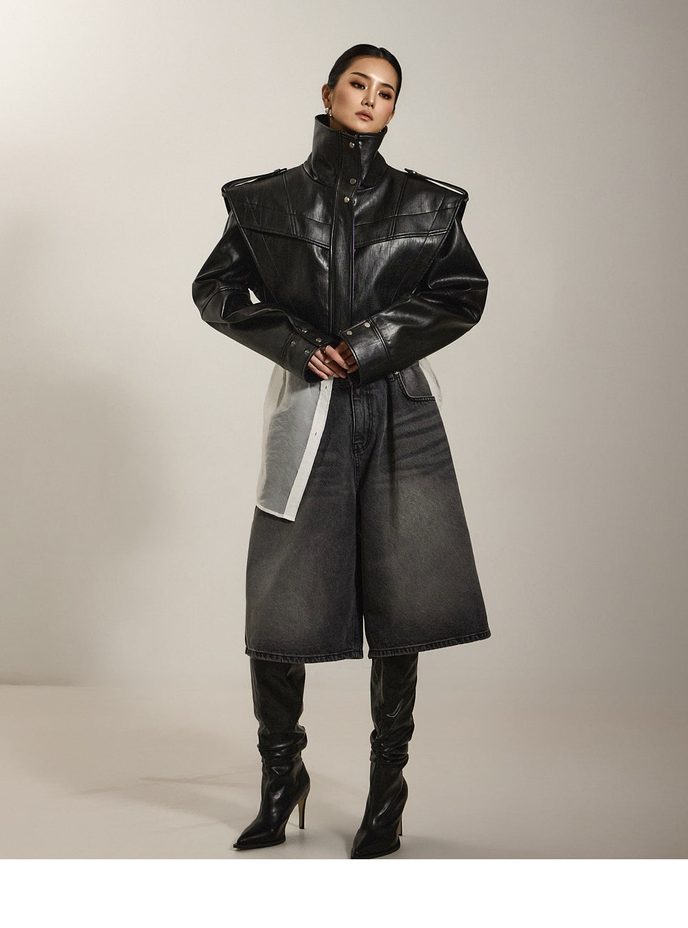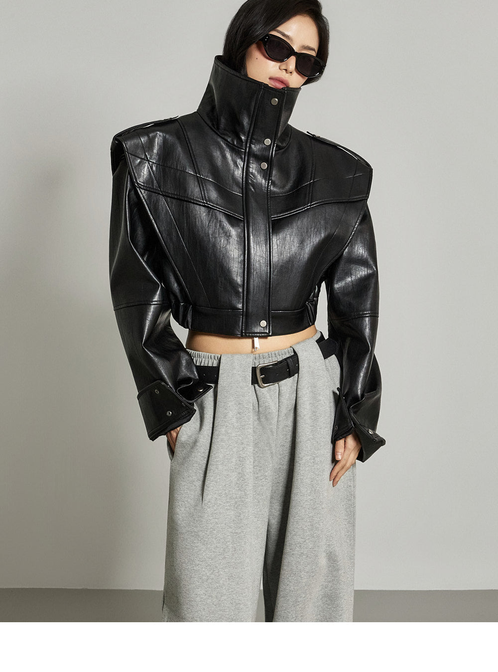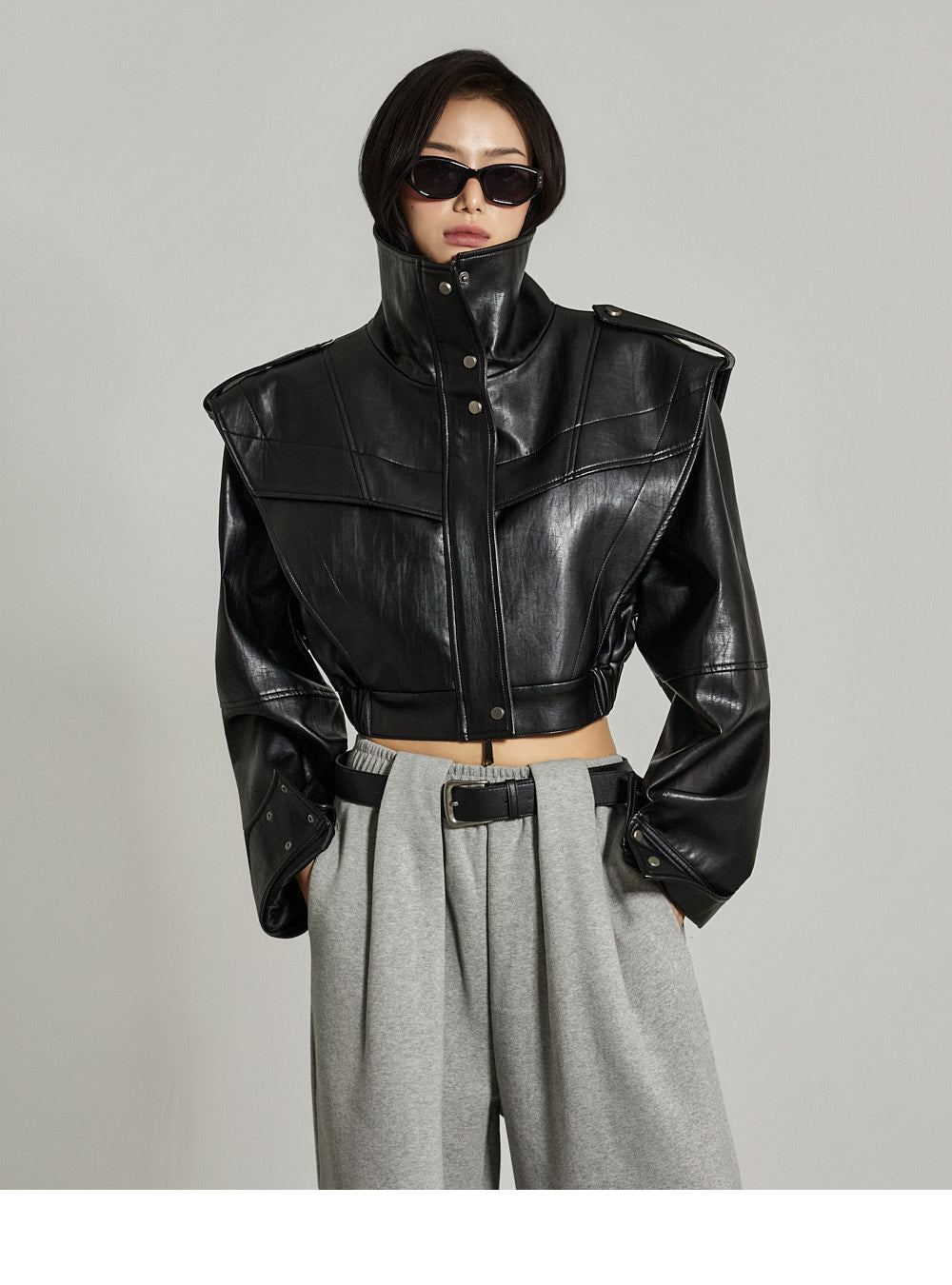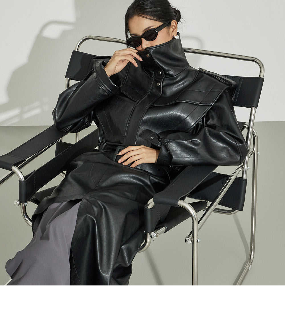 ハイネックがスタイリッシュなシルエットを引き立てます。