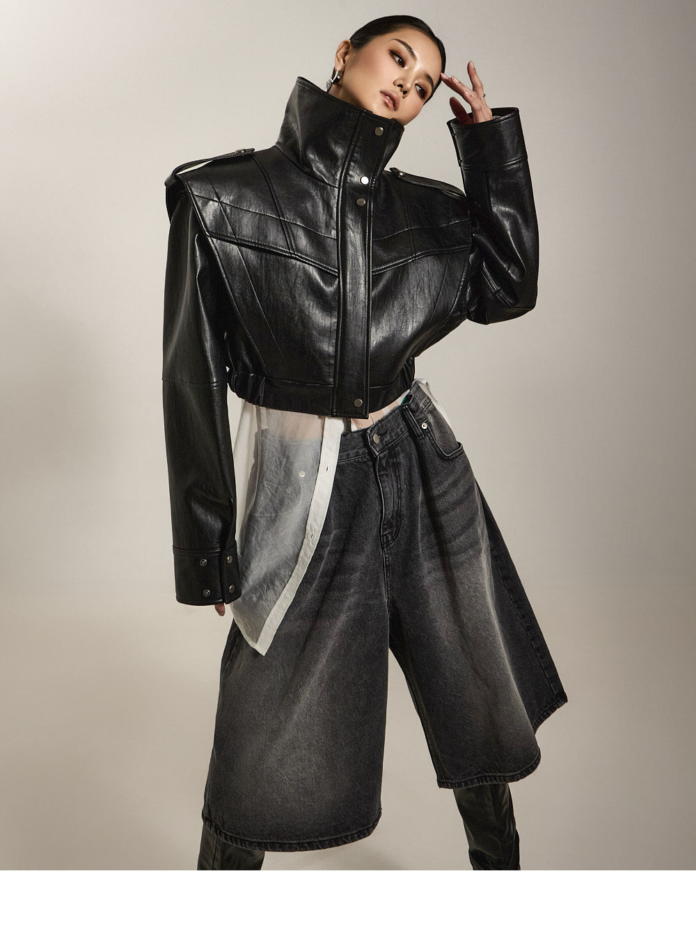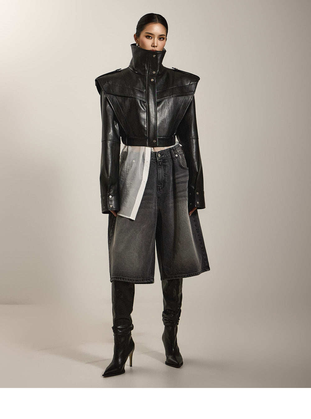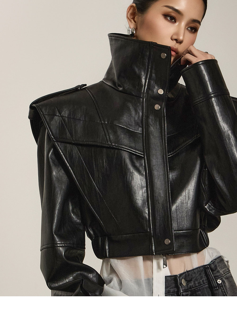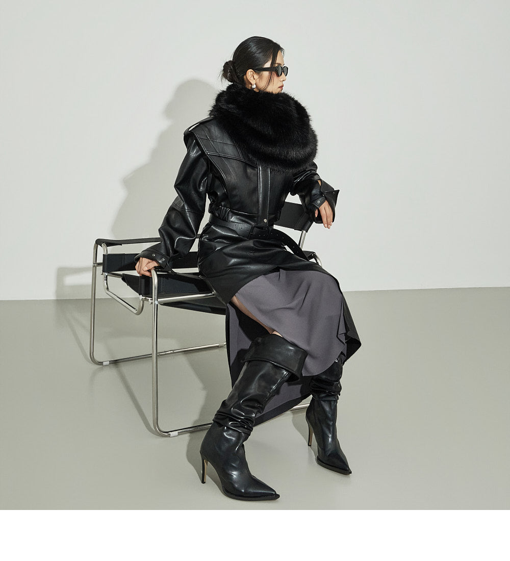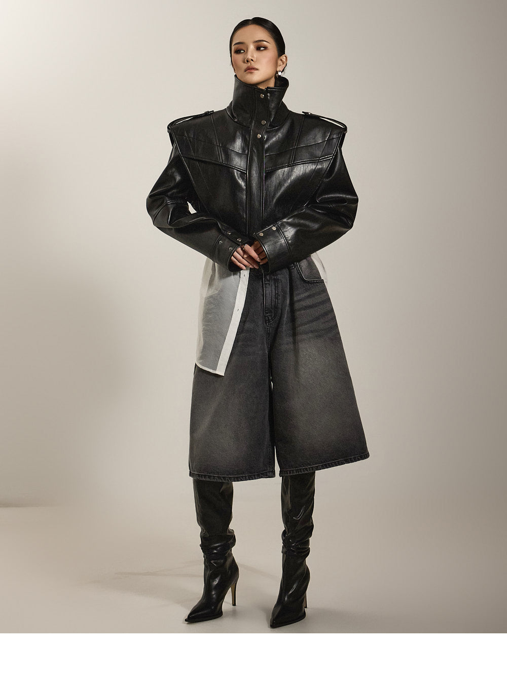 ハイネックがスタイリッシュなシルエットを引き立てます。