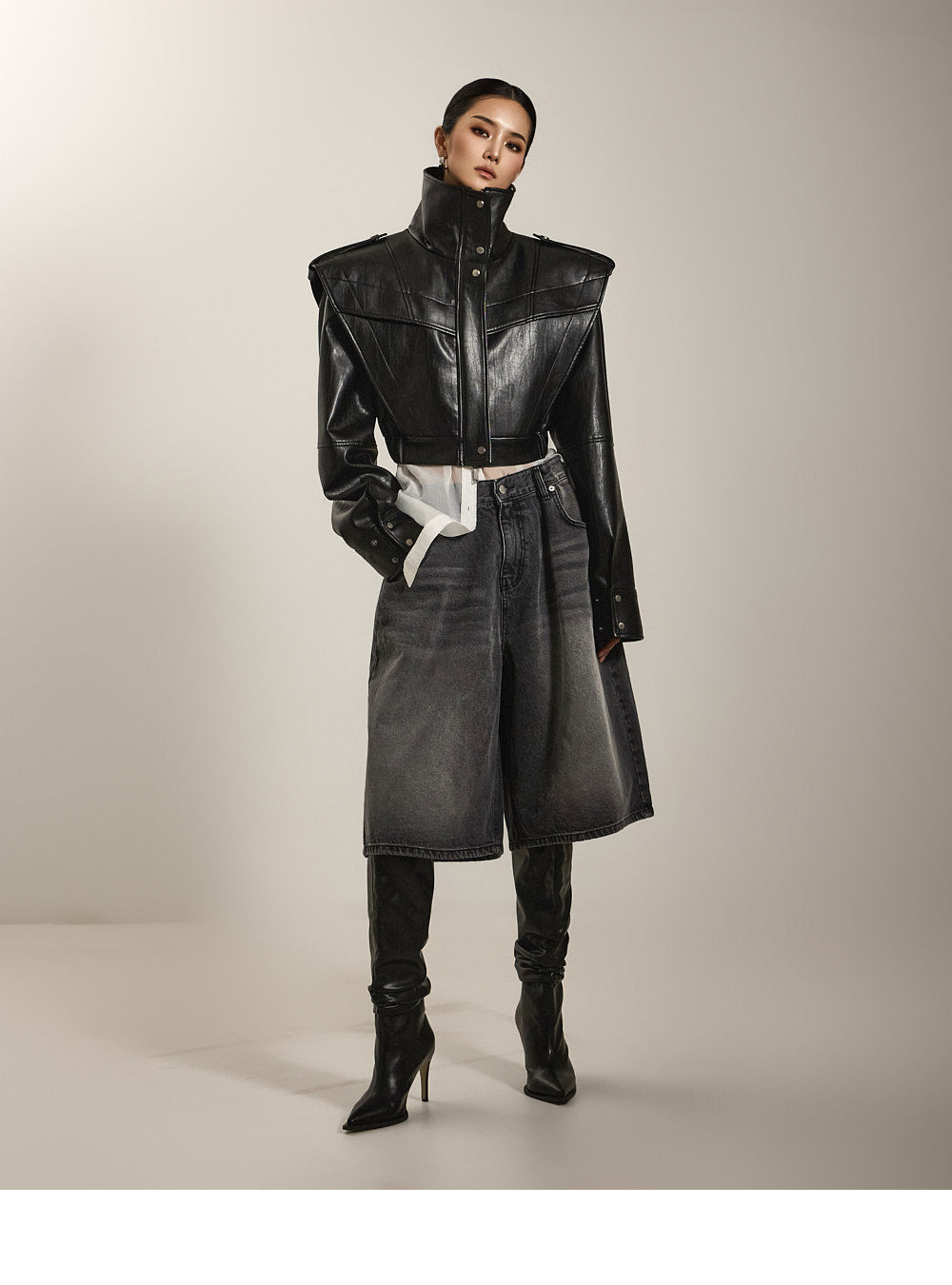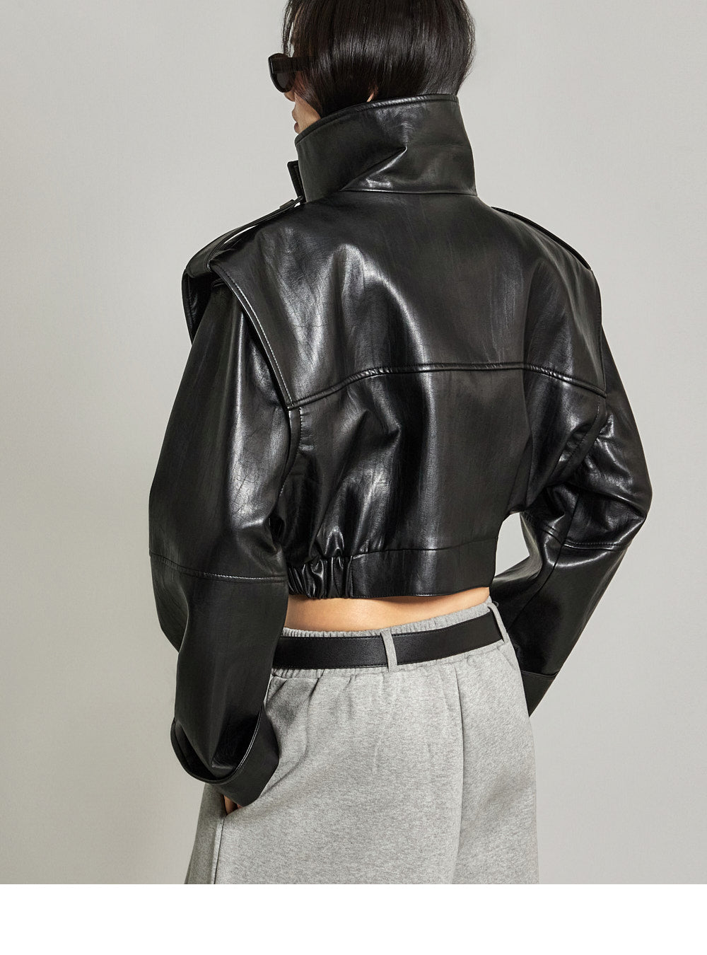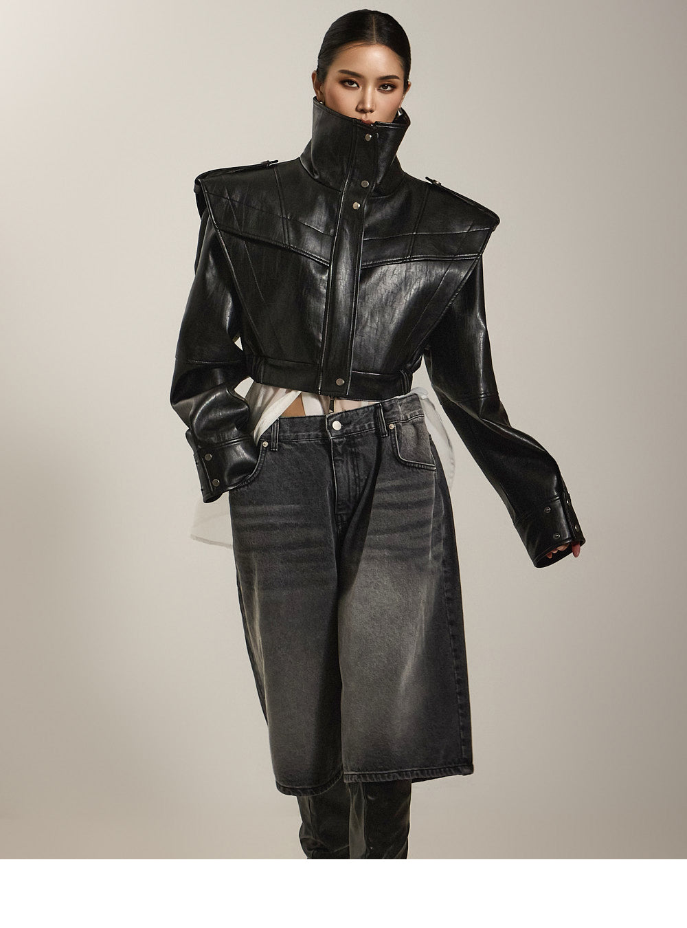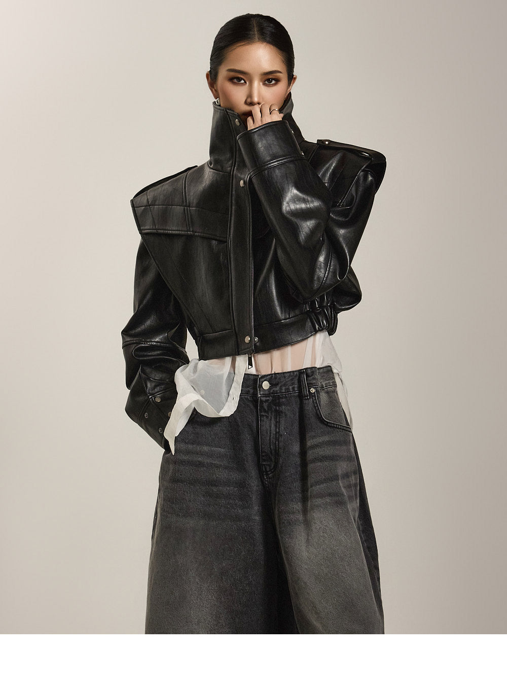 ハイネックがスタイリッシュなシルエットを引き立てます。