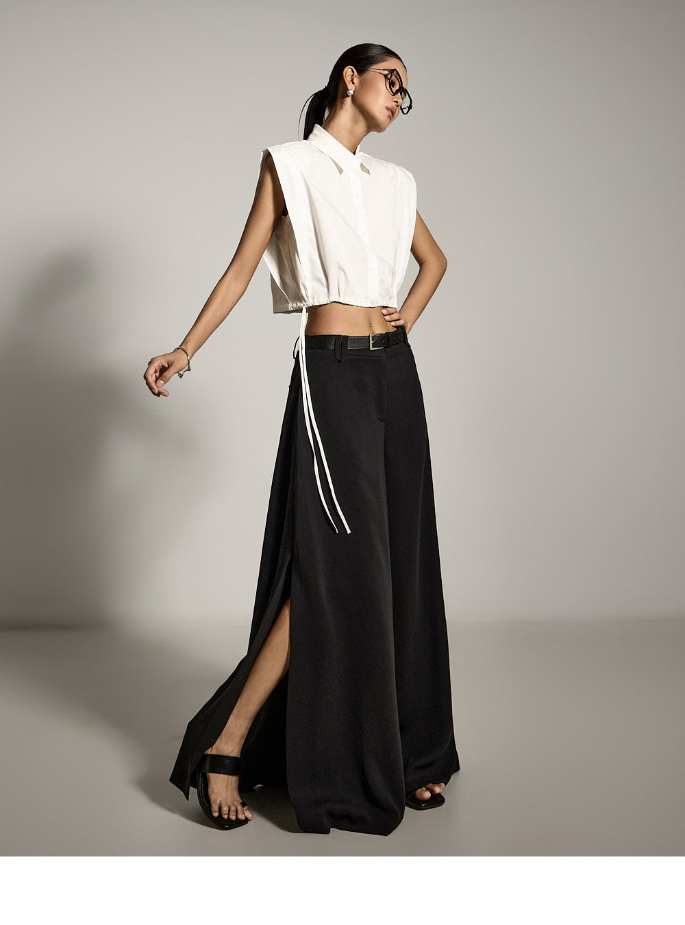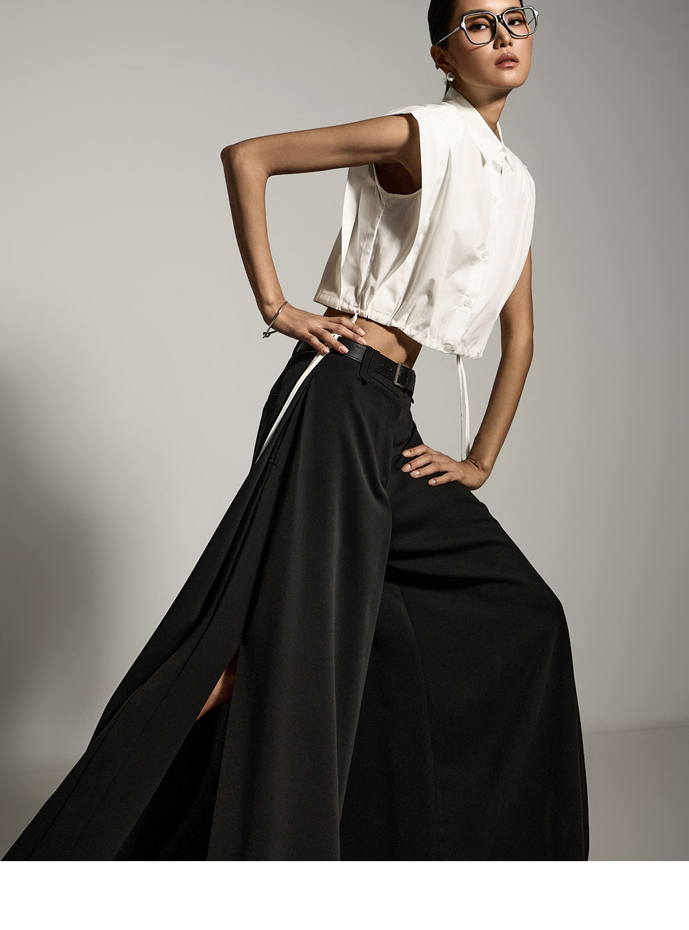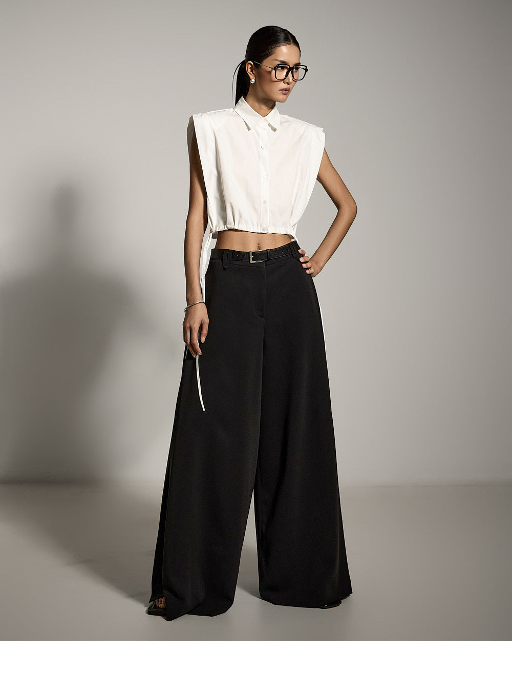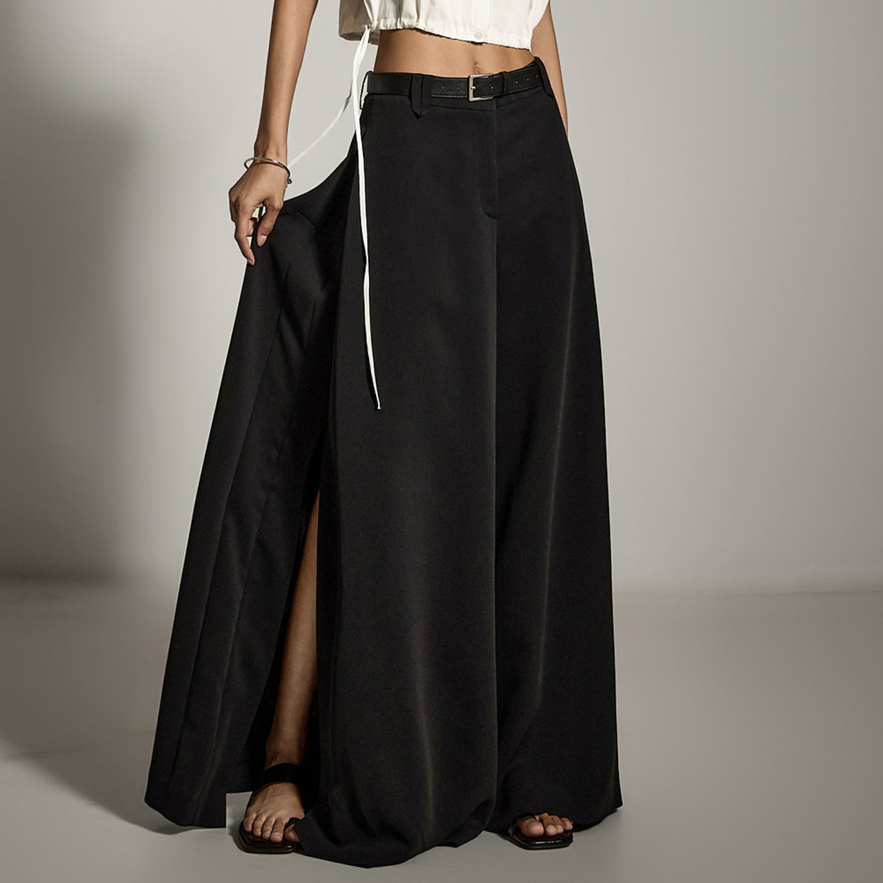 SとMサイズがあり、ワイドレッグフィットが特徴です。