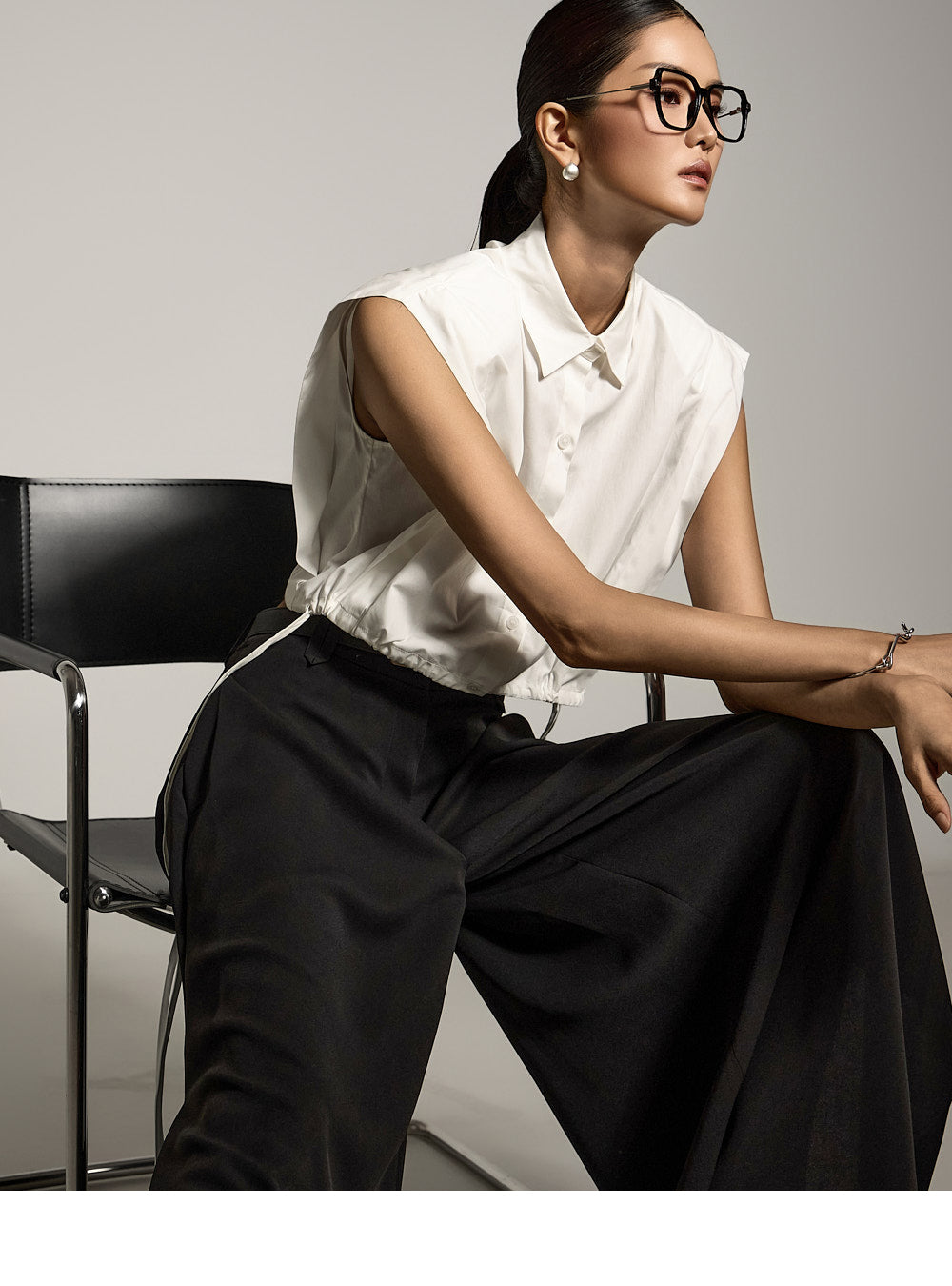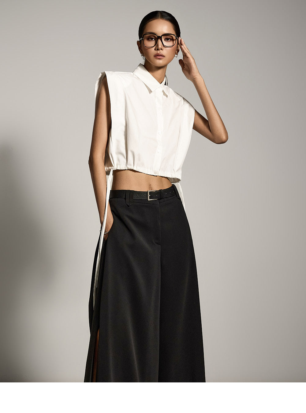 シャツ、ニット、ブラウスなどと合わせやすい万能アイテム。
