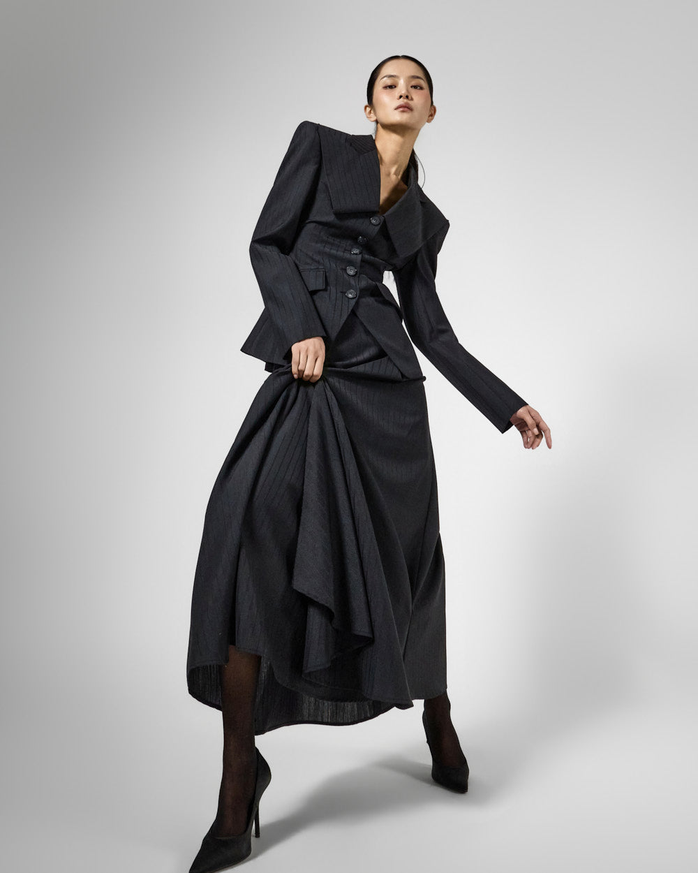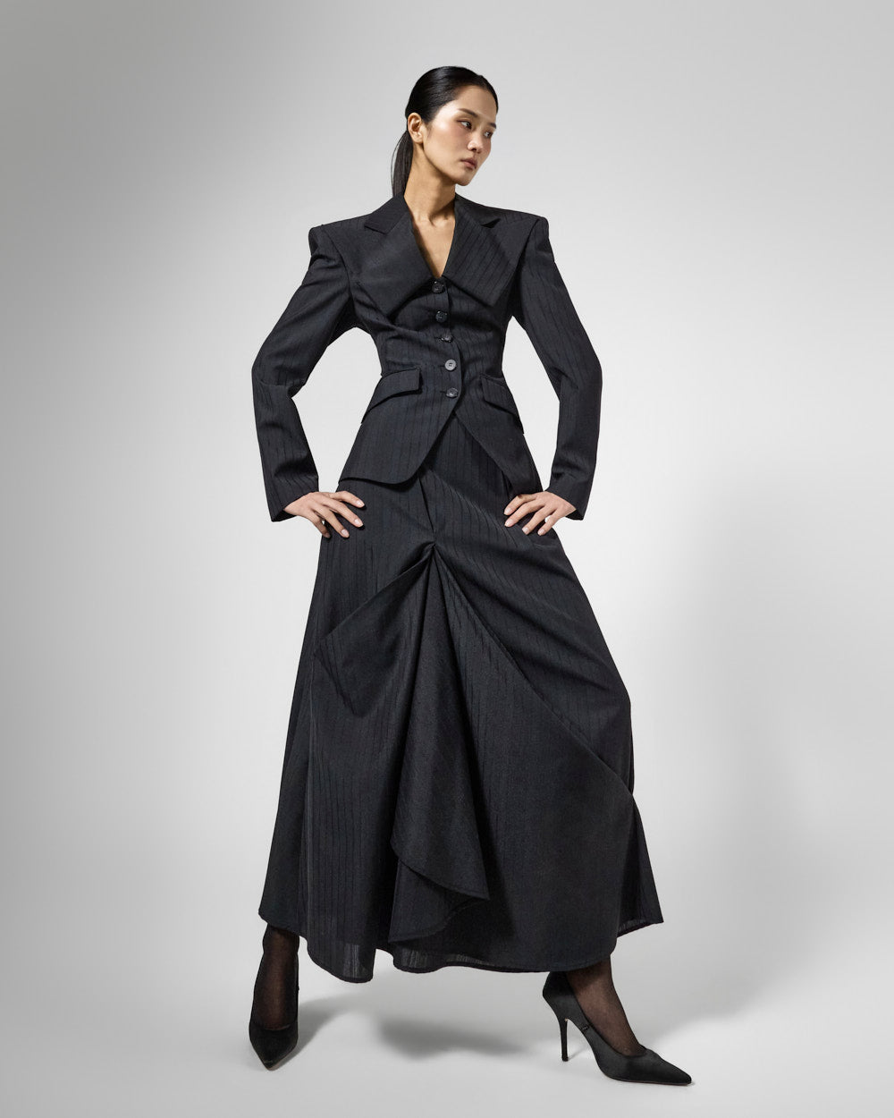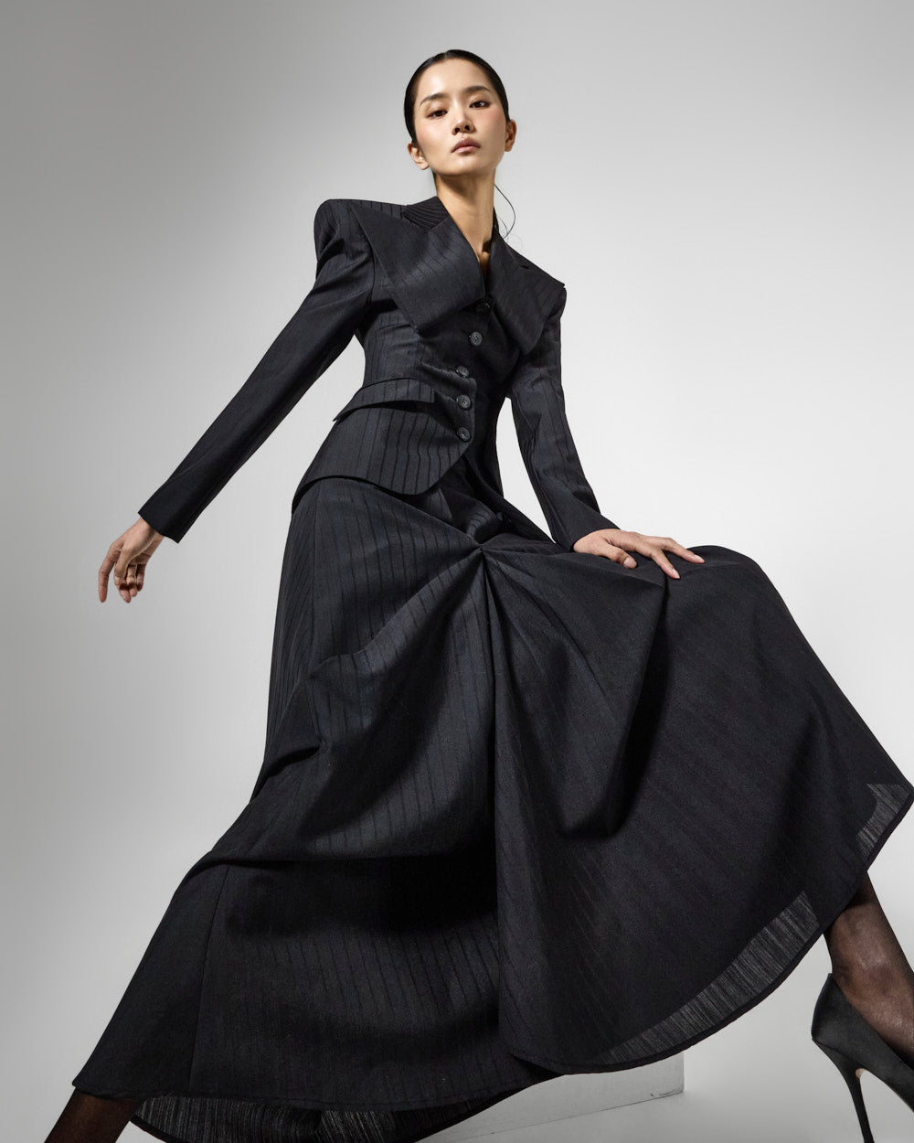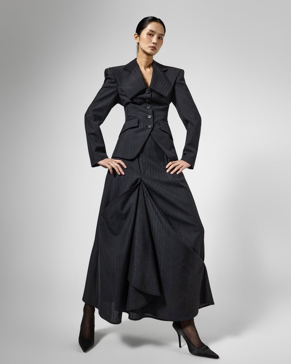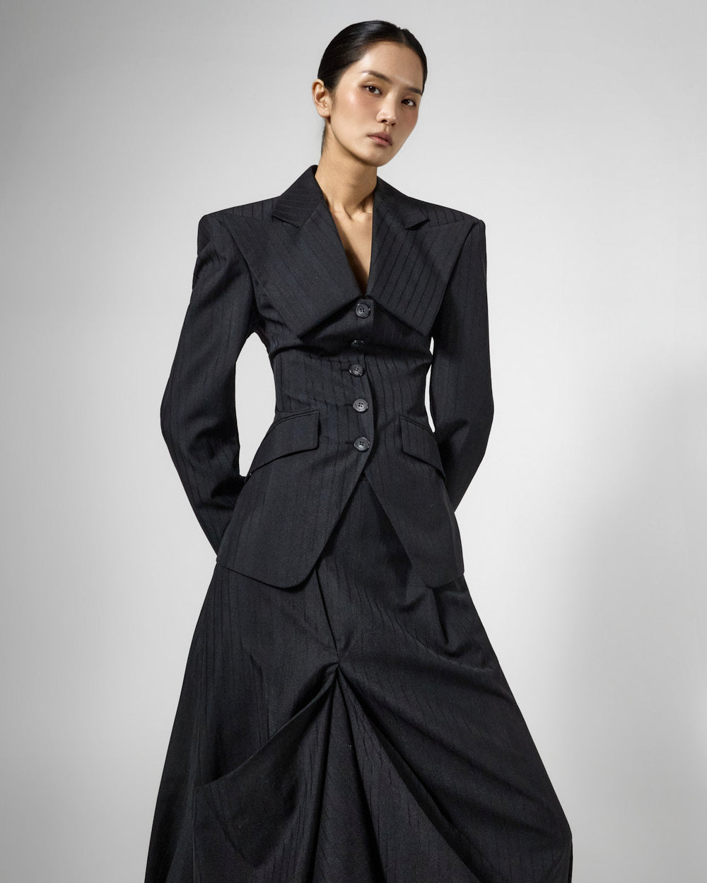 ストライプの繊細な光沢が洗練された雰囲気を醸し出します。
