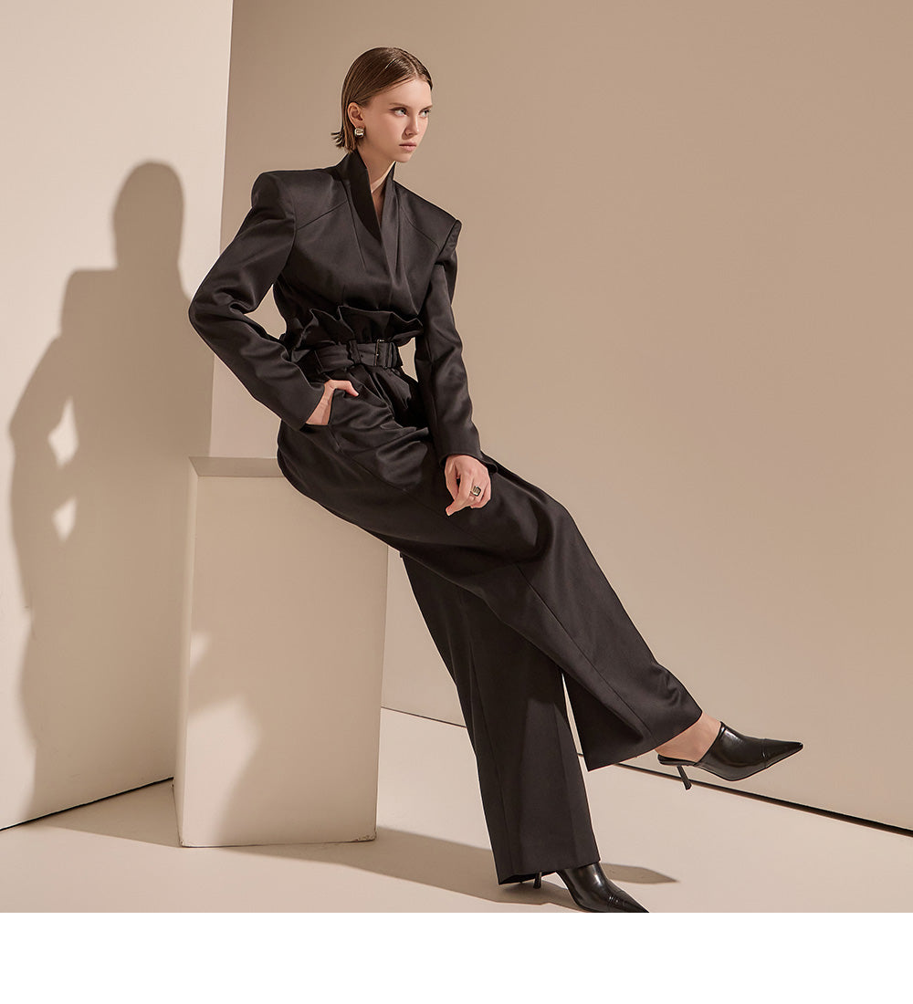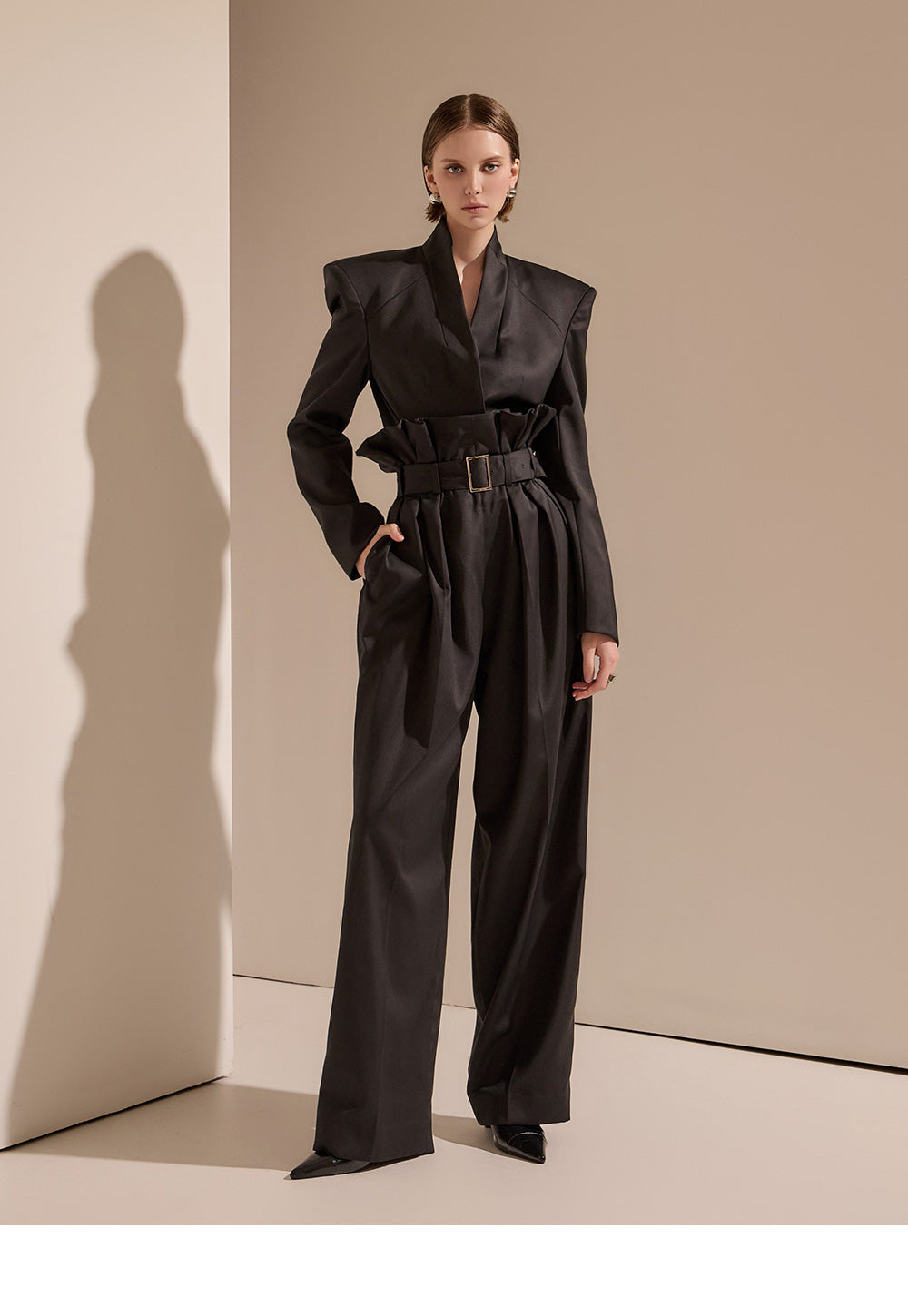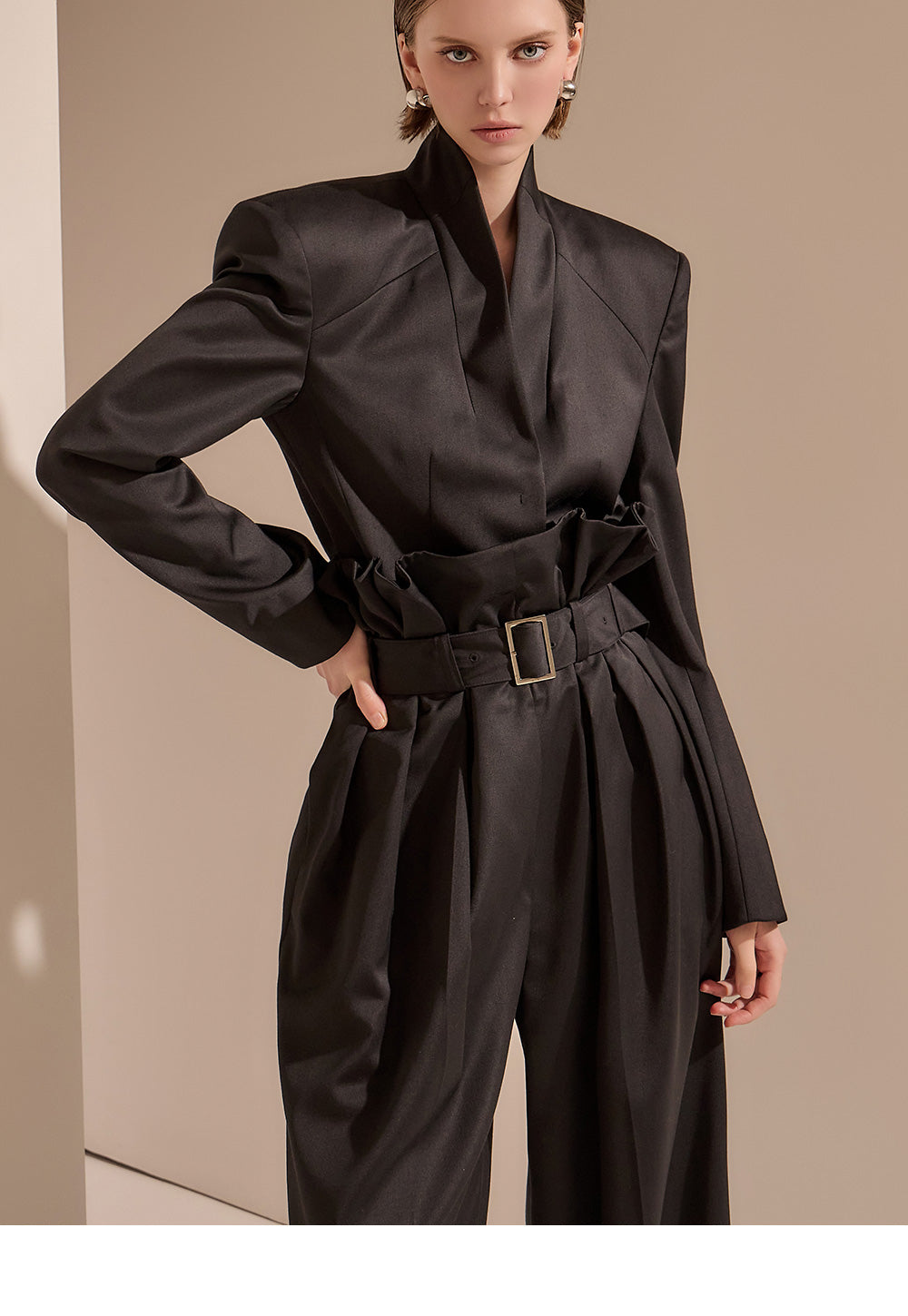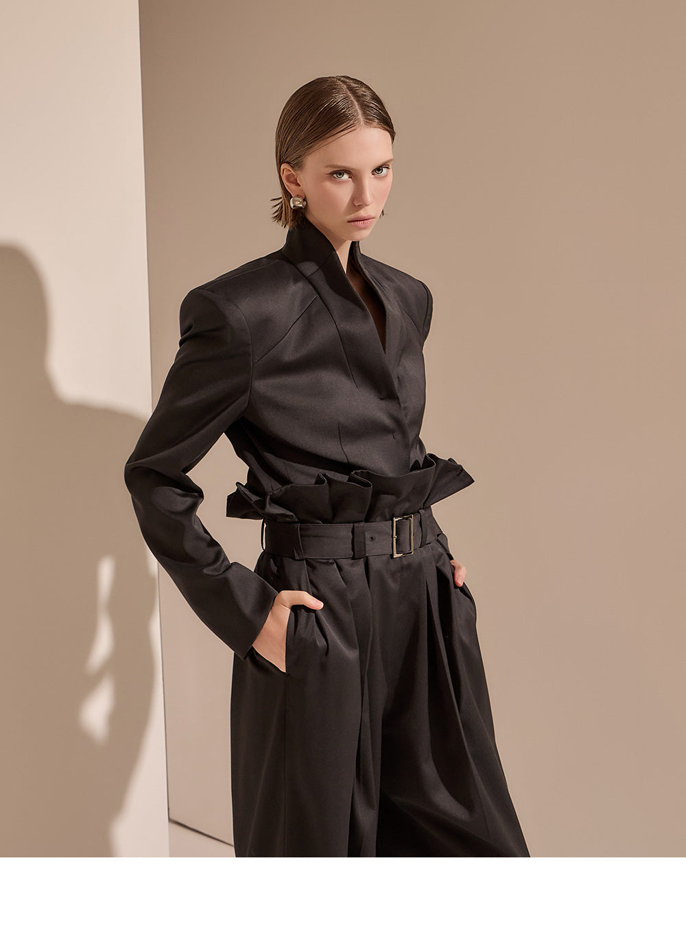 「ピンタックパッドクロップシングルジャケットスーツセット」