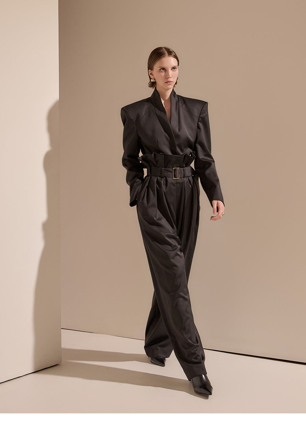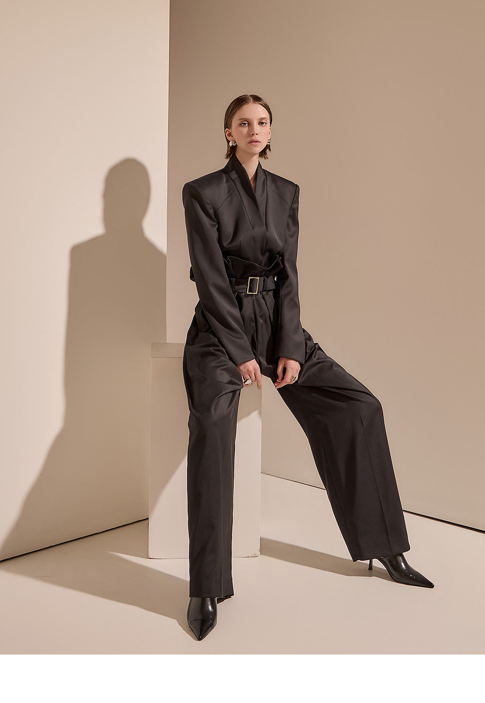 シックなショルダーラインがすっきりとしたシルエットを演出します。