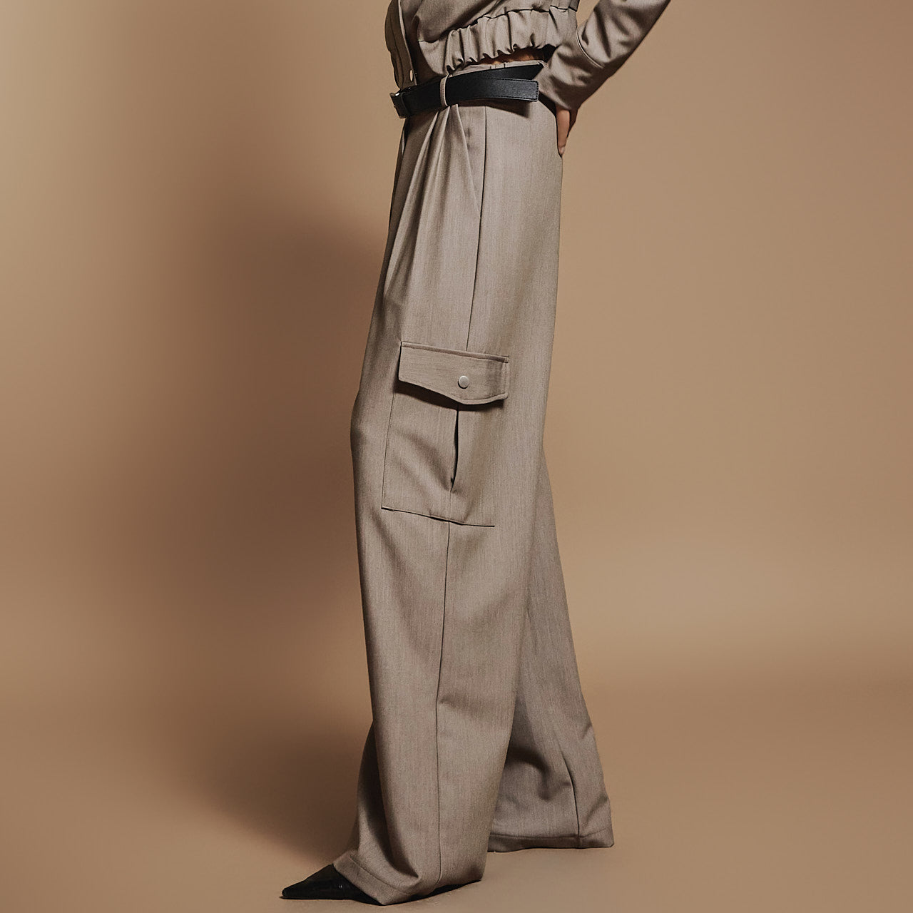 フロントのピンタックディテールがボリューム感のある装いを演出します。