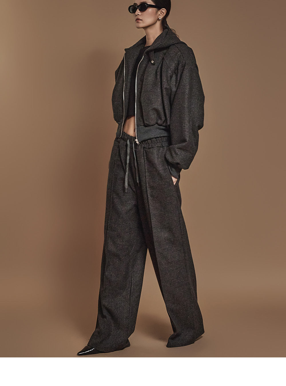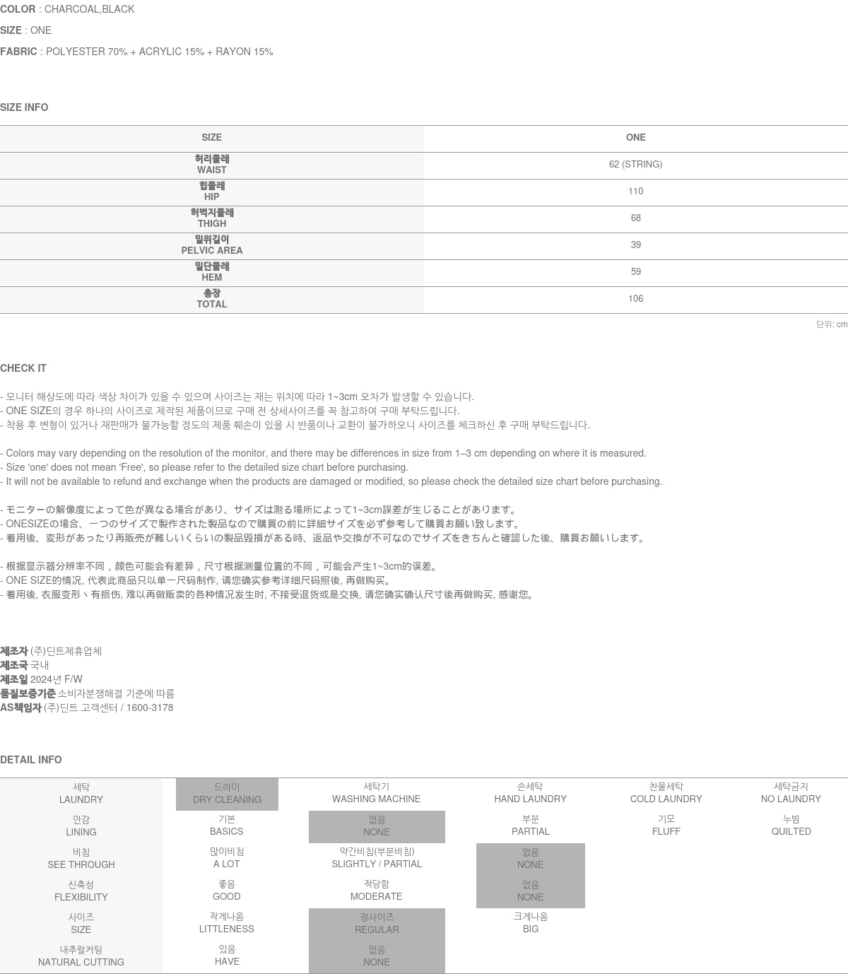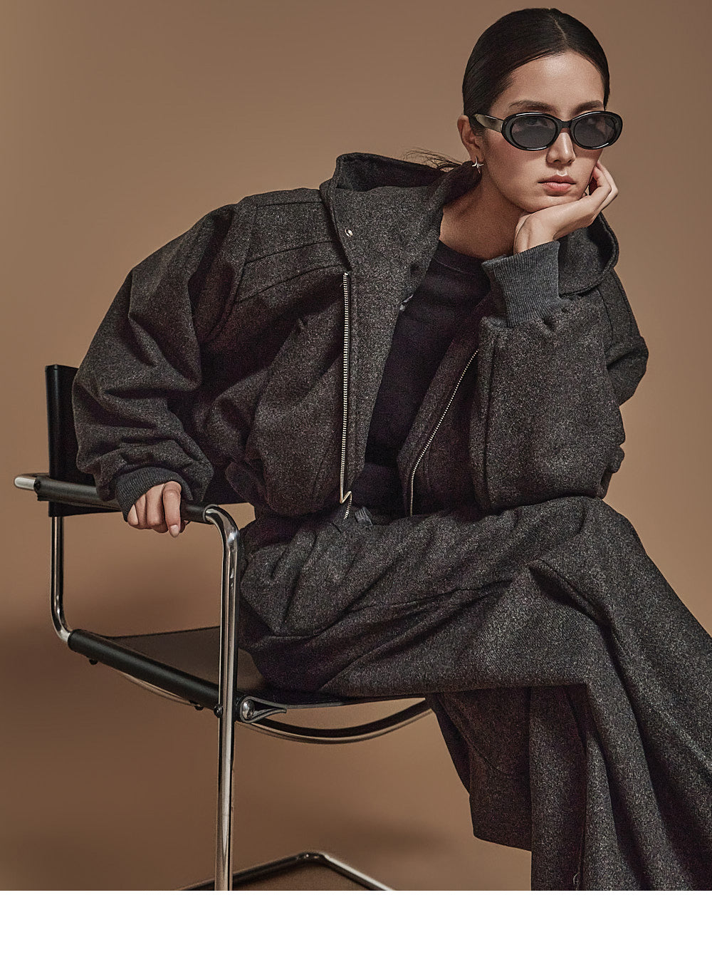 モデルの身長は173cmで、CHARCOALのONEサイズを着用しています。