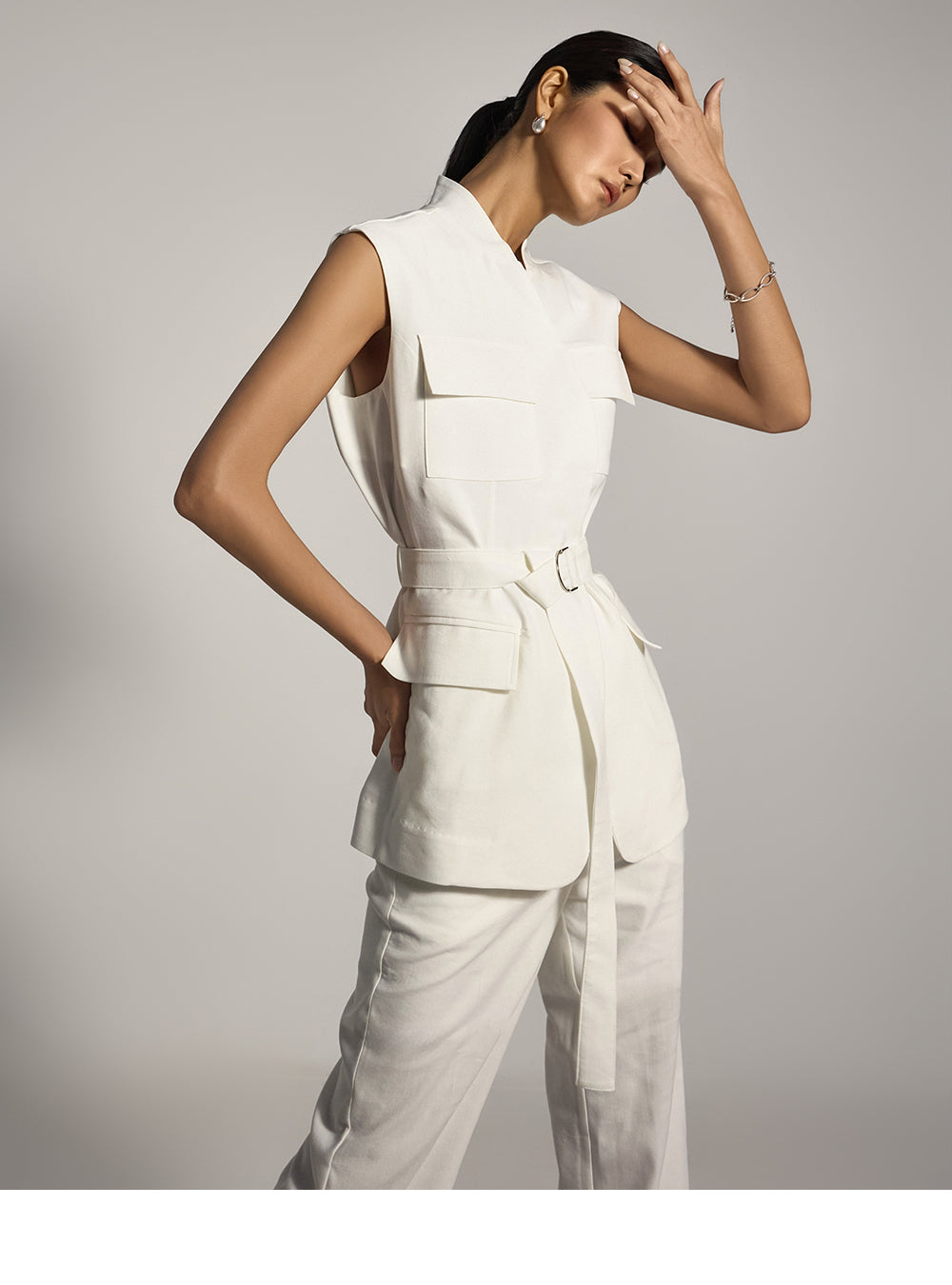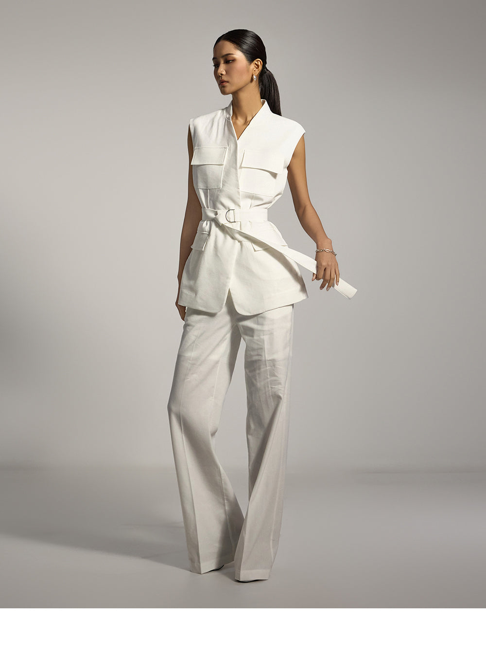 リネンの自然な風合いが夏でも涼しく着用できます。