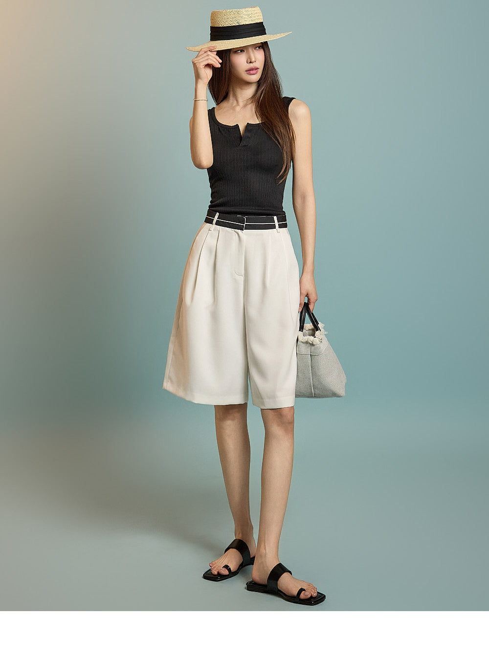カジュアルなムードのカラーブロックバミューダショーツです。