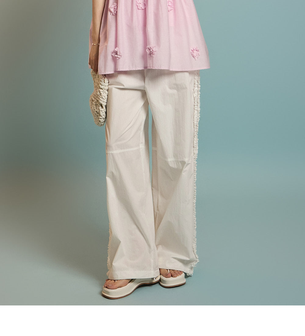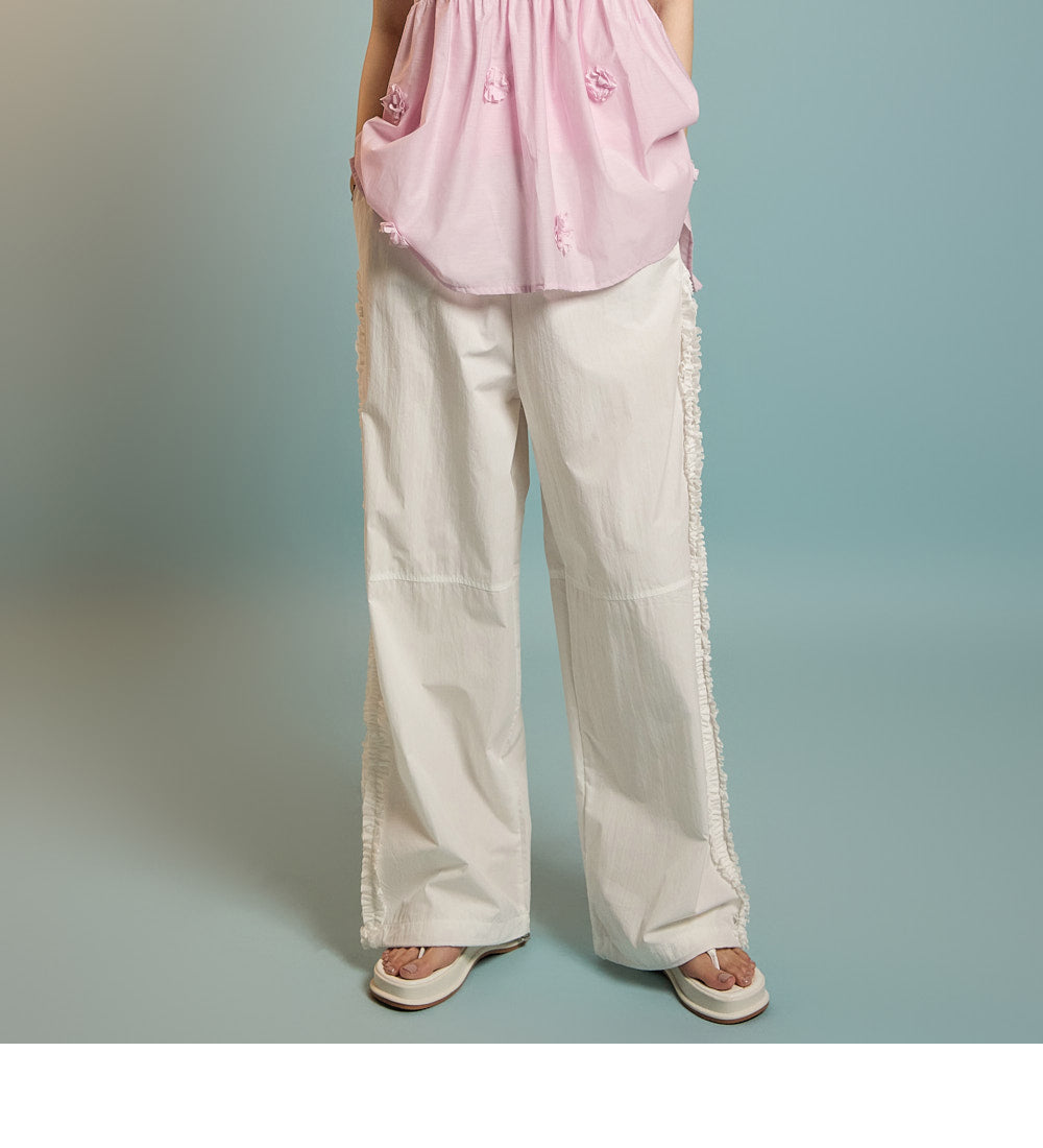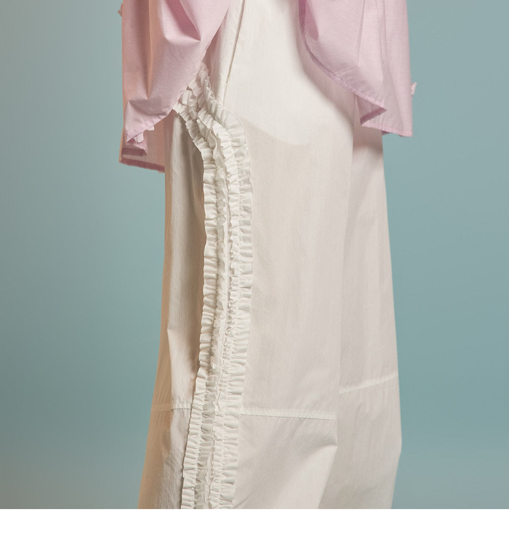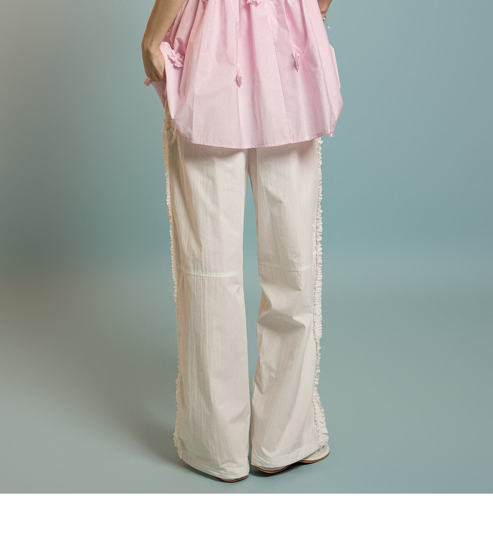 両サイドのフリルディテールがユニークなタッチを加えます。