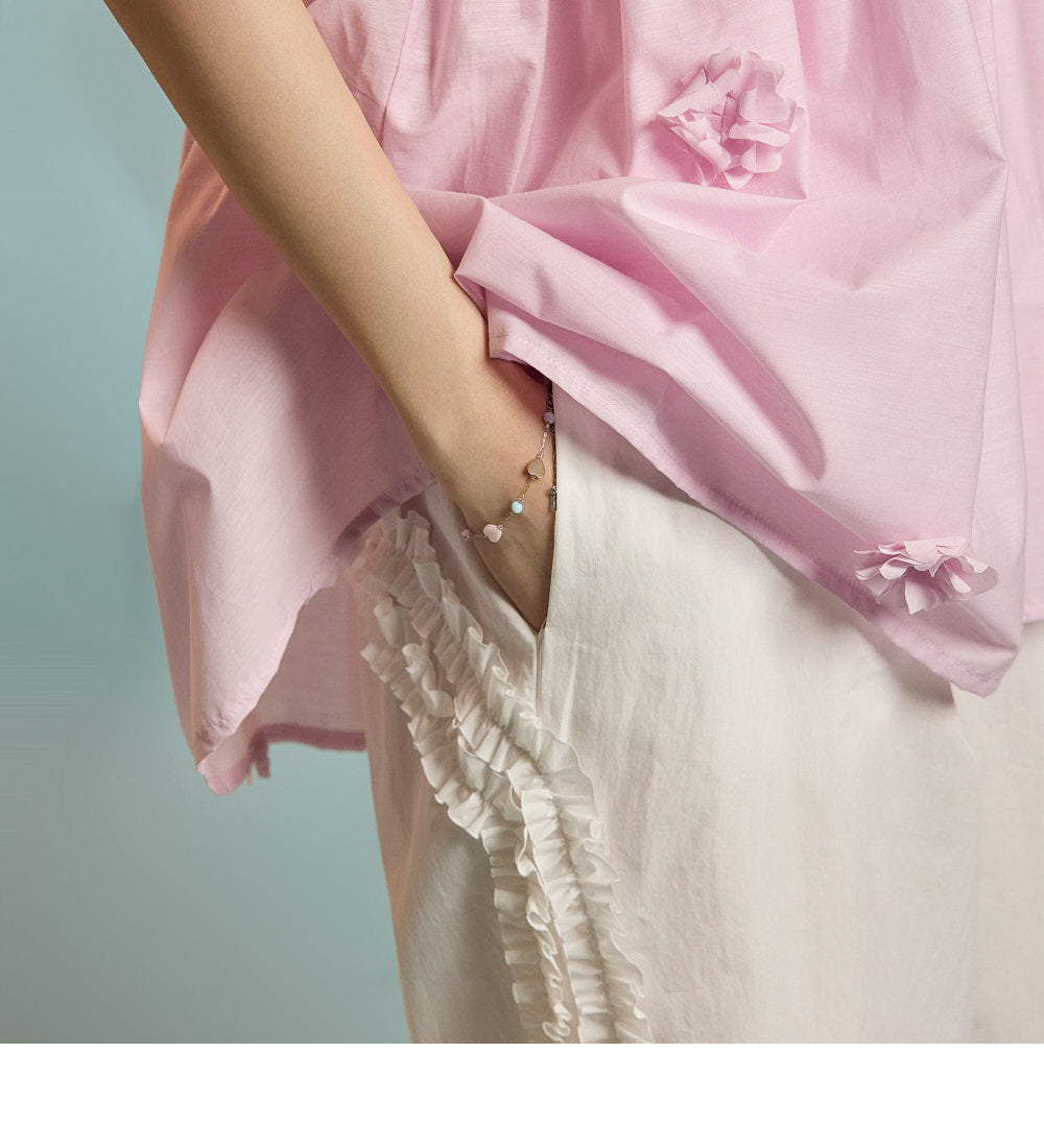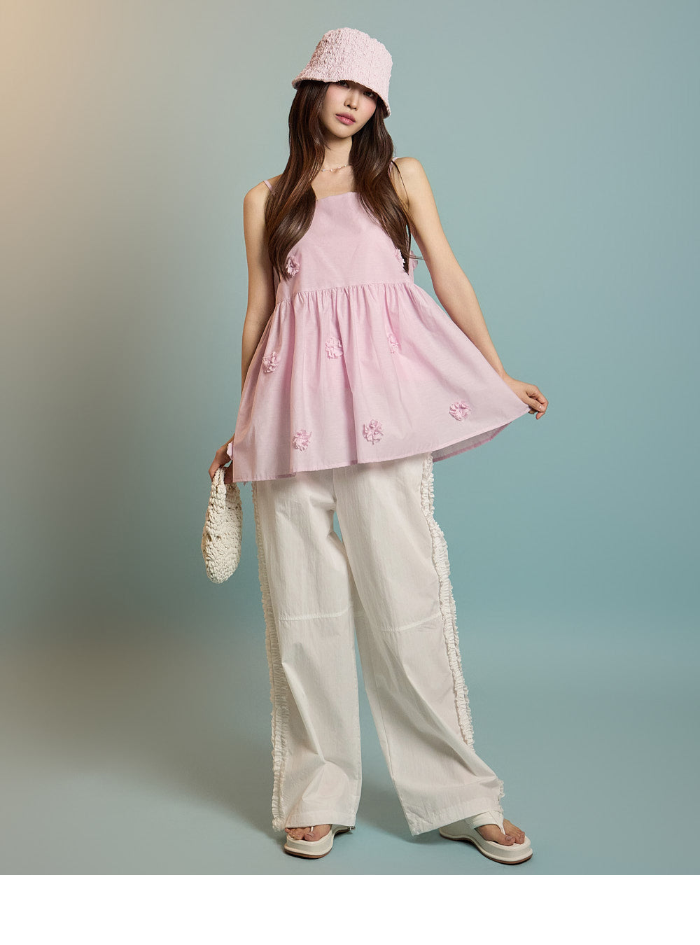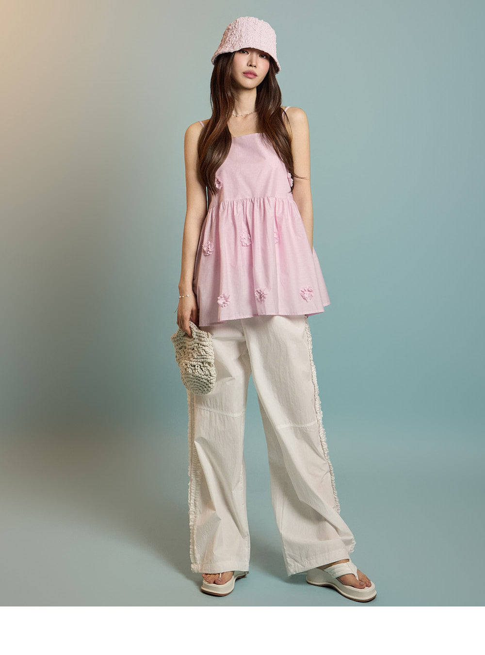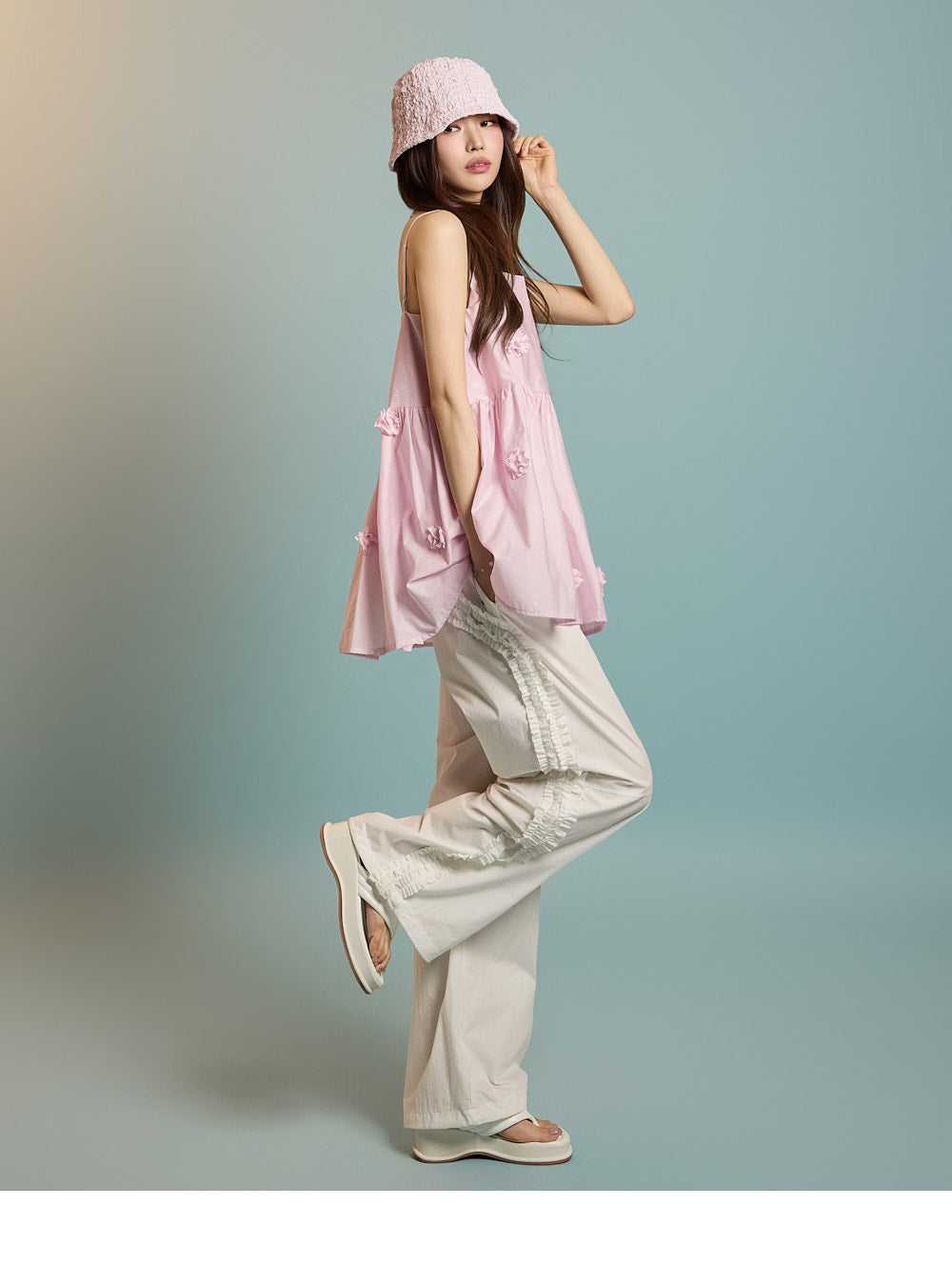 両サイドのフリルディテールがユニークなタッチを加えます。