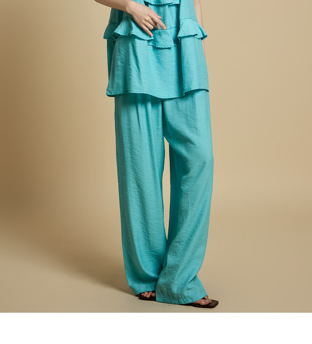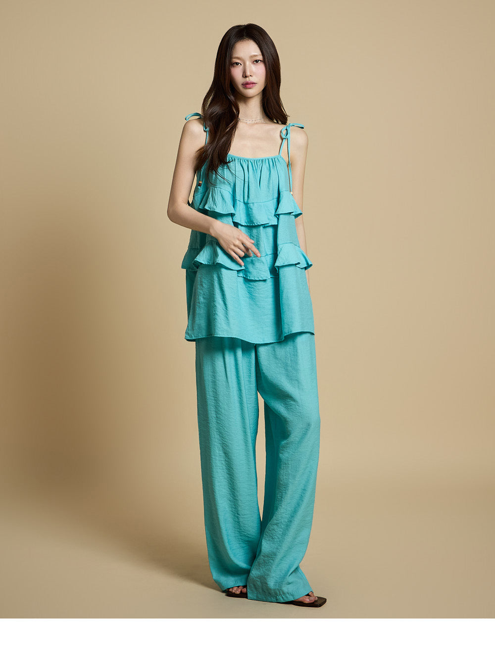 フリルノースリーブトップスと合わせてコーディネートすれば、夏らしいコーディネートが完成します。