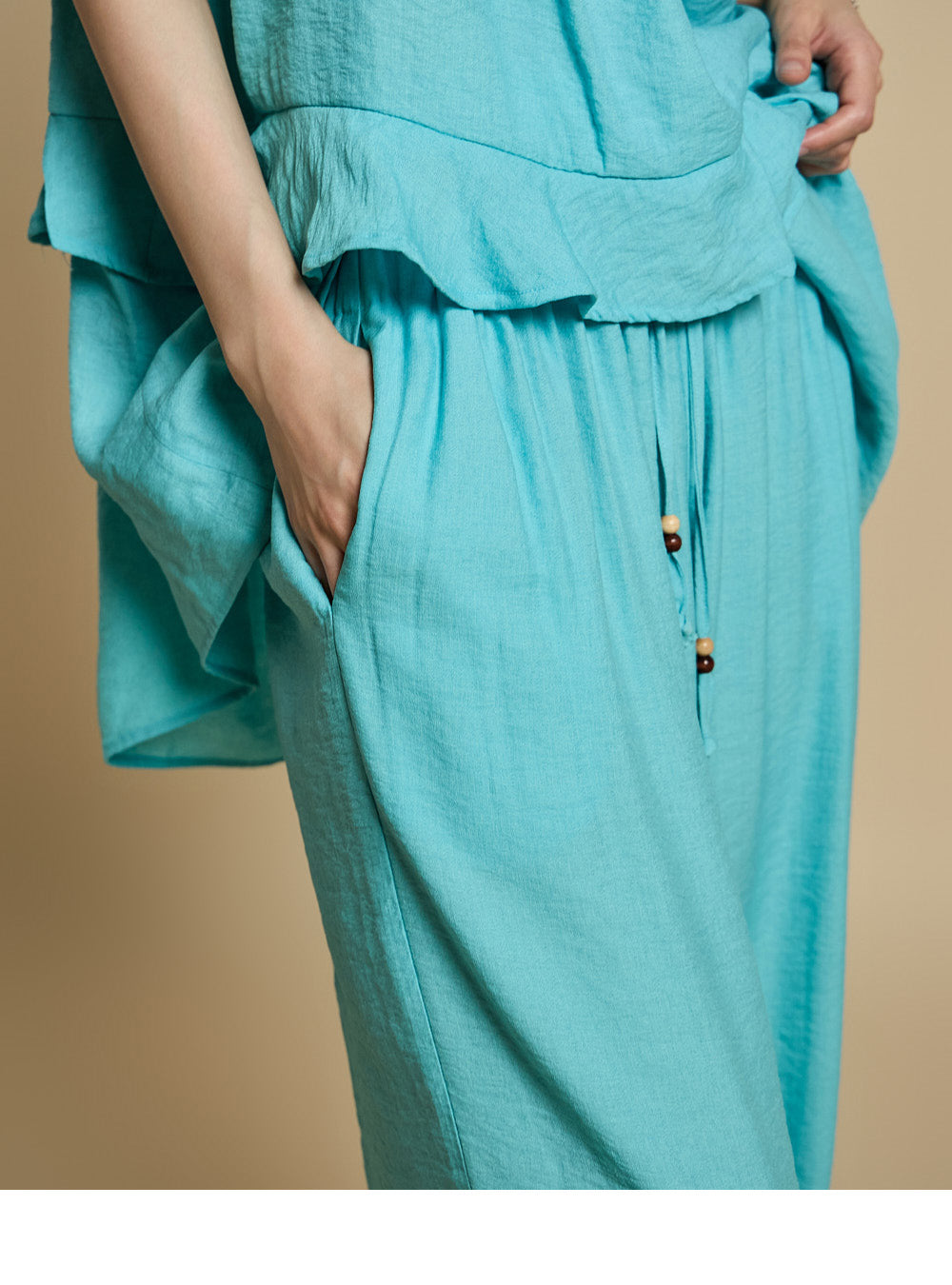 ドローストリングの端にビーズのディテールを施し、さりげないアクセントを加えています。