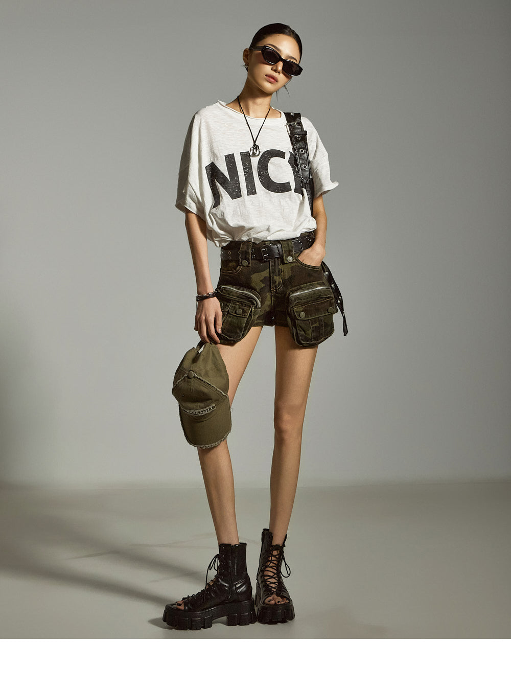 大胆な迷彩柄がスタイリッシュな印象をプラスします。