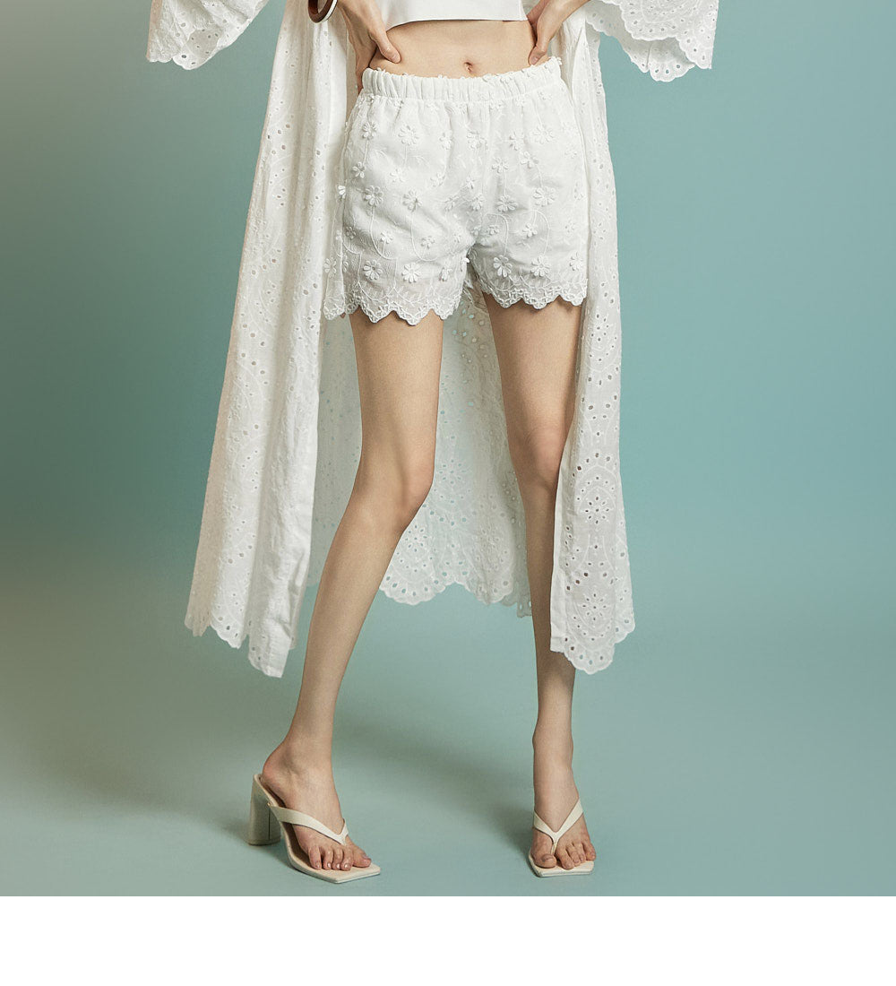 ショート丈と全体に施されたアイレットのディテールが、風通しの良い