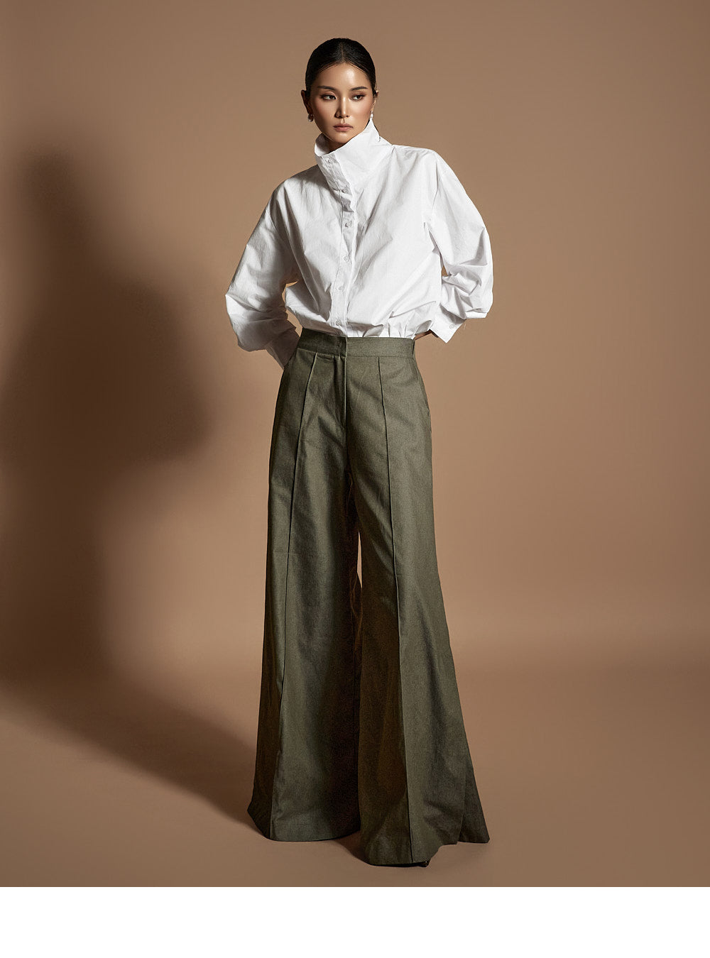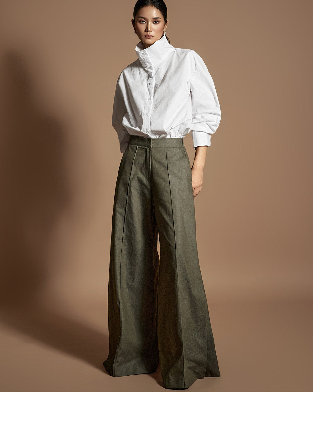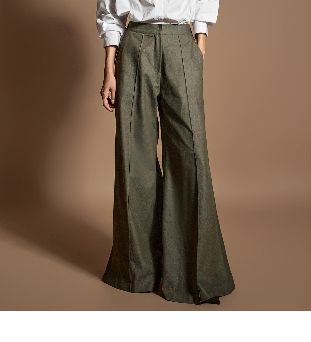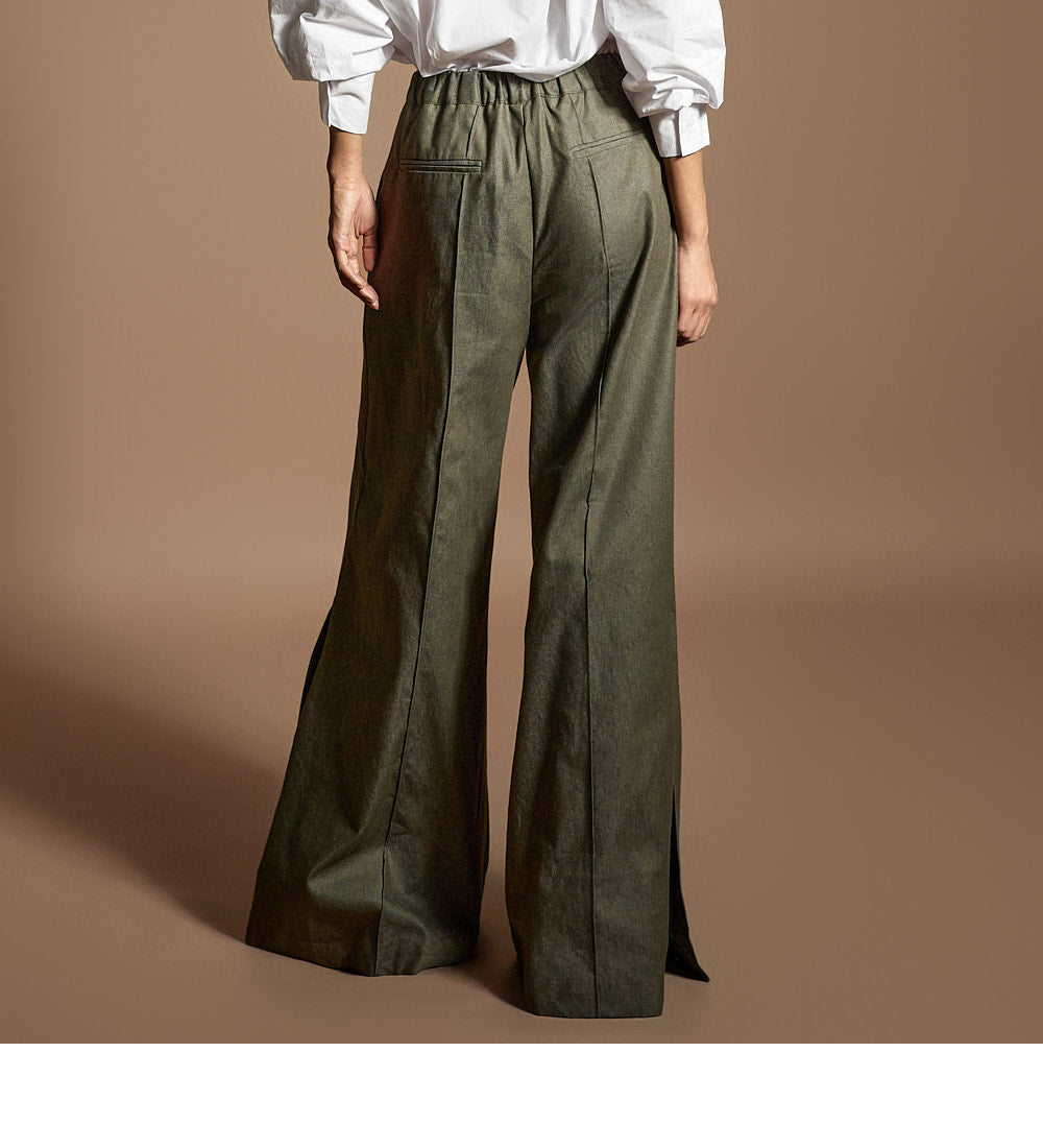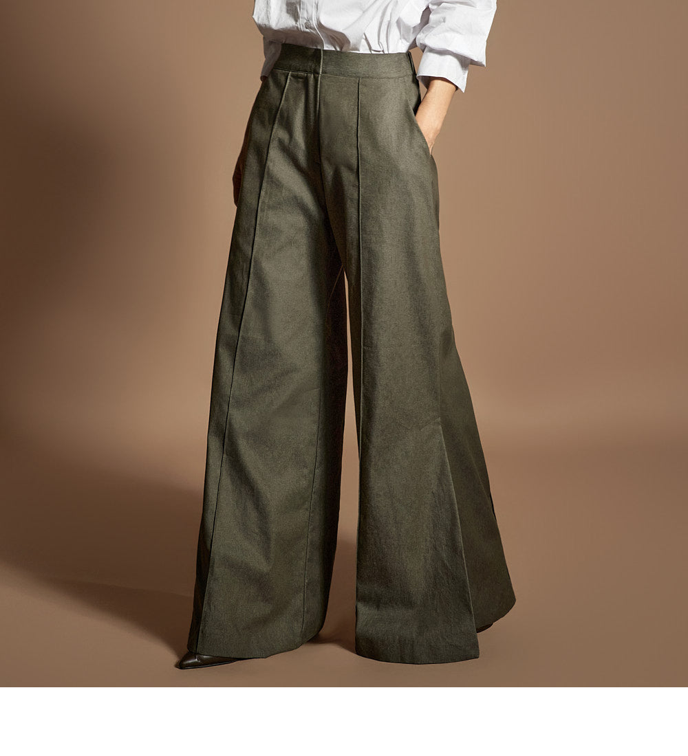 while the wide-leg, slightly flared design naturally flatters the legs.