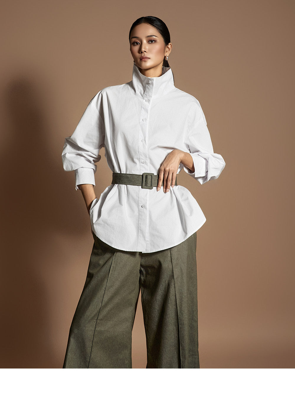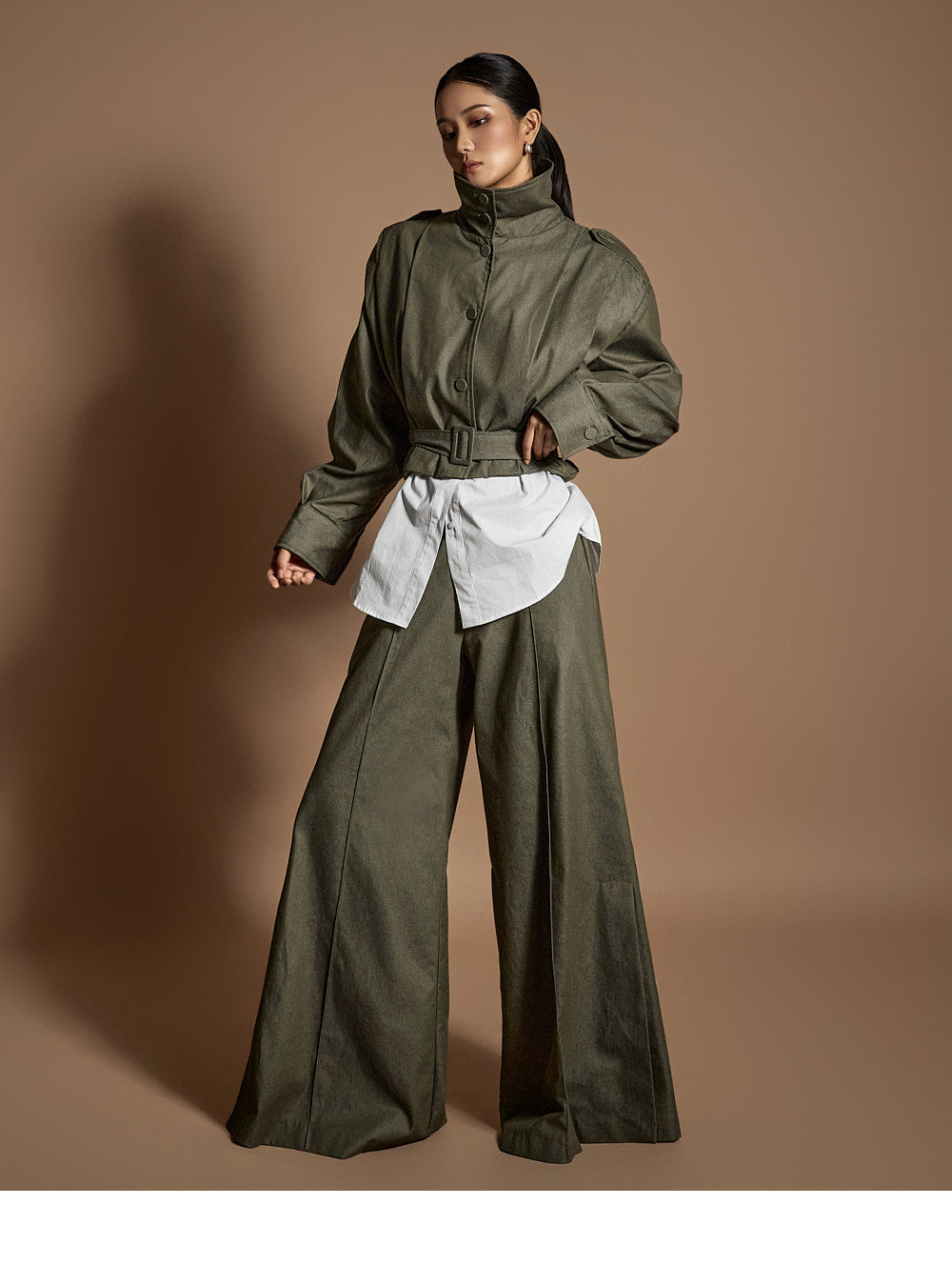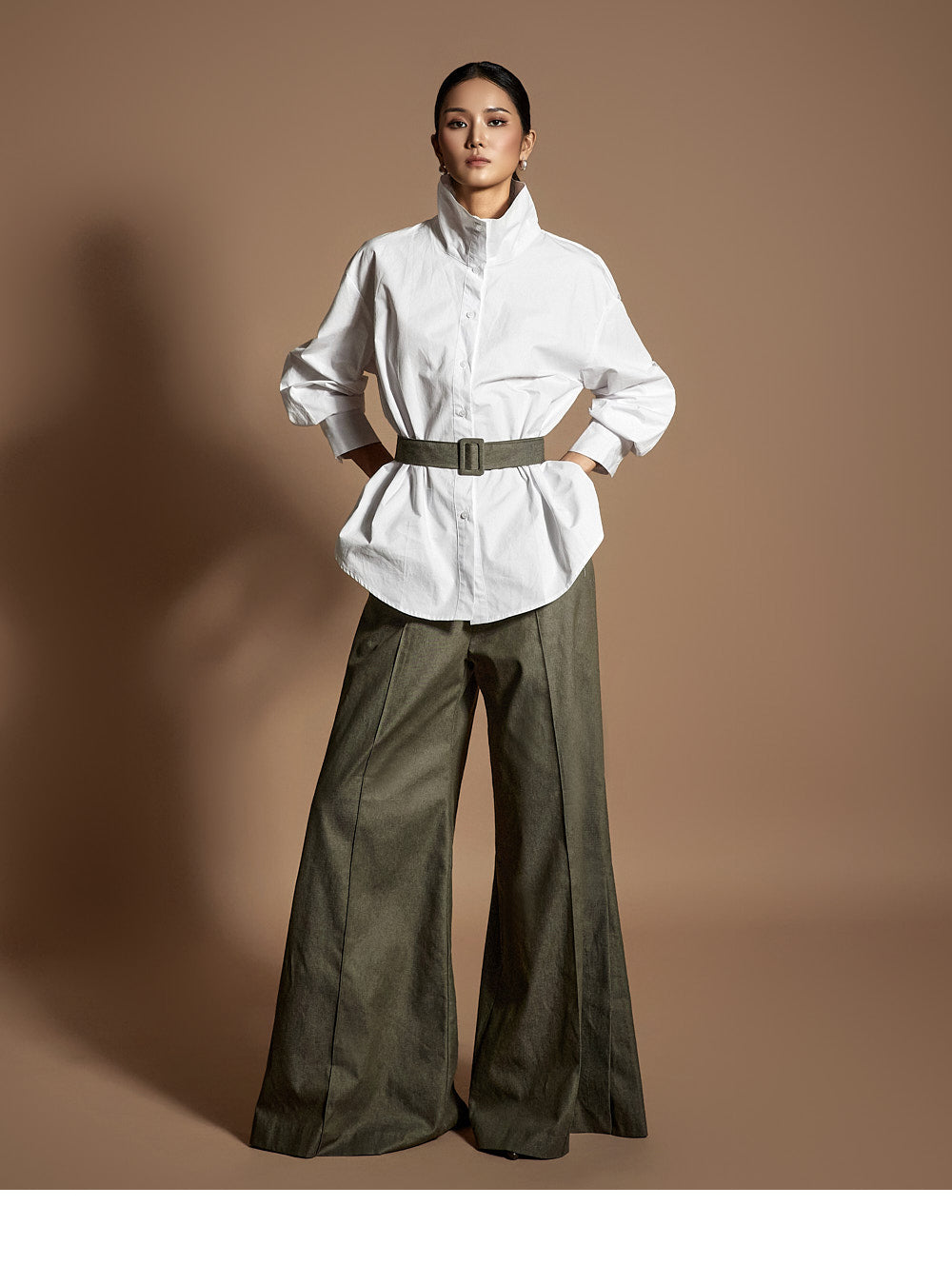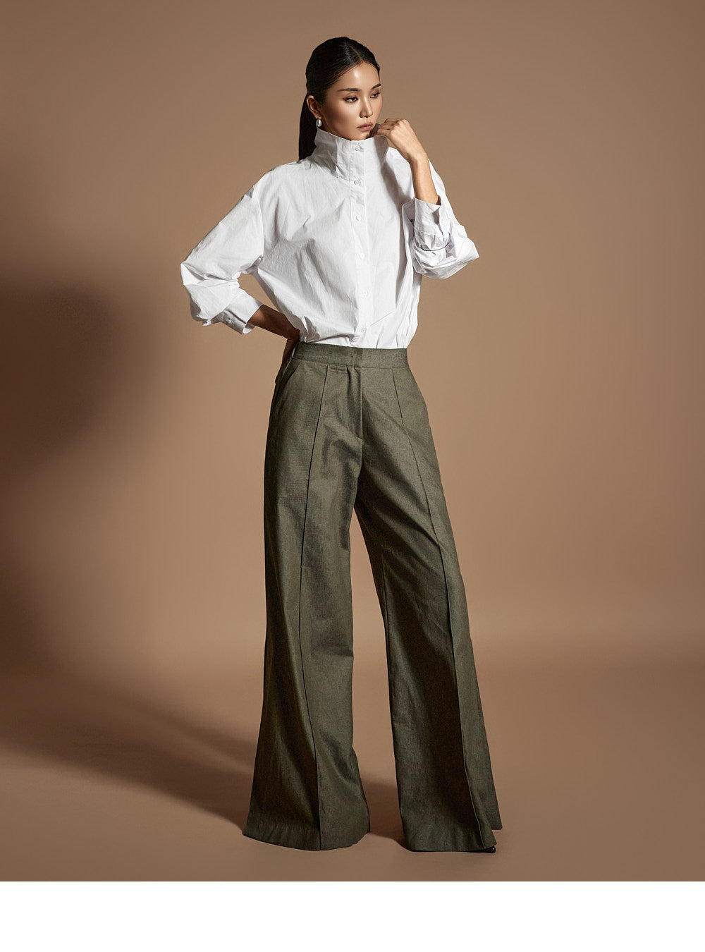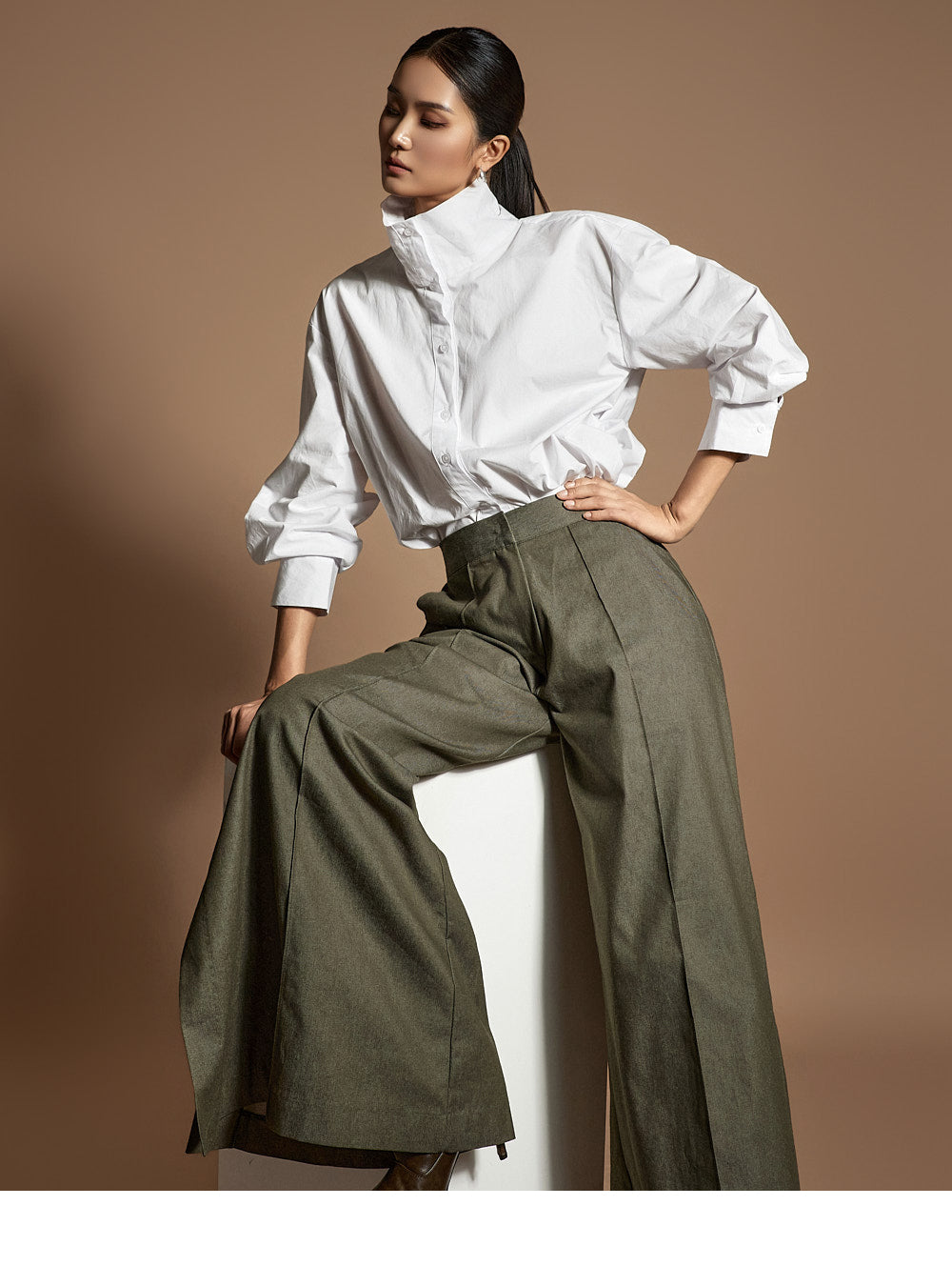 while the wide-leg, slightly flared design naturally flatters the legs.